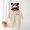 Khaki-A-3【Cute Bear Patchwork with Lining Romper】