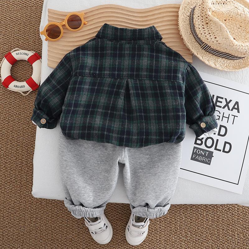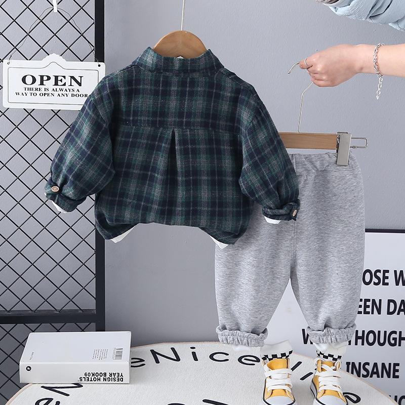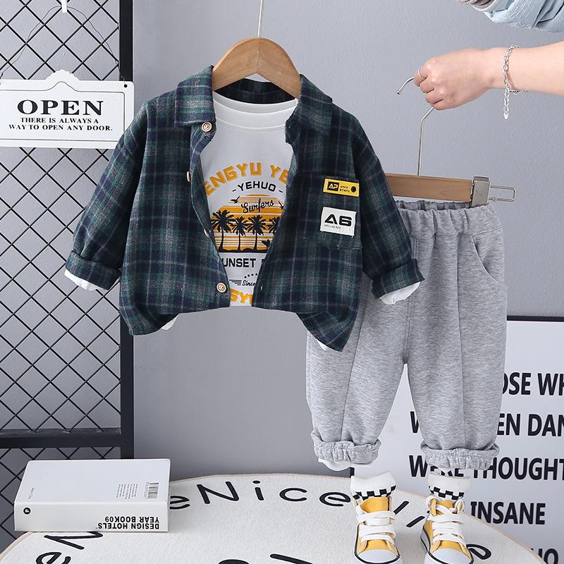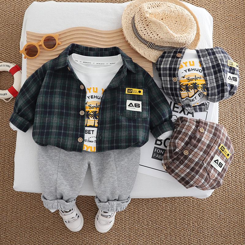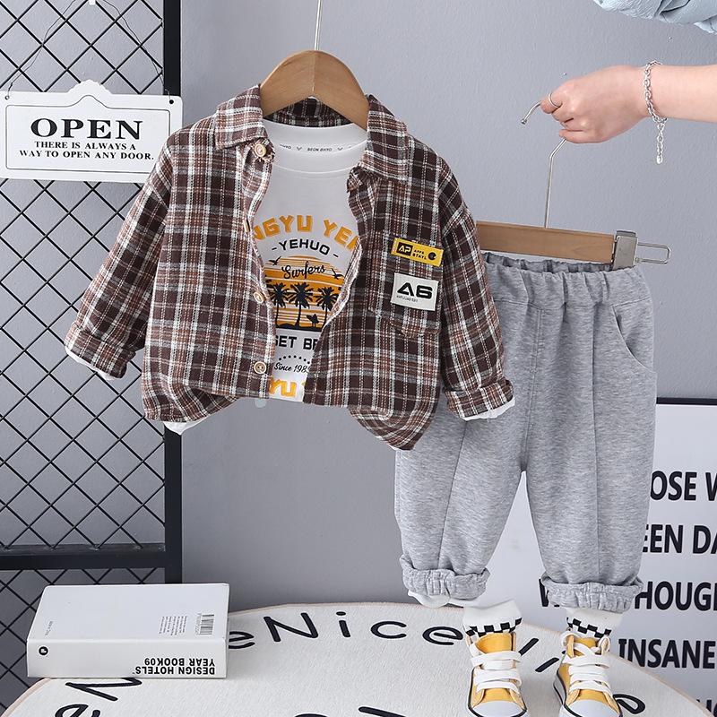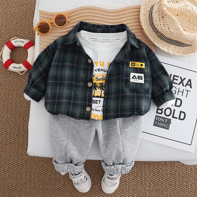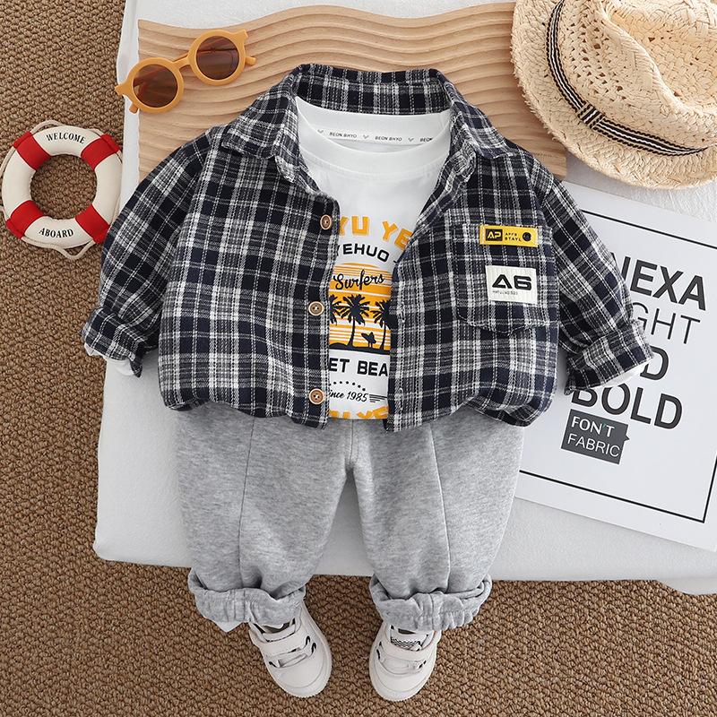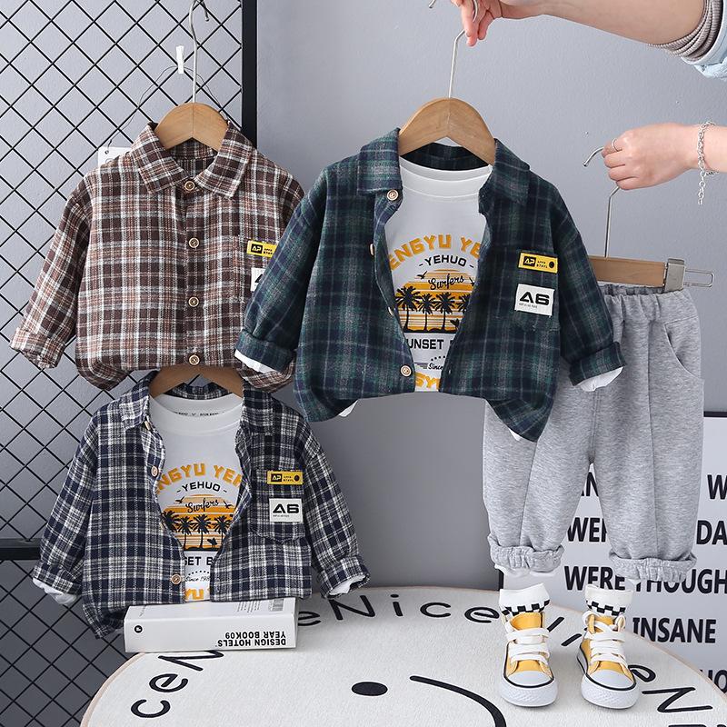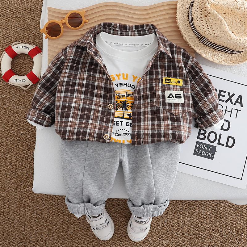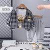 2025 Primavera y Otoño Nuevo Estilo Ropa de Otoño para Niño Ropa de Bebé a la Moda Camisa a Cuadros para Niños Guapos Conjunto de Tres Piezas Ropa para Niño Pequeño
