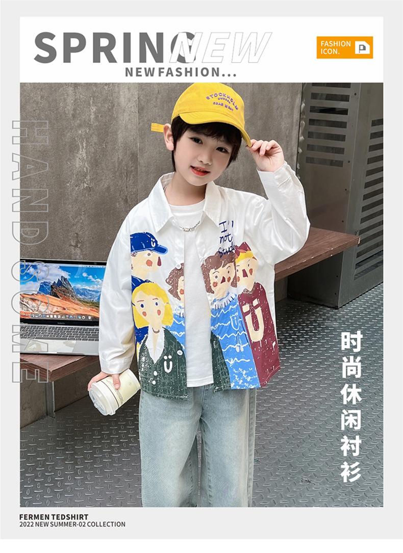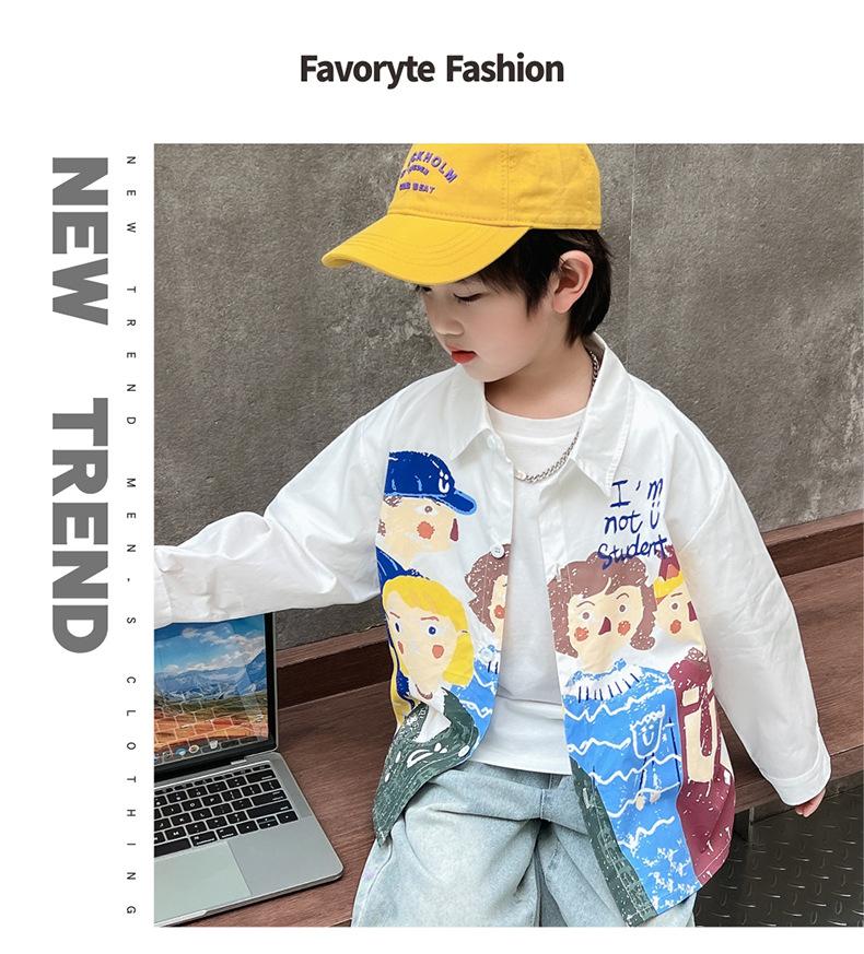 Chaqueta camisa para niño 2025 nuevo estilo estilo primavera y otoño ropa para niños camisa de dibujos animados top estilo primavera delgado para bebé