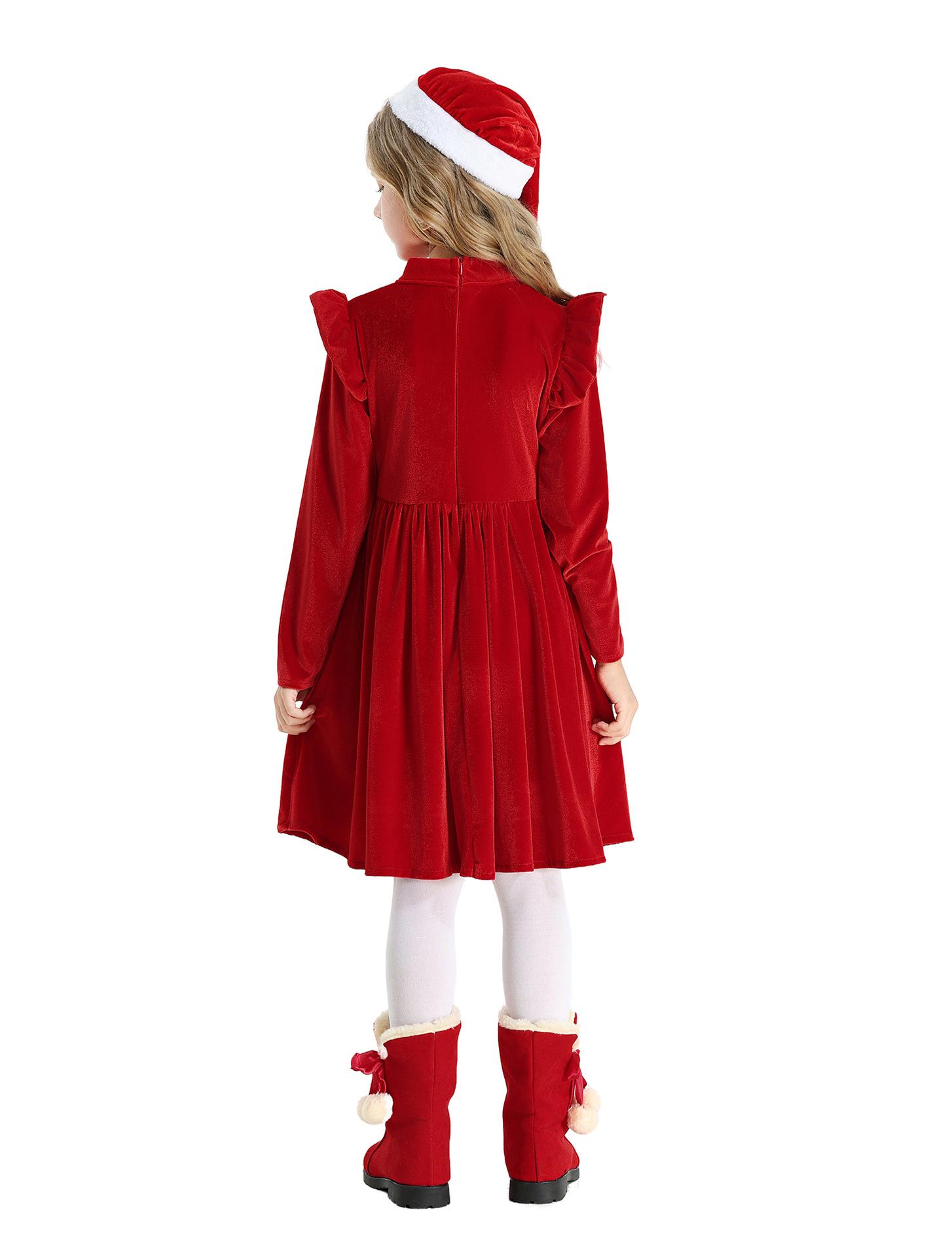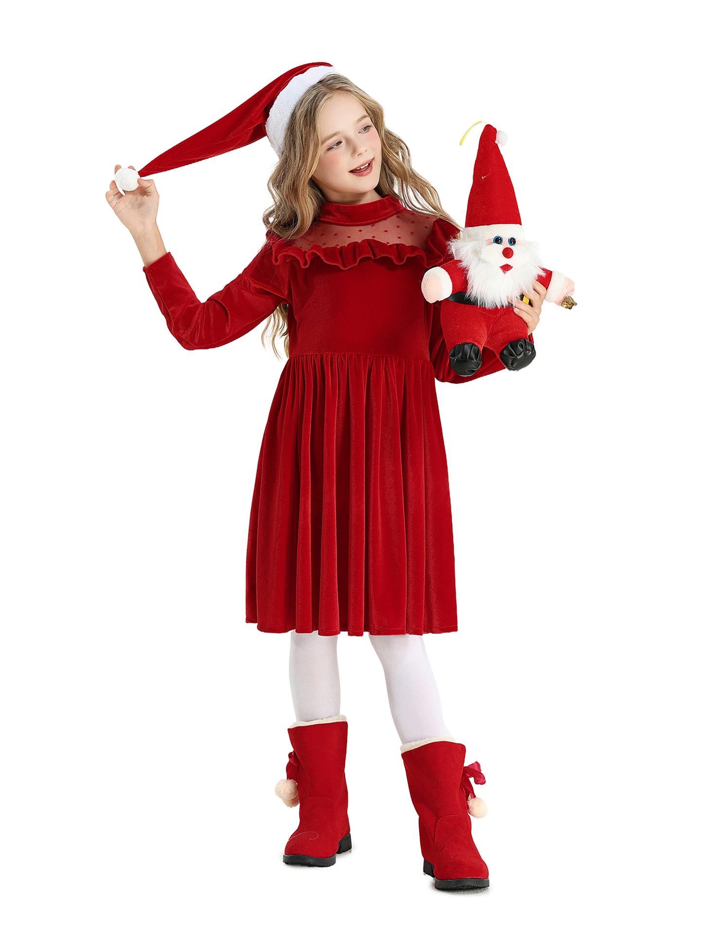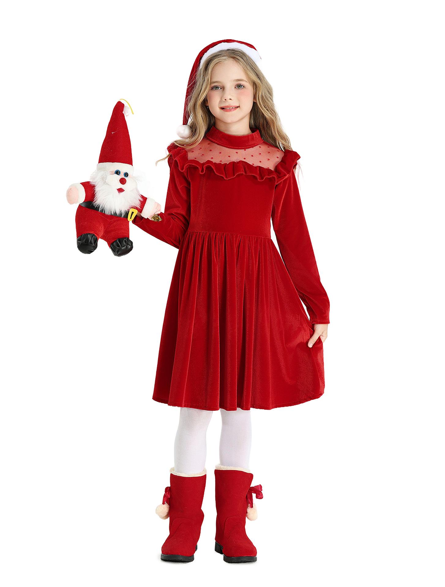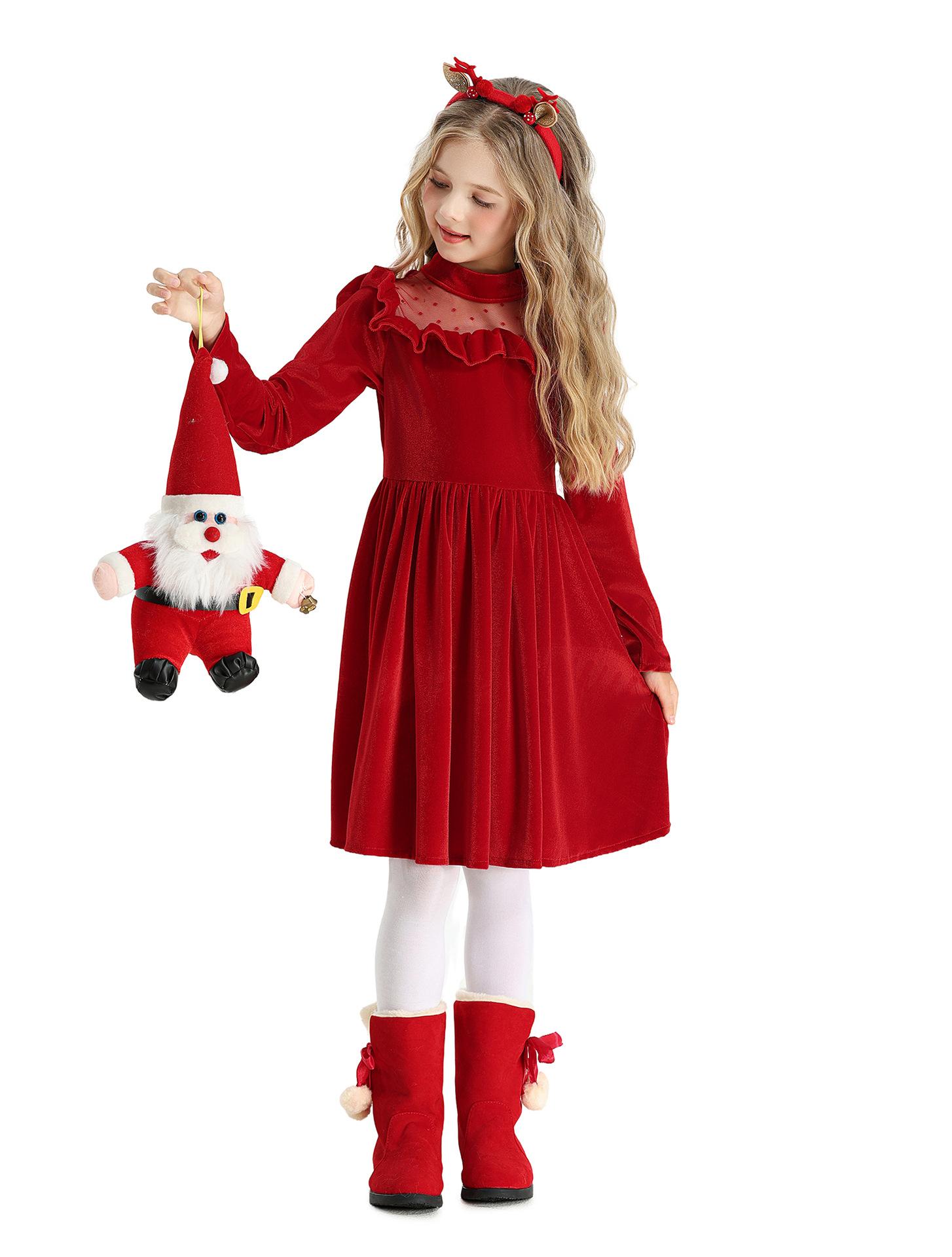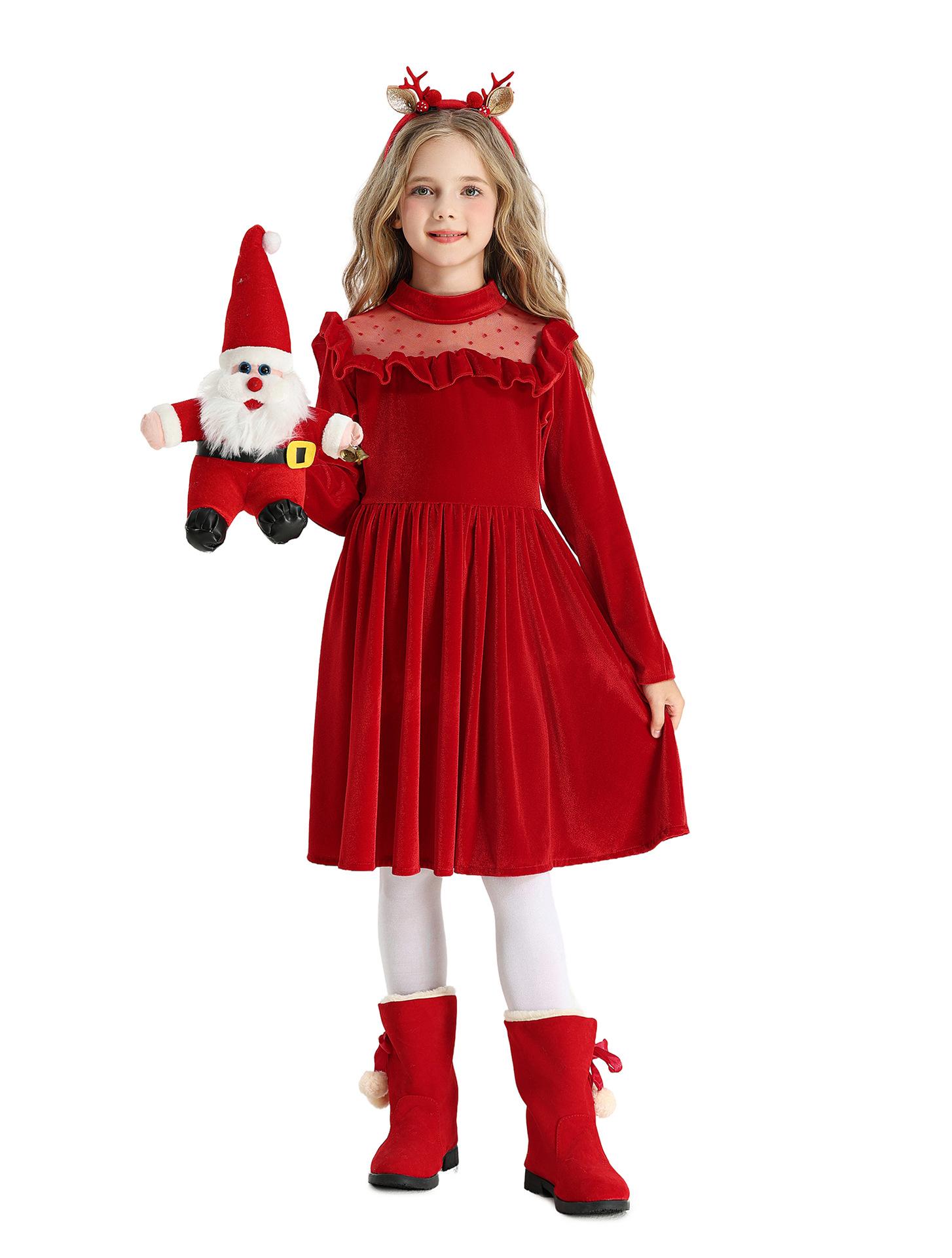 Volante Manga Larga Princesa Navidad Disfraz Infantil Vestido de Gala Vestido de Rendimiento para Fiesta de Navidad Niñas Malla