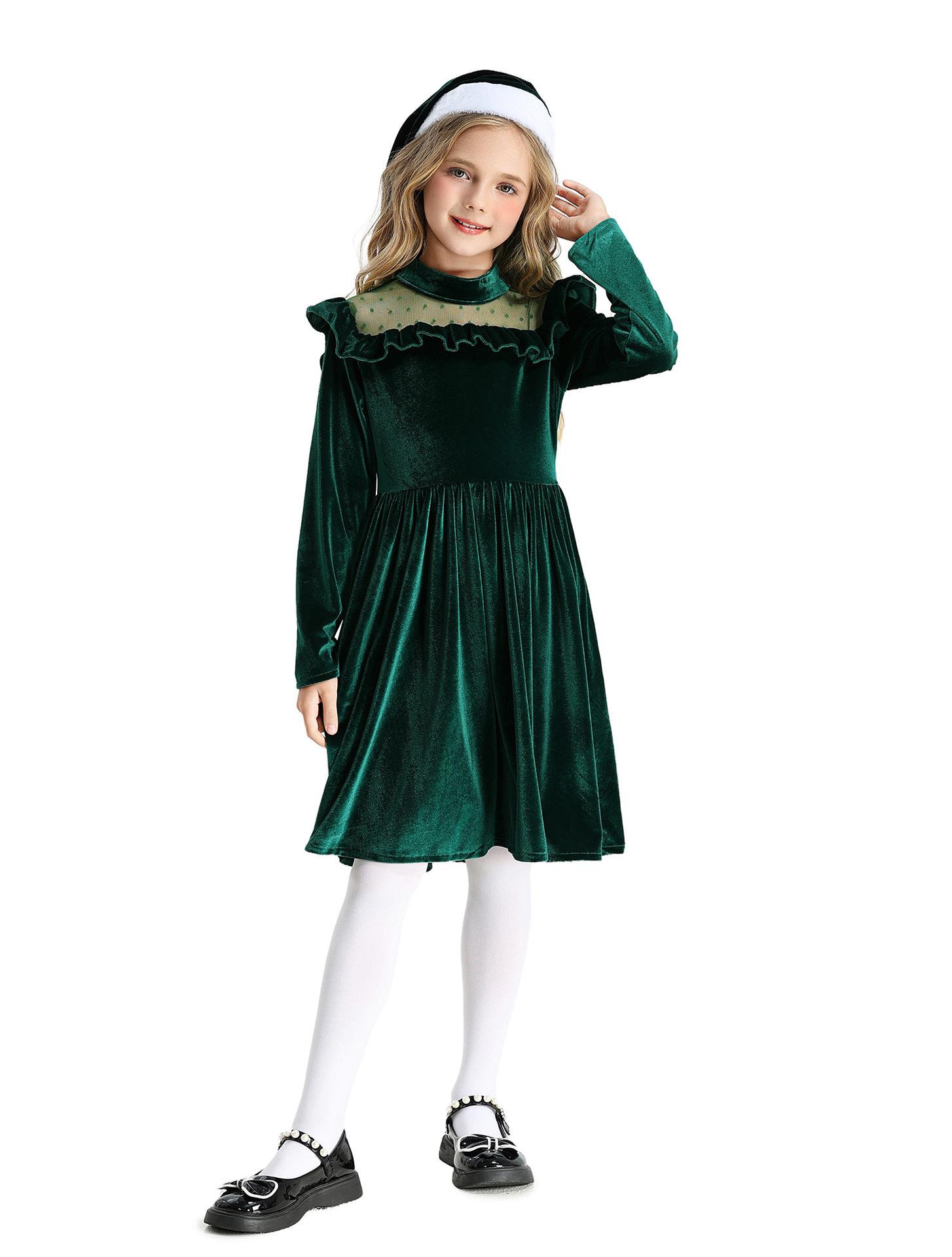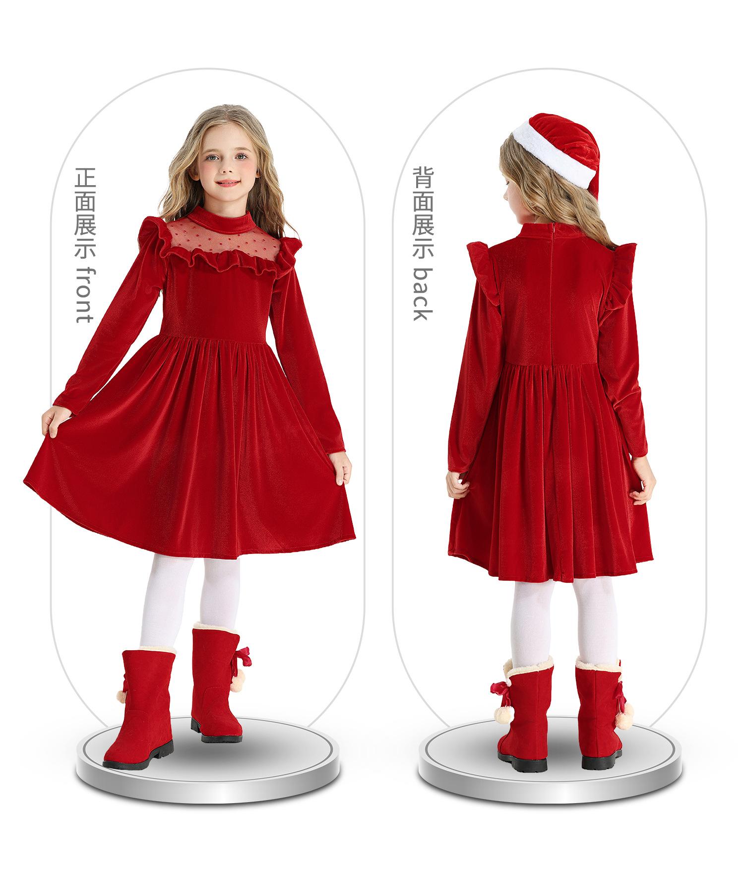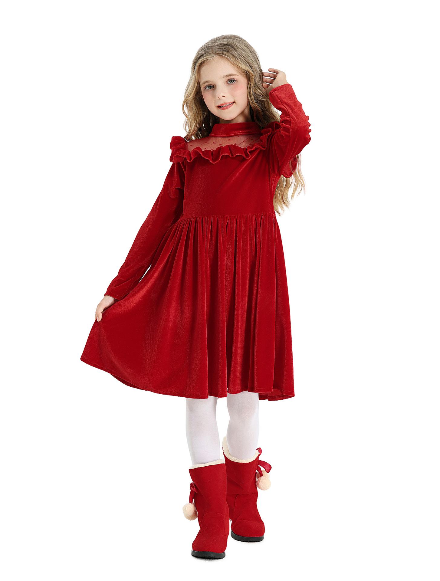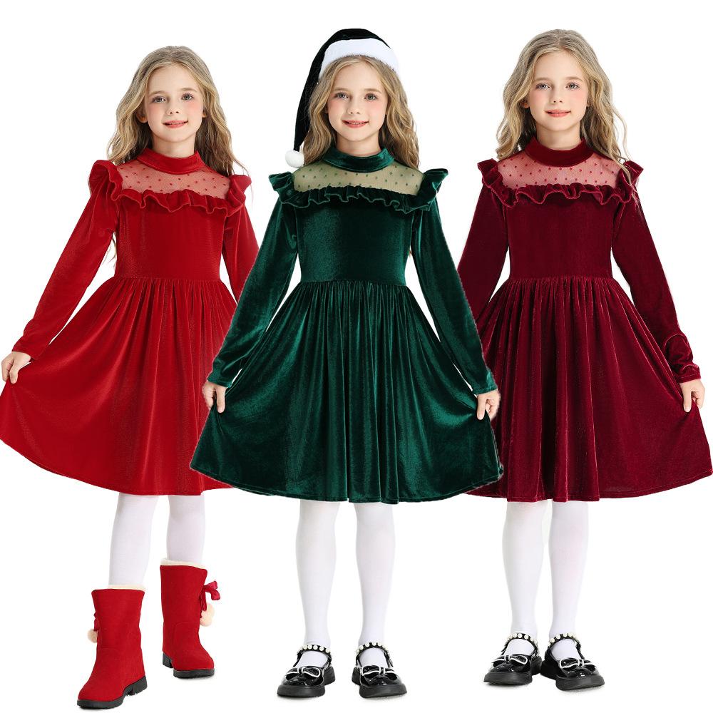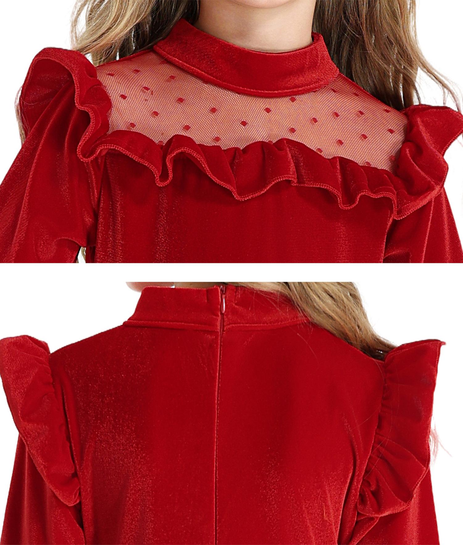 Volante Manga Larga Princesa Navidad Disfraz Infantil Vestido de Gala Vestido de Rendimiento para Fiesta de Navidad Niñas Malla