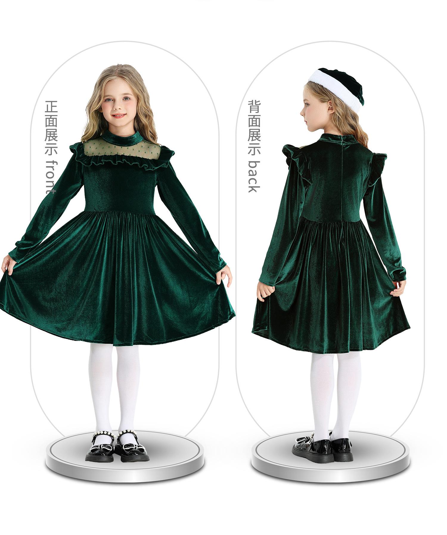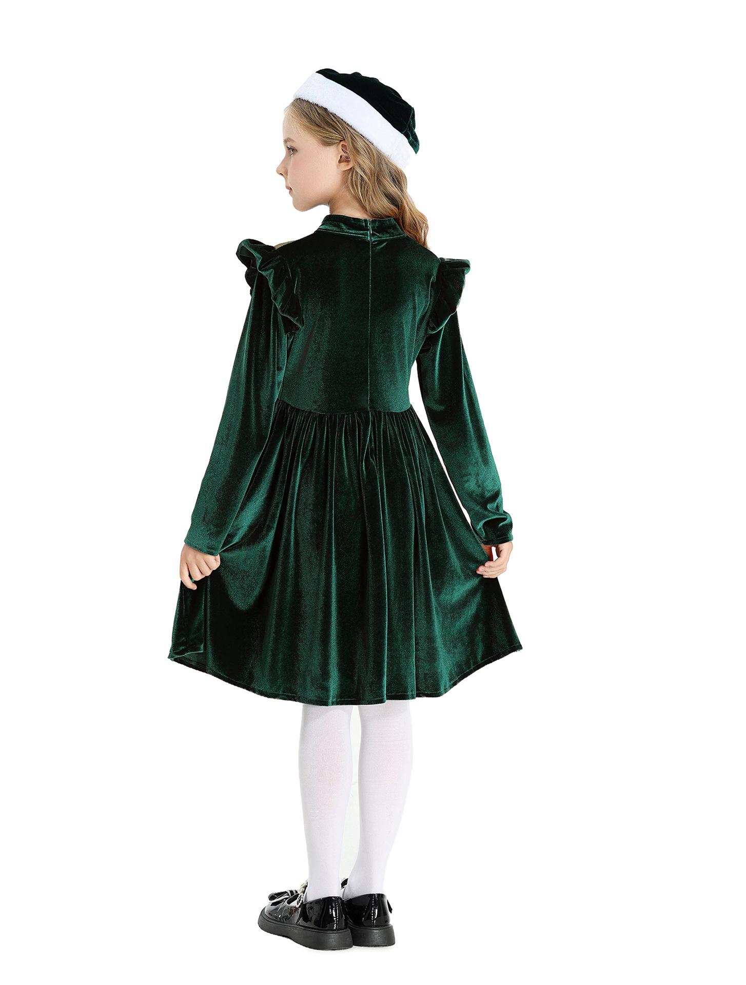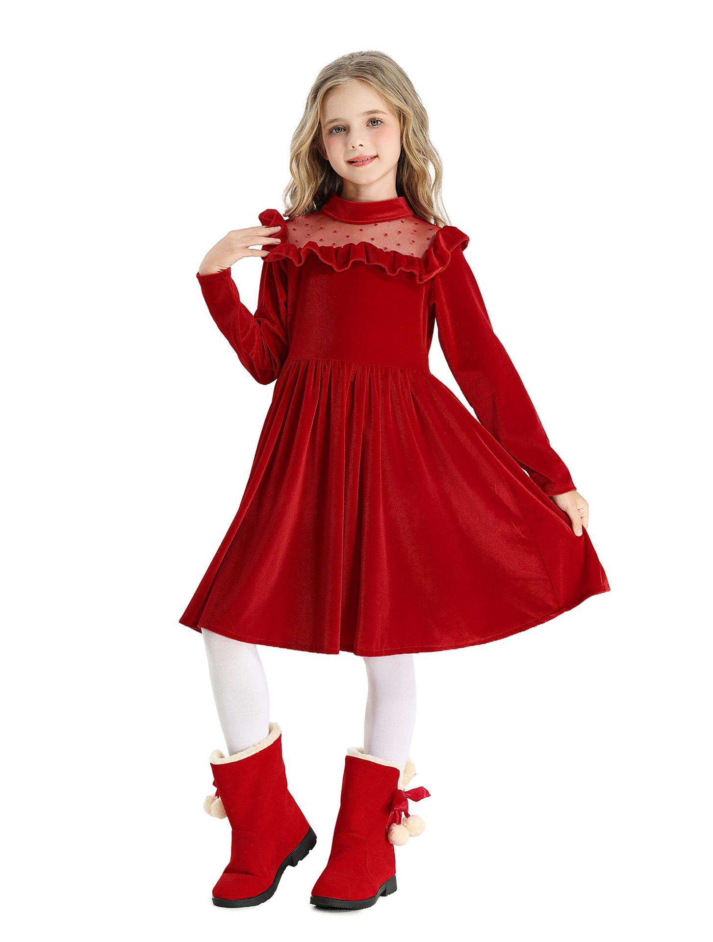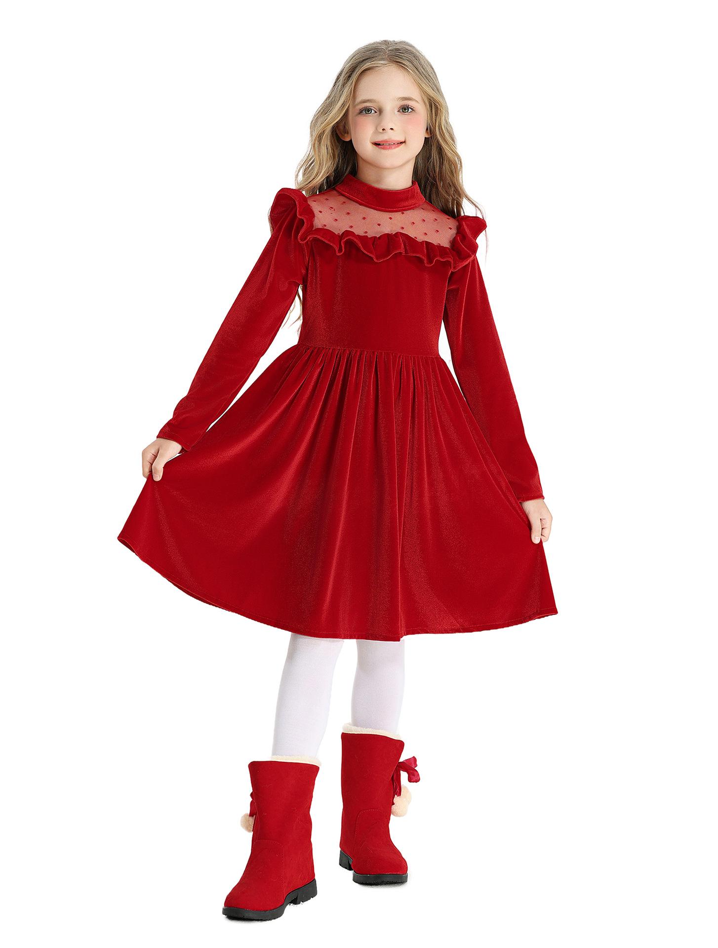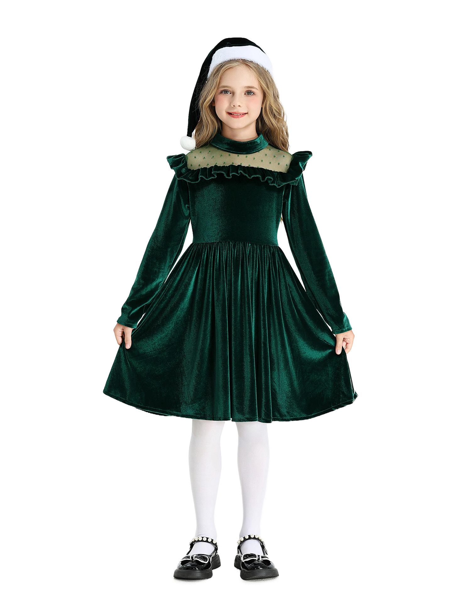 Volante Manga Larga Princesa Navidad Disfraz Infantil Vestido de Gala Vestido de Rendimiento para Fiesta de Navidad Niñas Malla
