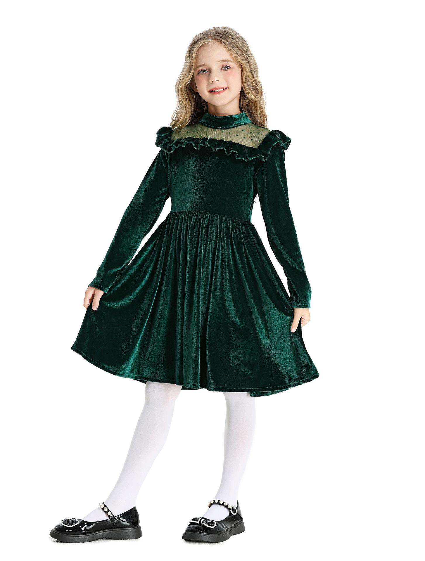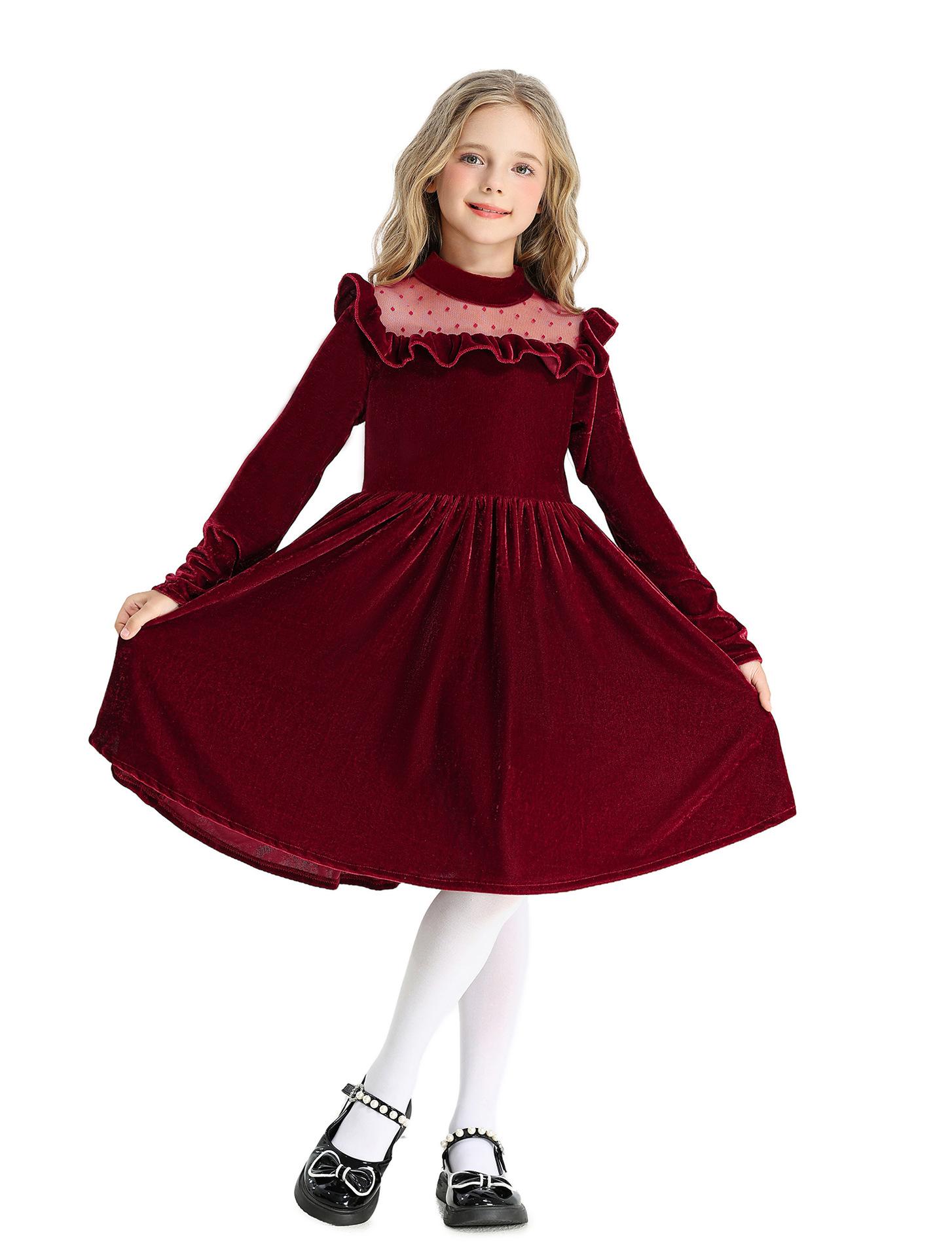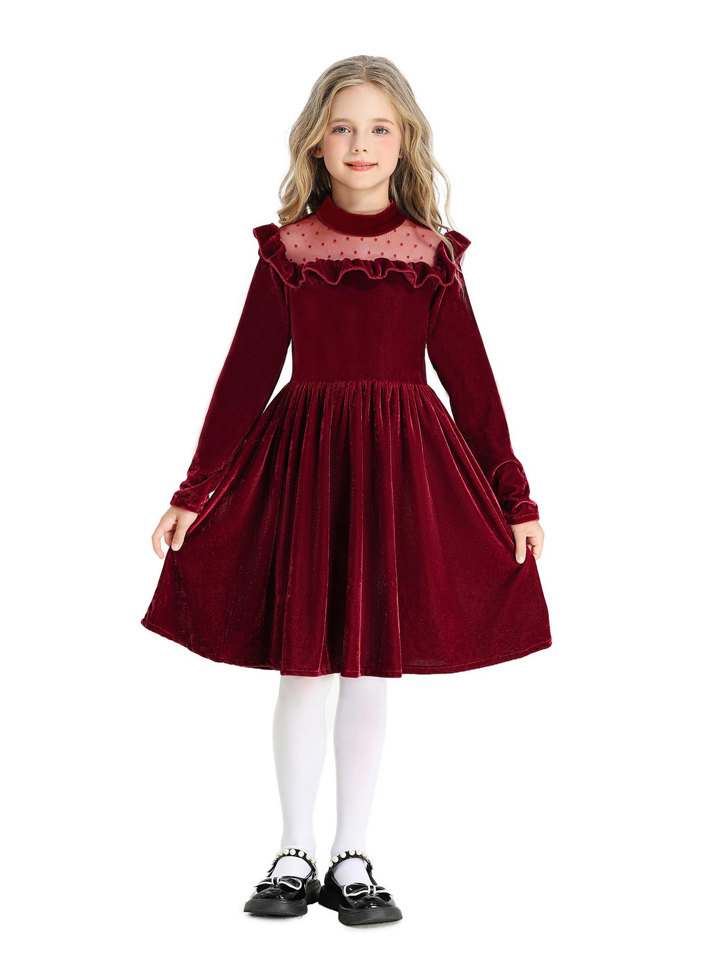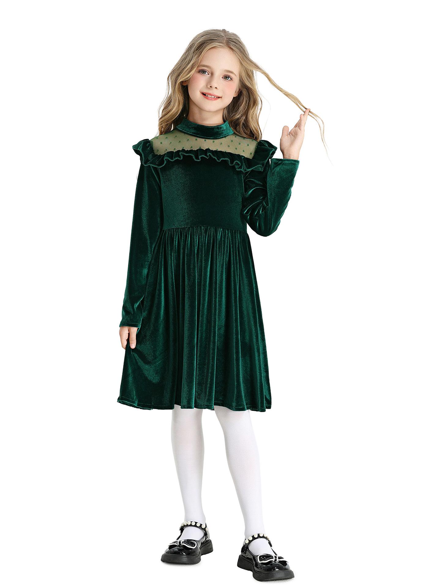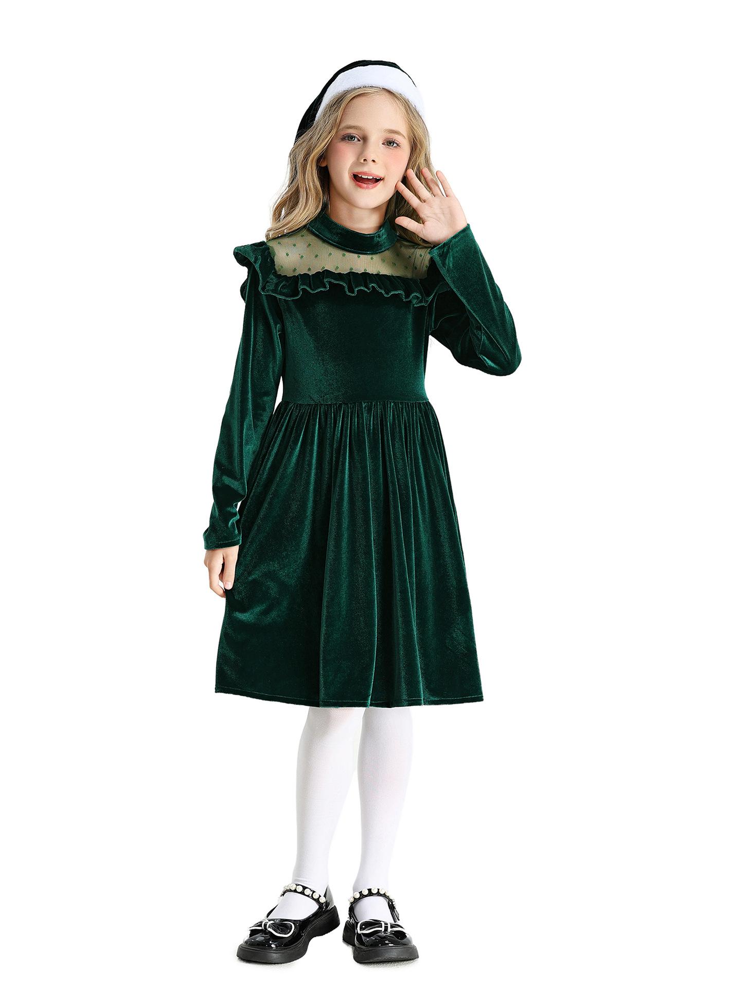 Volante Manga Larga Princesa Navidad Disfraz Infantil Vestido de Gala Vestido de Rendimiento para Fiesta de Navidad Niñas Malla