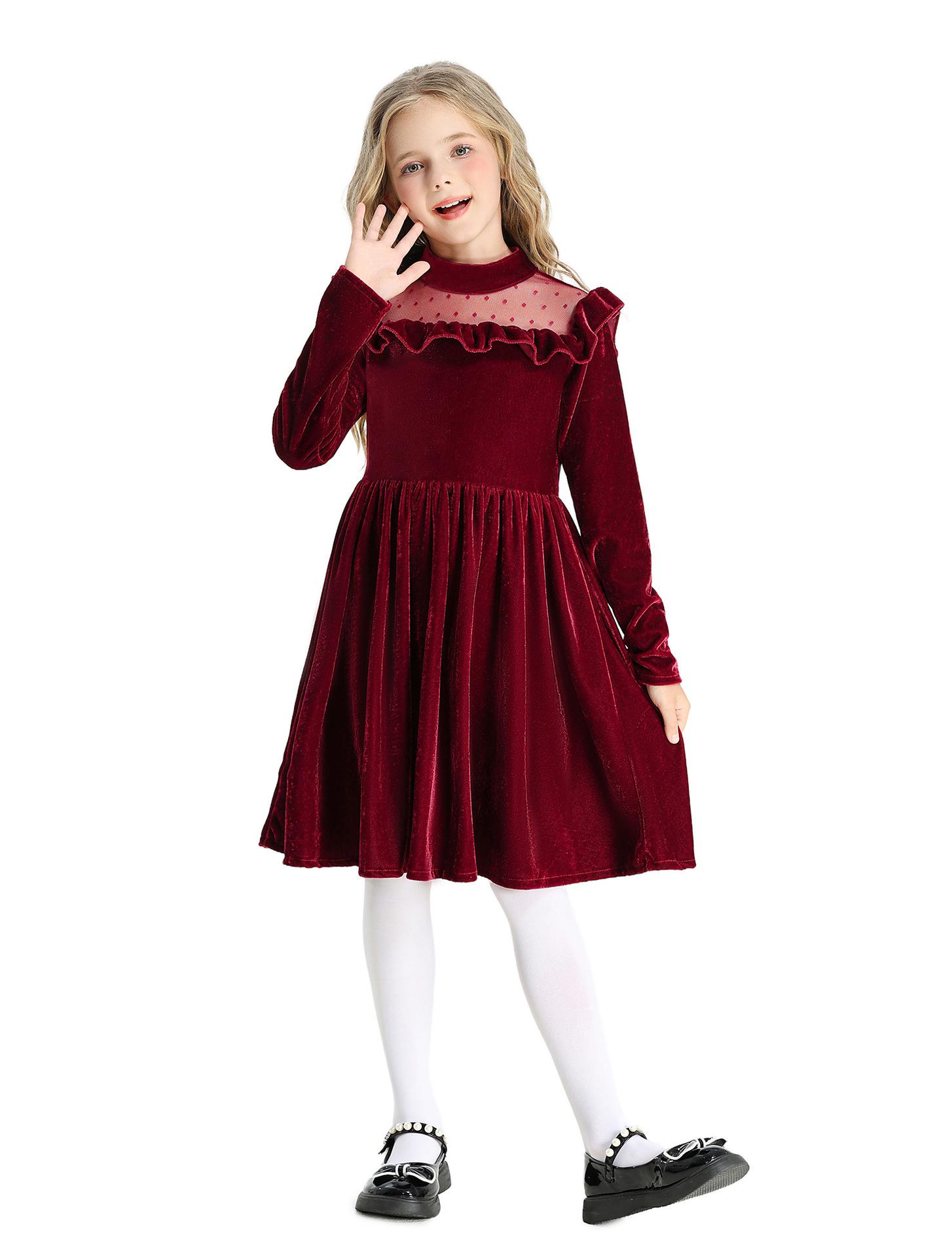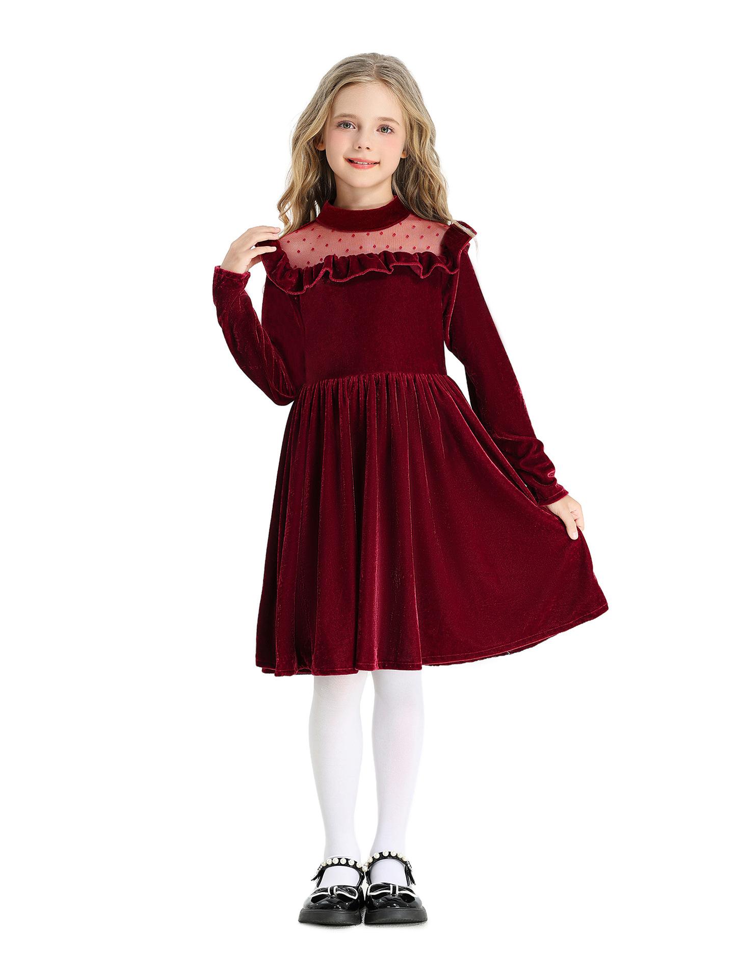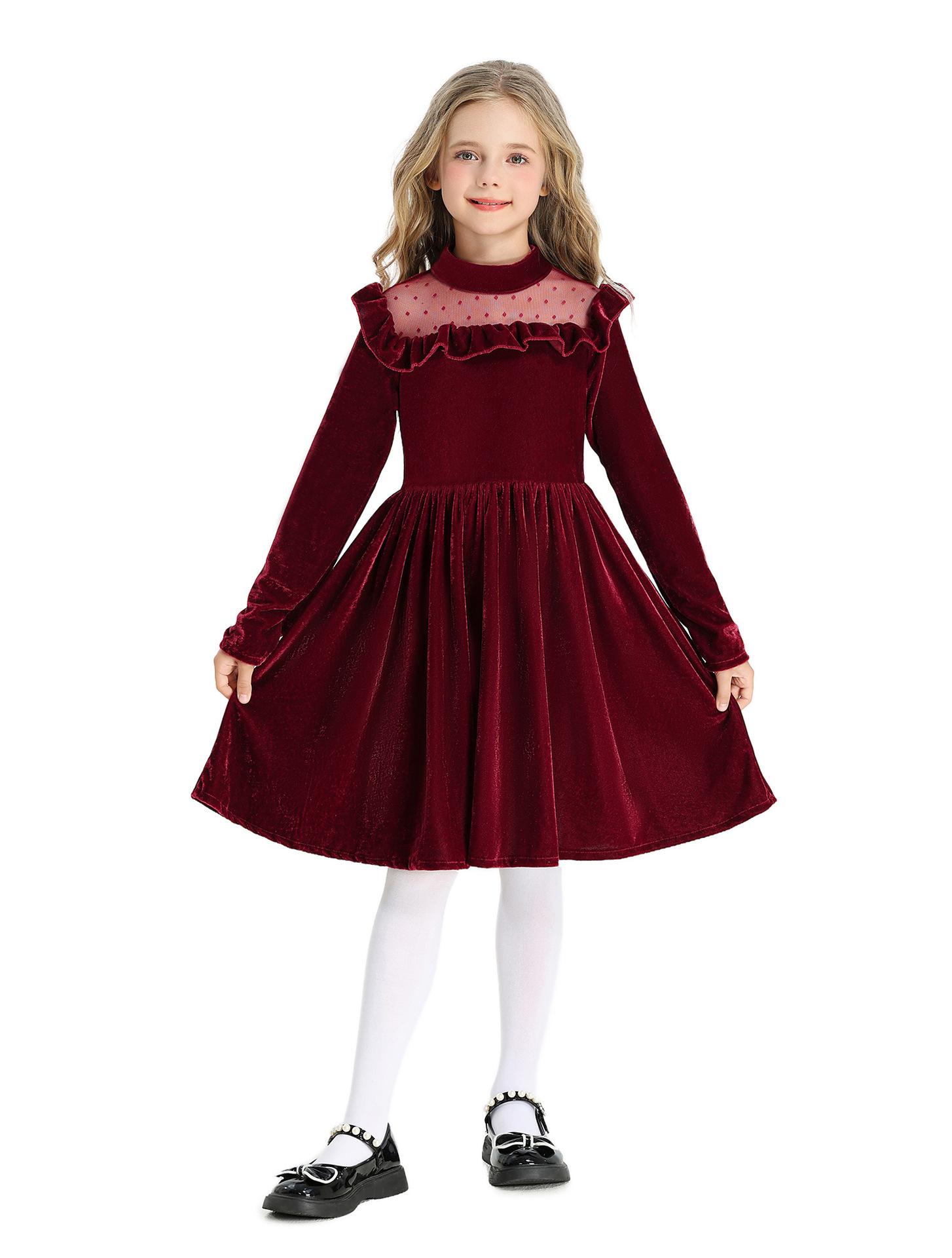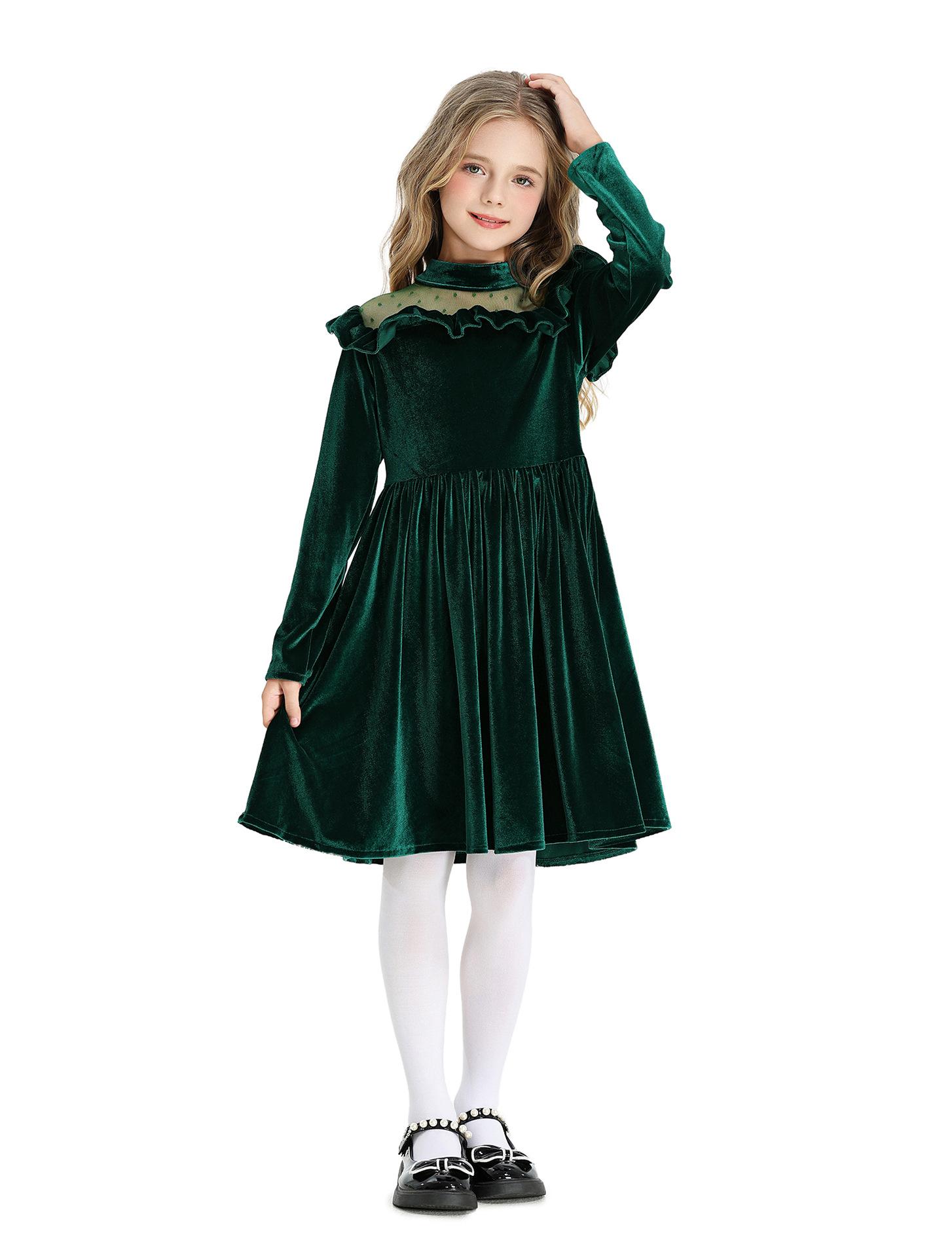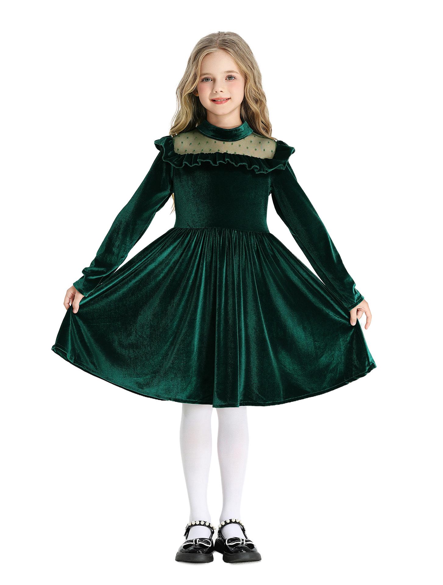 Volante Manga Larga Princesa Navidad Disfraz Infantil Vestido de Gala Vestido de Rendimiento para Fiesta de Navidad Niñas Malla