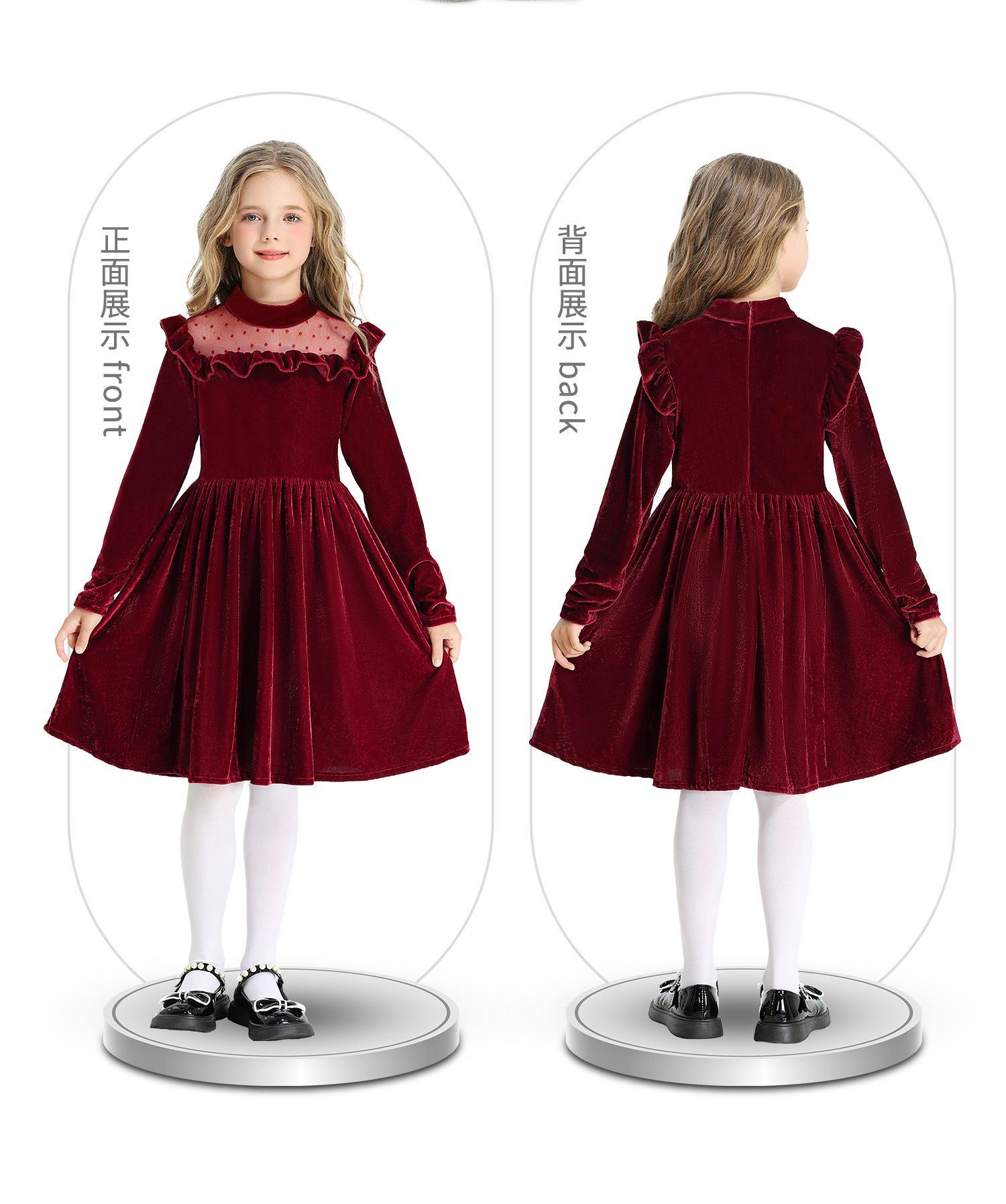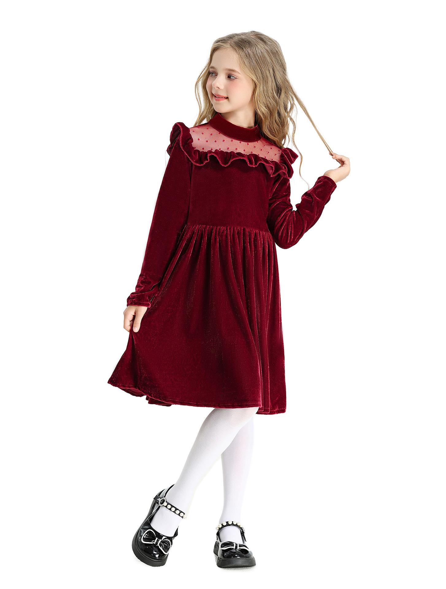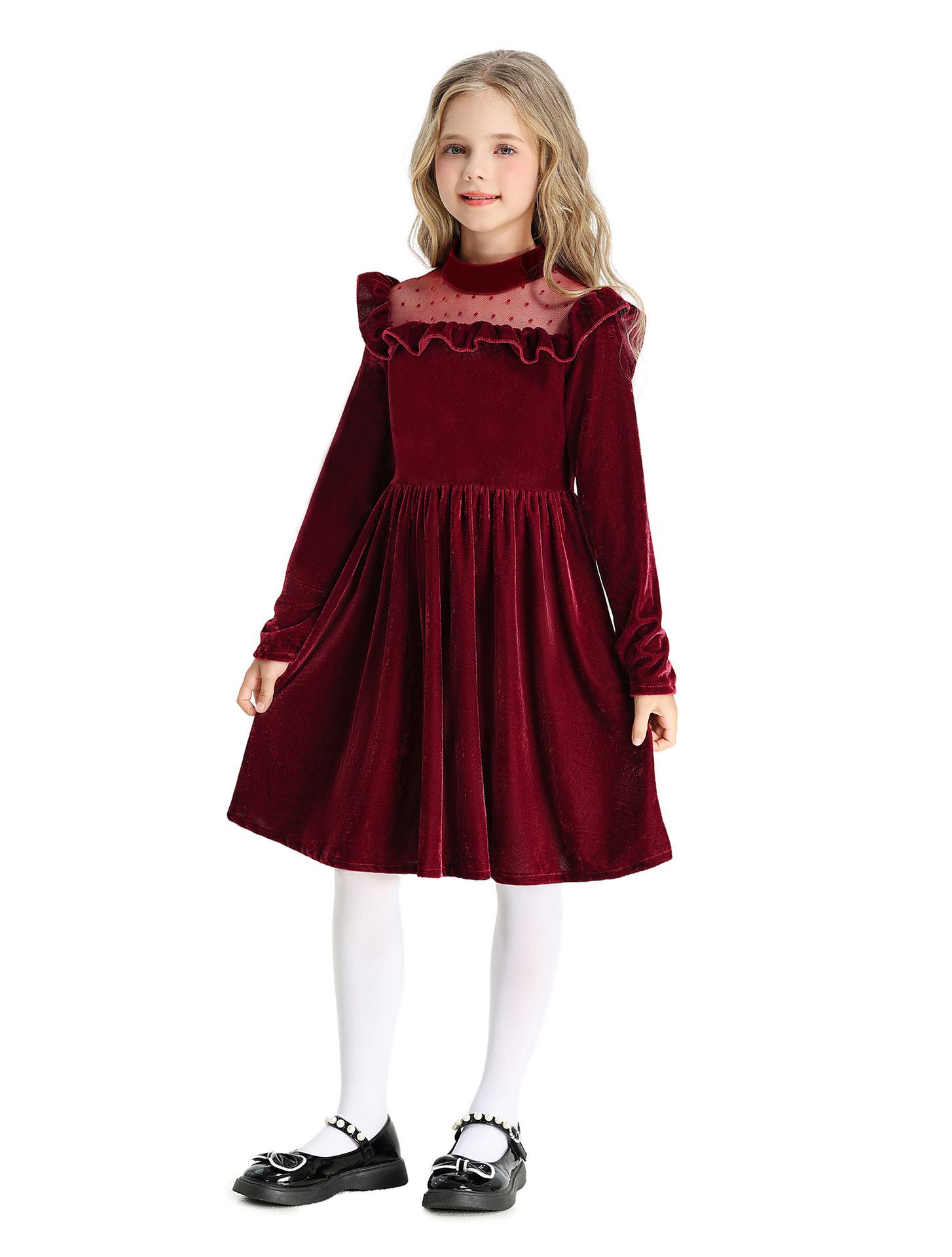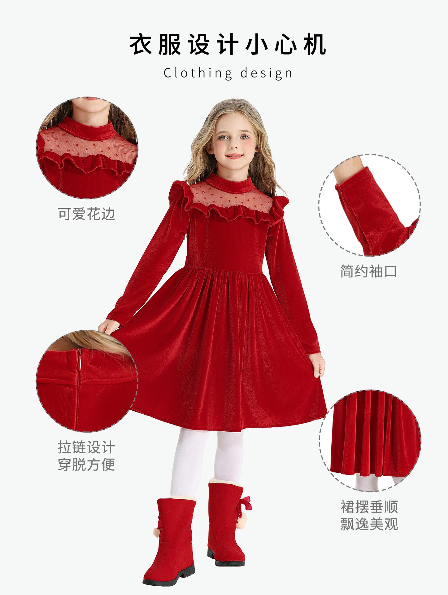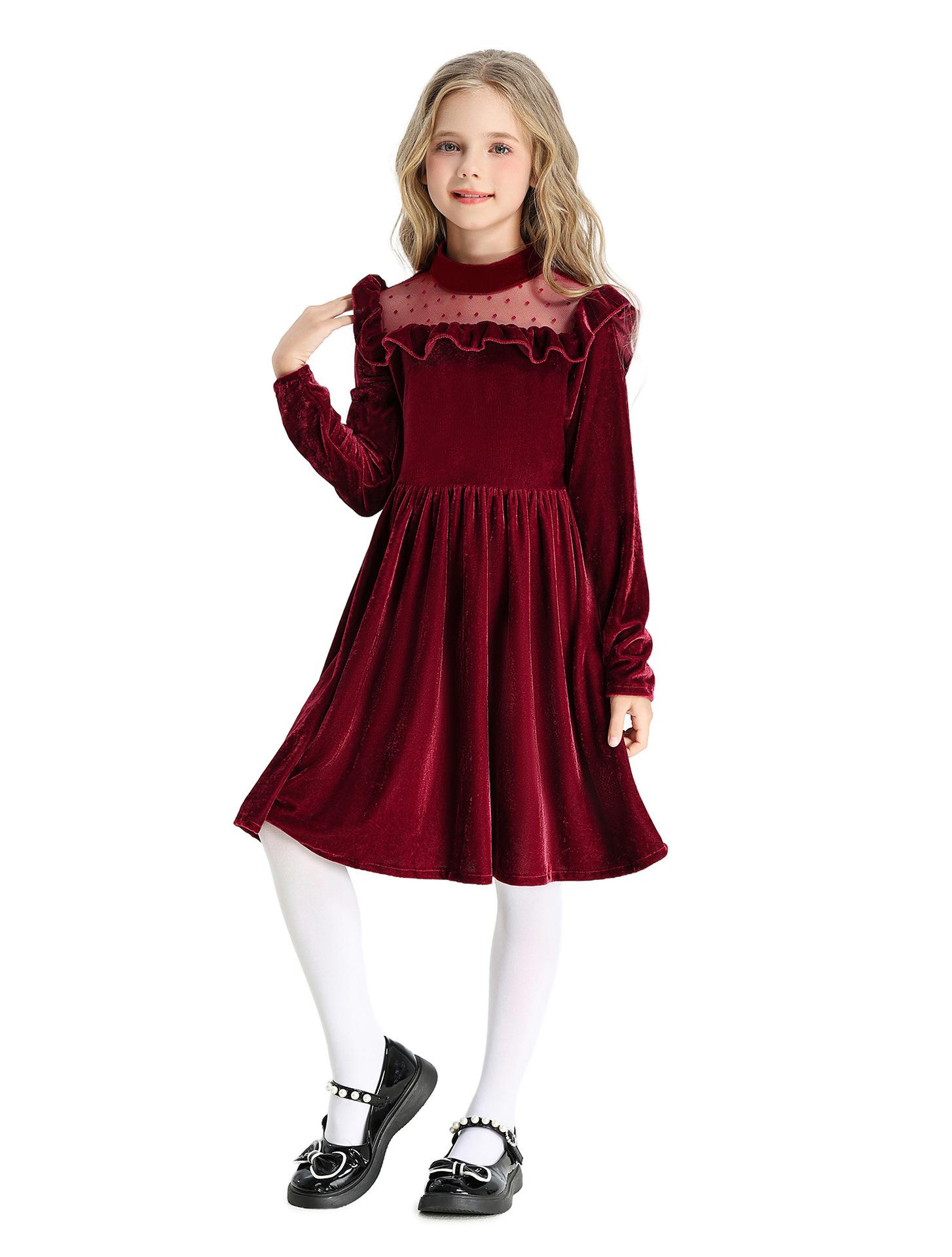 Volante Manga Larga Princesa Navidad Disfraz Infantil Vestido de Gala Vestido de Rendimiento para Fiesta de Navidad Niñas Malla