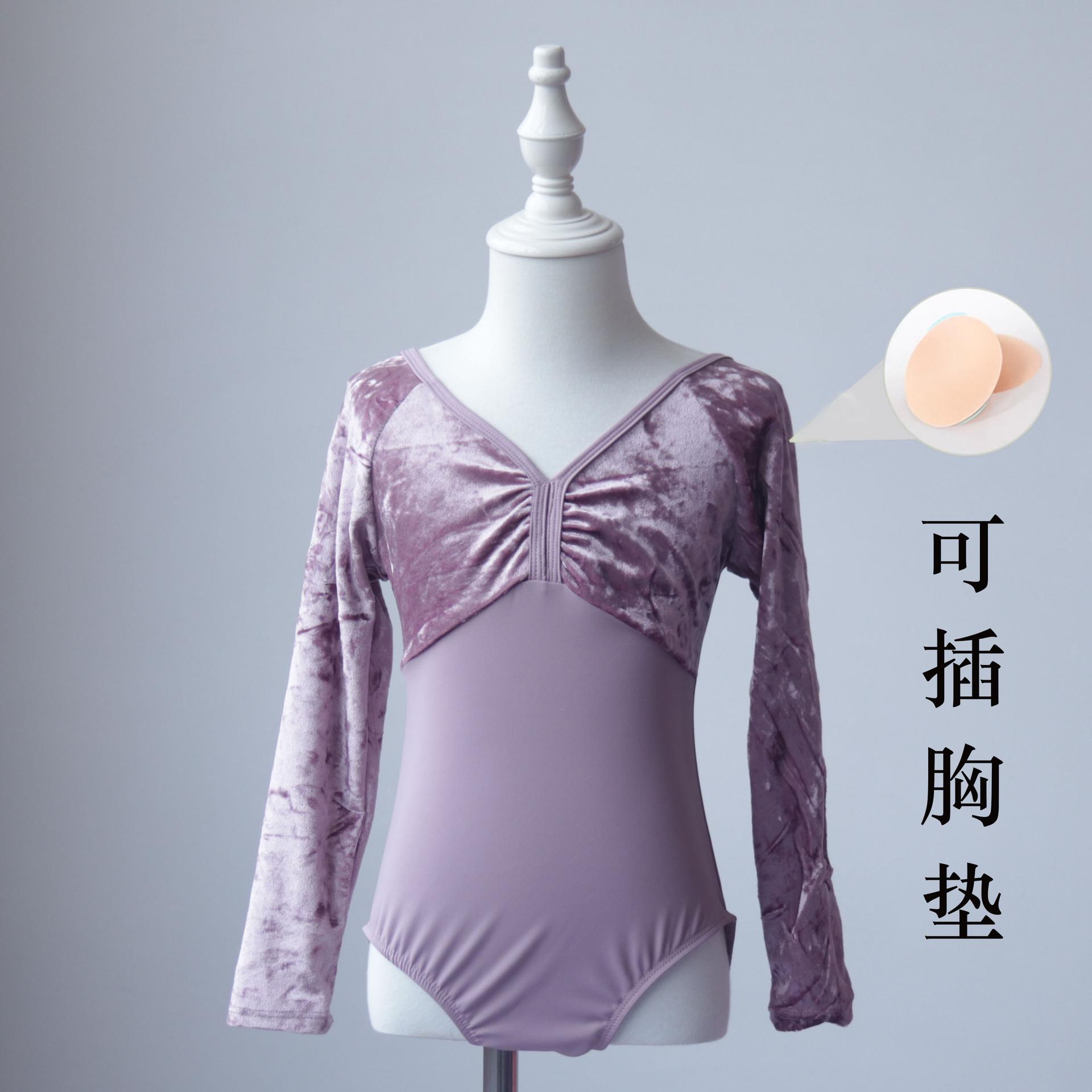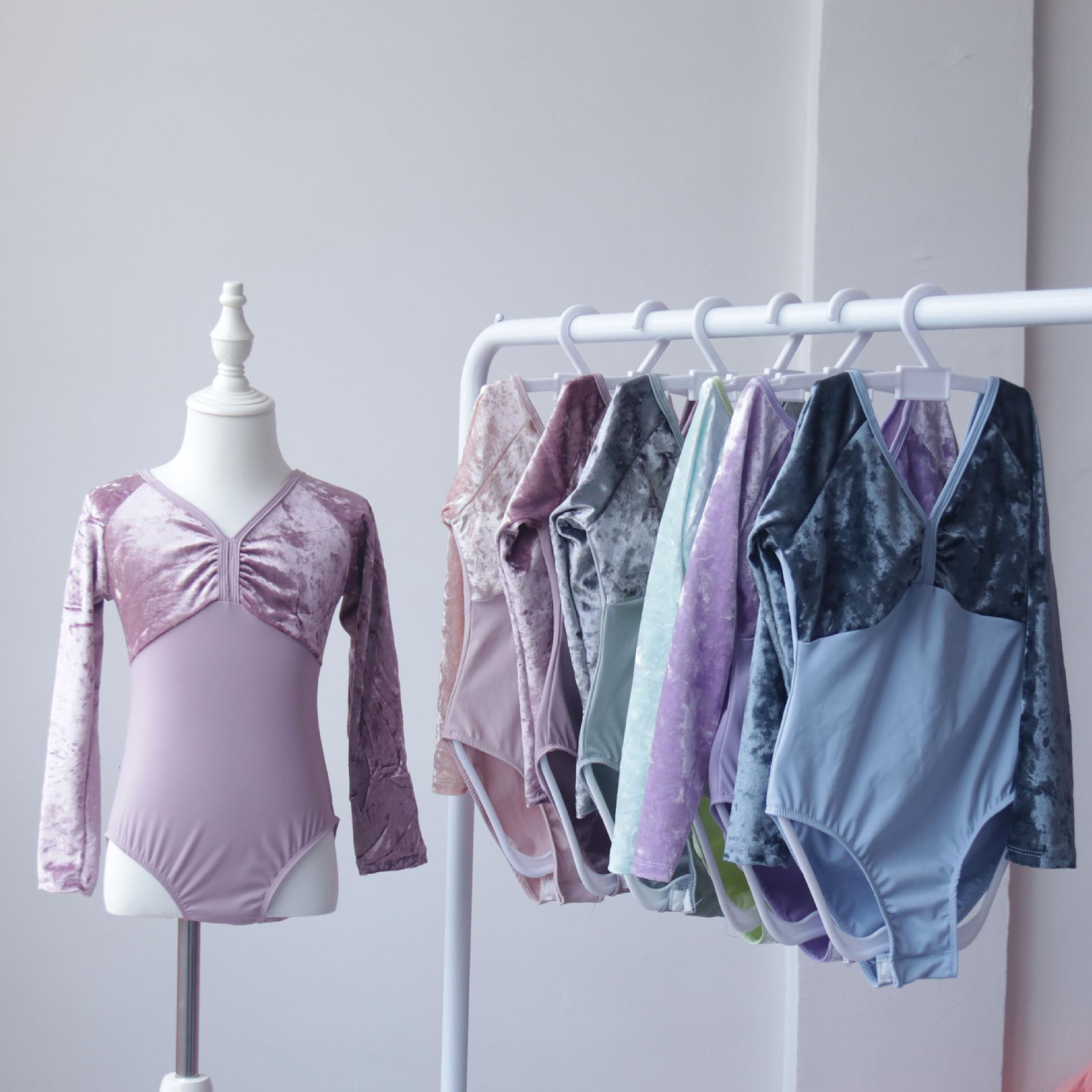 Traje de baile infantil de terciopelo de manga larga ropa de práctica ballet para niñas leotardo nuevo de manga larga ropa para moldear el cuerpo de danza china
