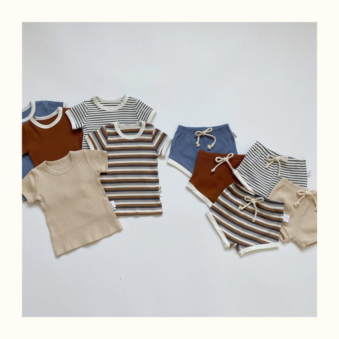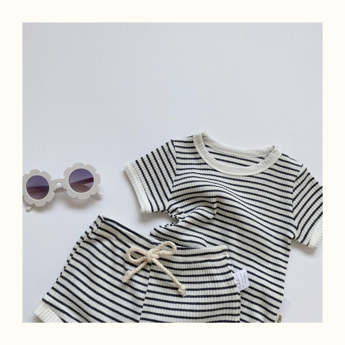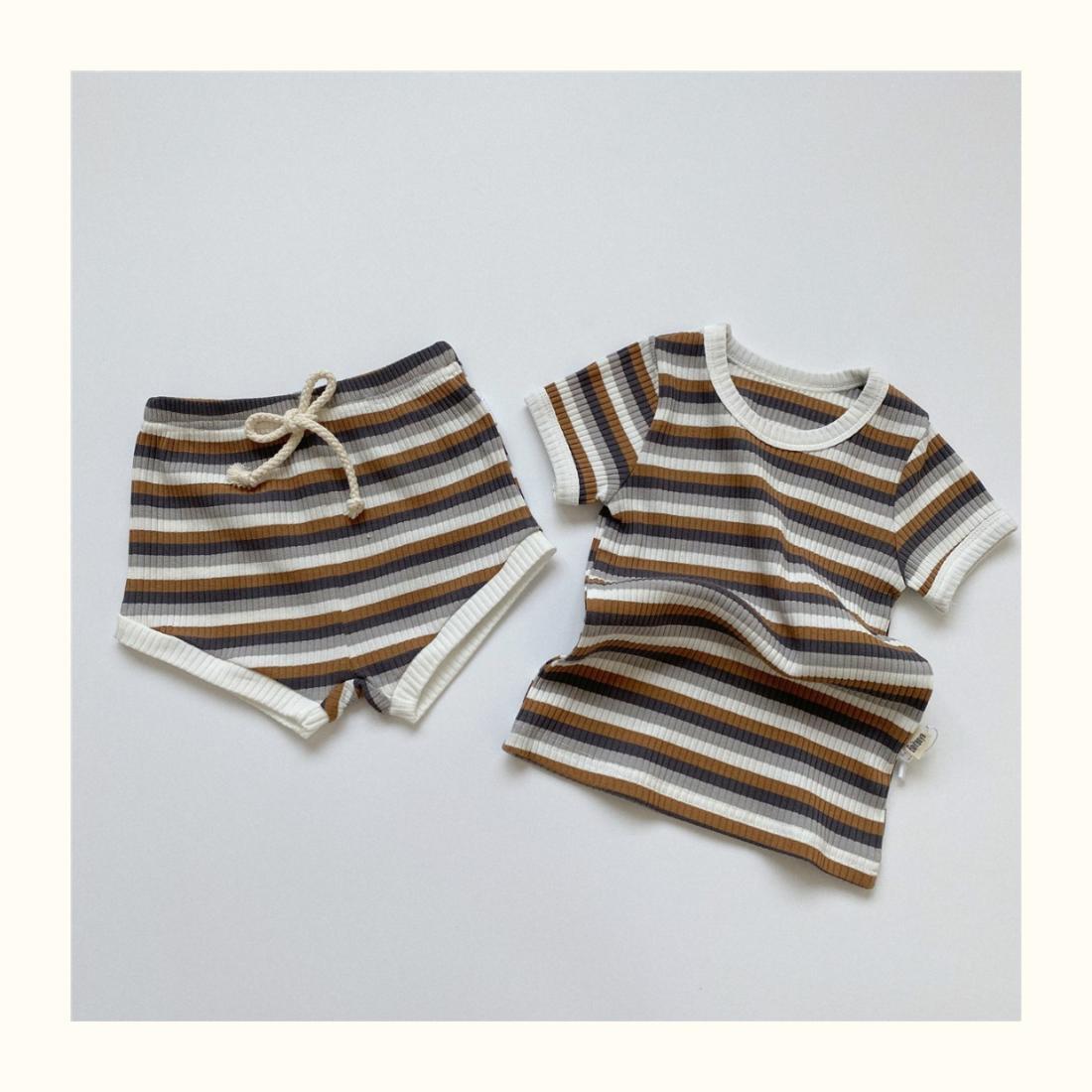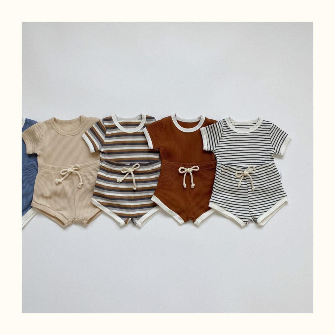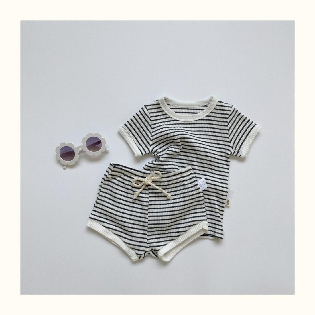 Conjunto de Ropa de Verano para Bebé Niño y Niña Ropa Infantil de Personalidad Moderna Estilo Coreano Camiseta de Manga Corta Deportiva a Rayas de Moda Shorts