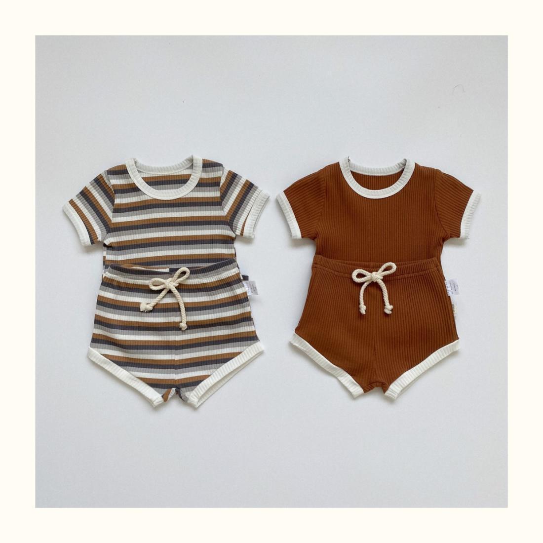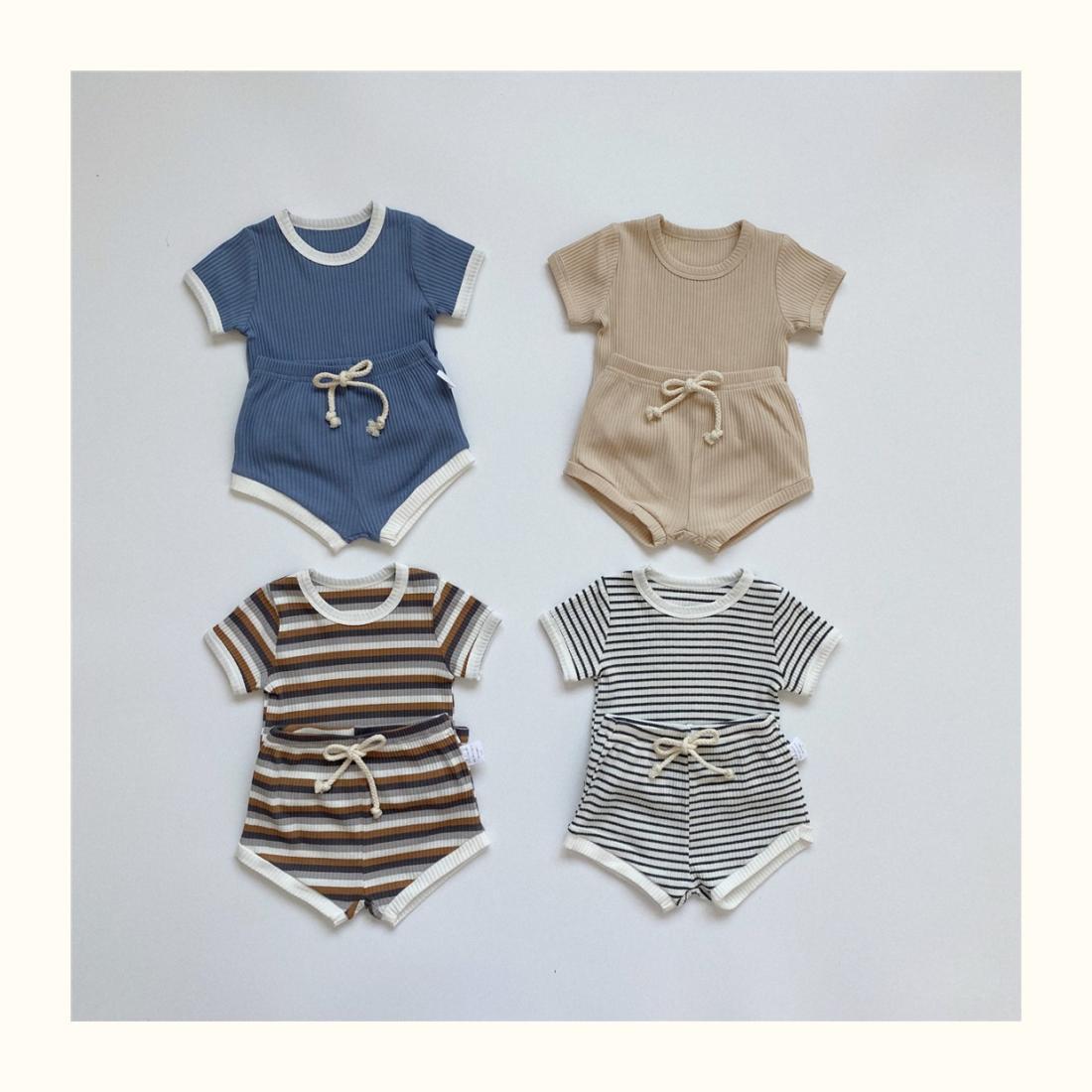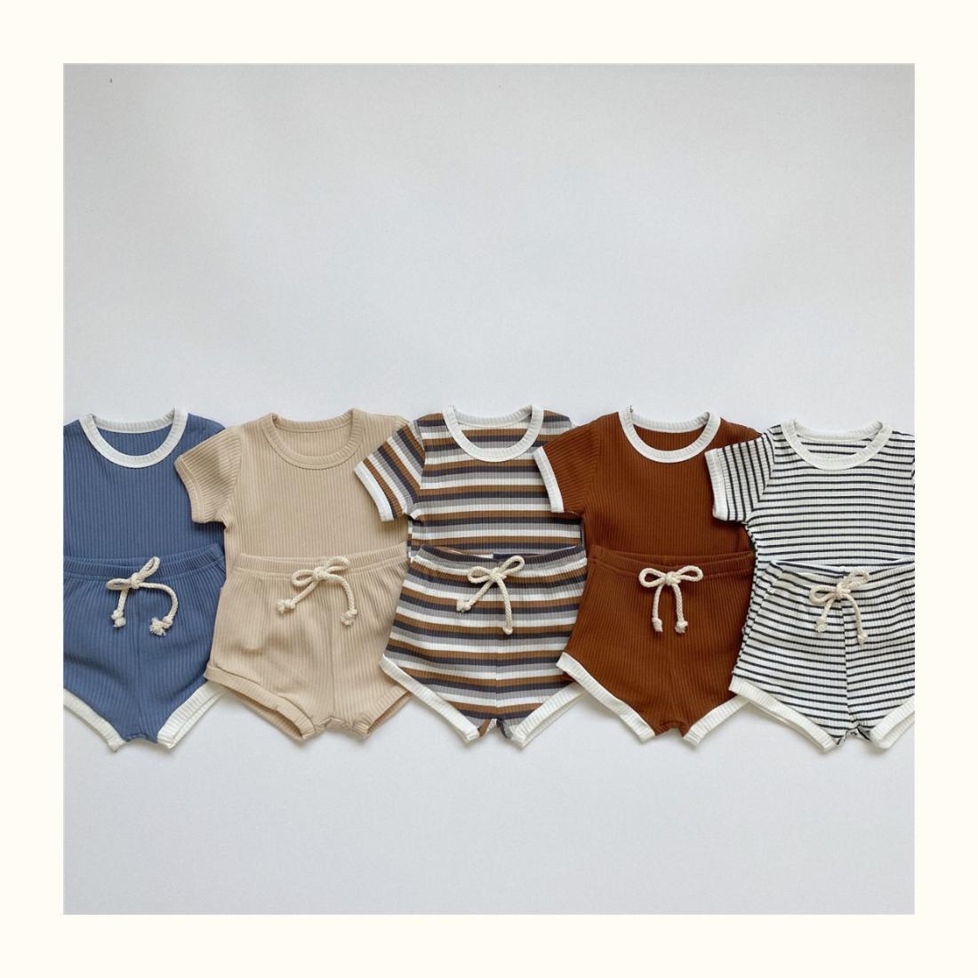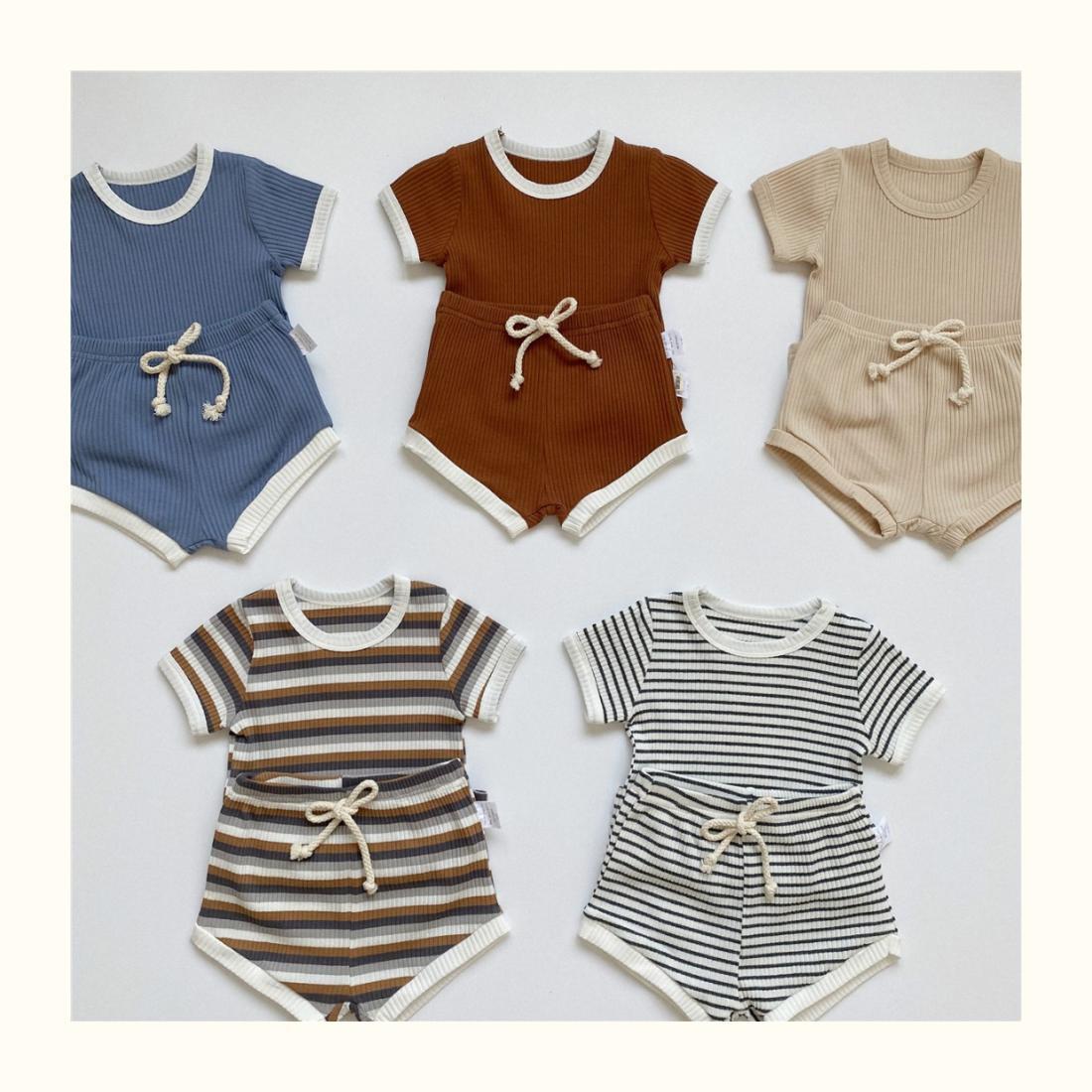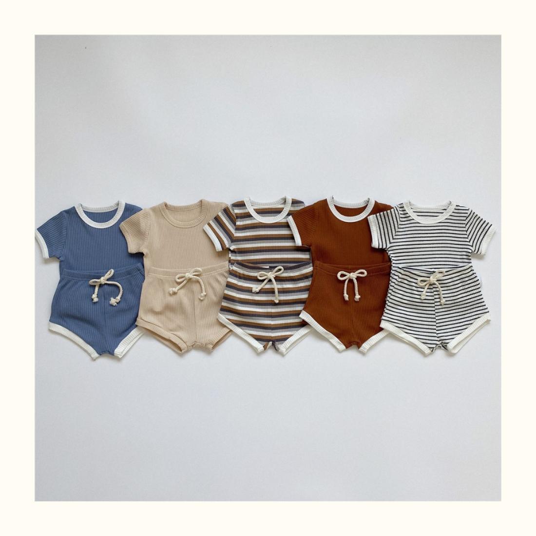 Conjunto de Ropa de Verano para Bebé Niño y Niña Ropa Infantil de Personalidad Moderna Estilo Coreano Camiseta de Manga Corta Deportiva a Rayas de Moda Shorts