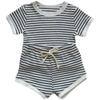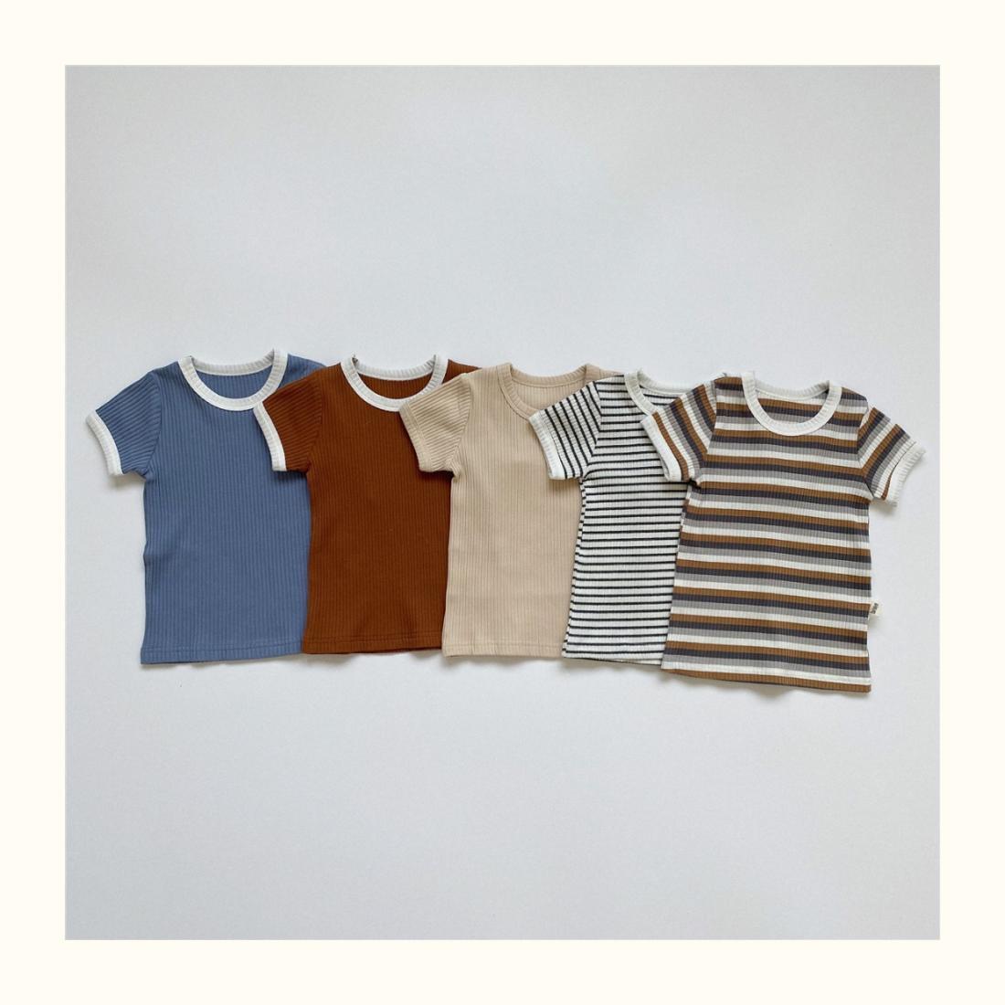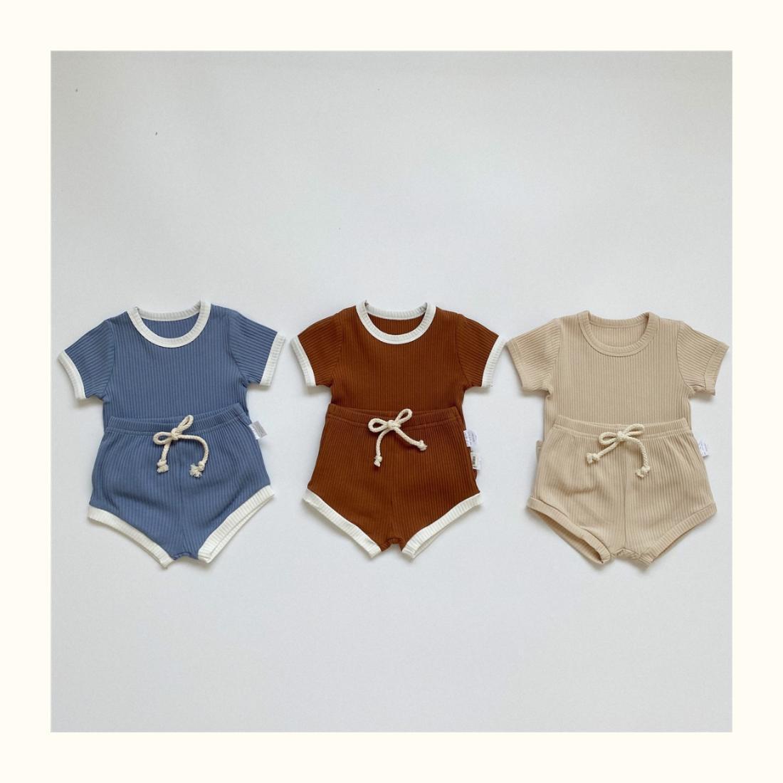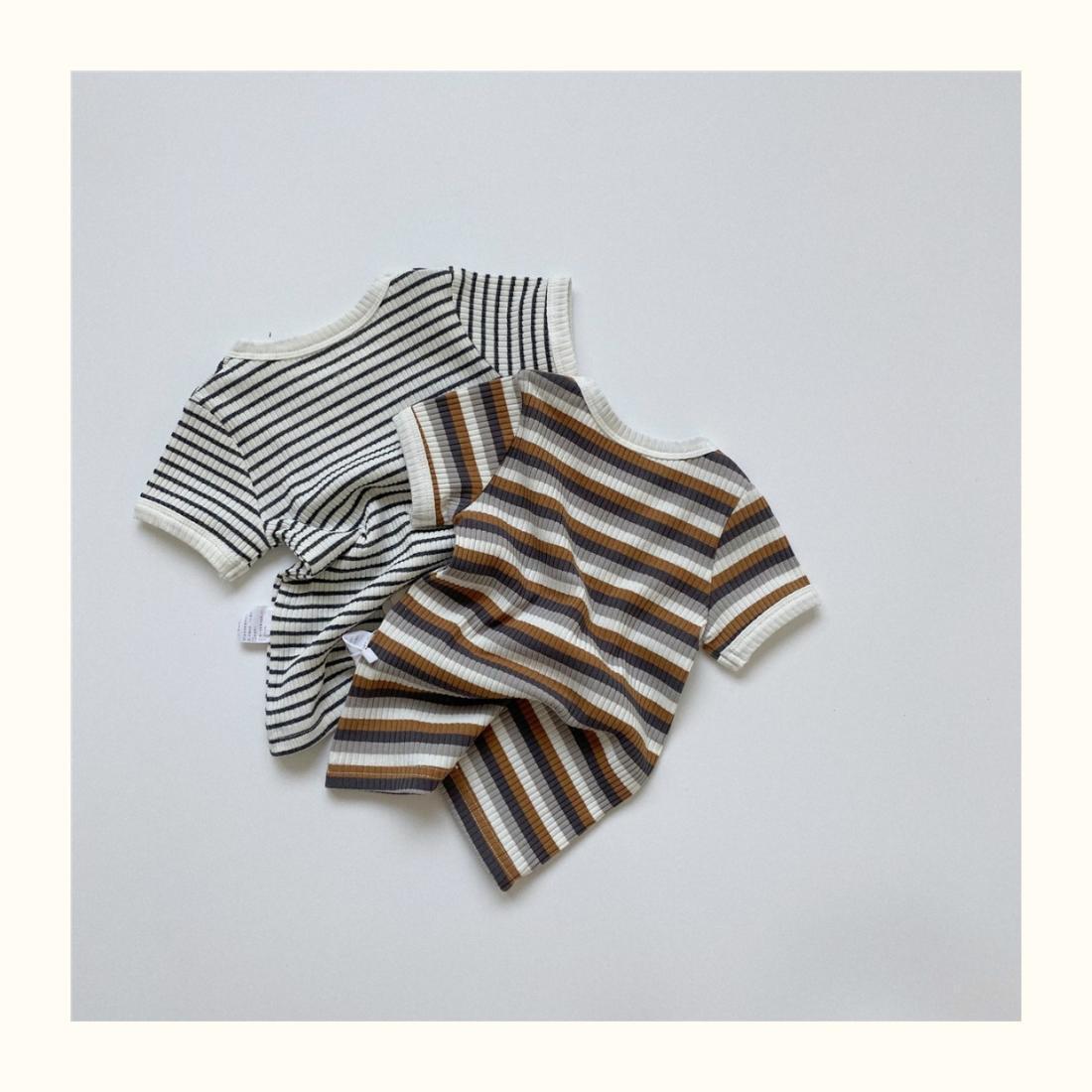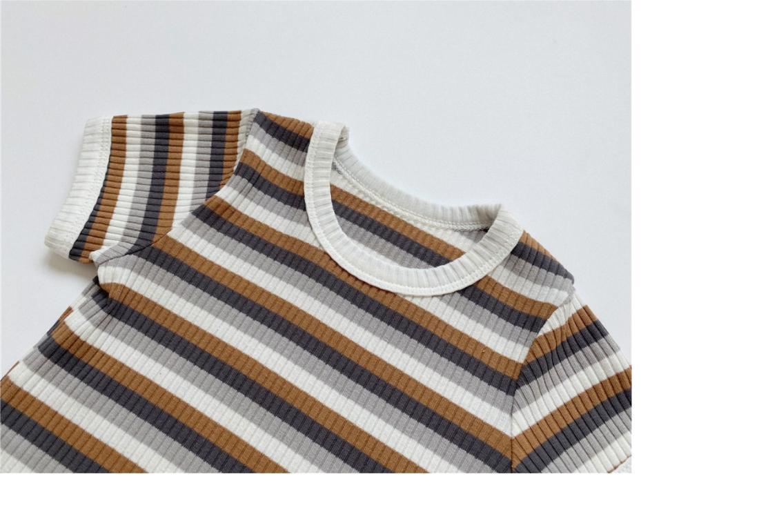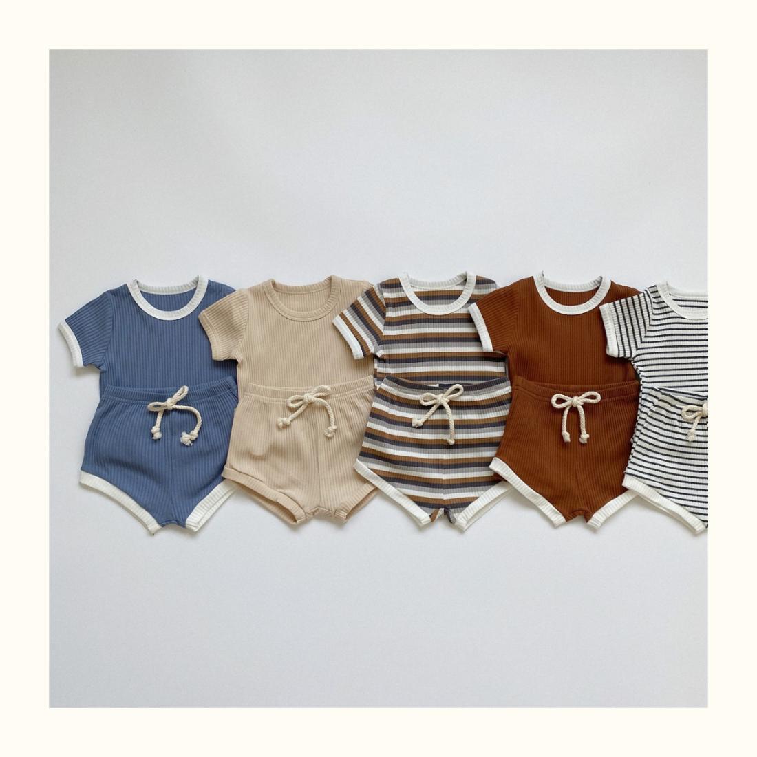 Conjunto de Ropa de Verano para Bebé Niño y Niña Ropa Infantil de Personalidad Moderna Estilo Coreano Camiseta de Manga Corta Deportiva a Rayas de Moda Shorts