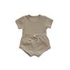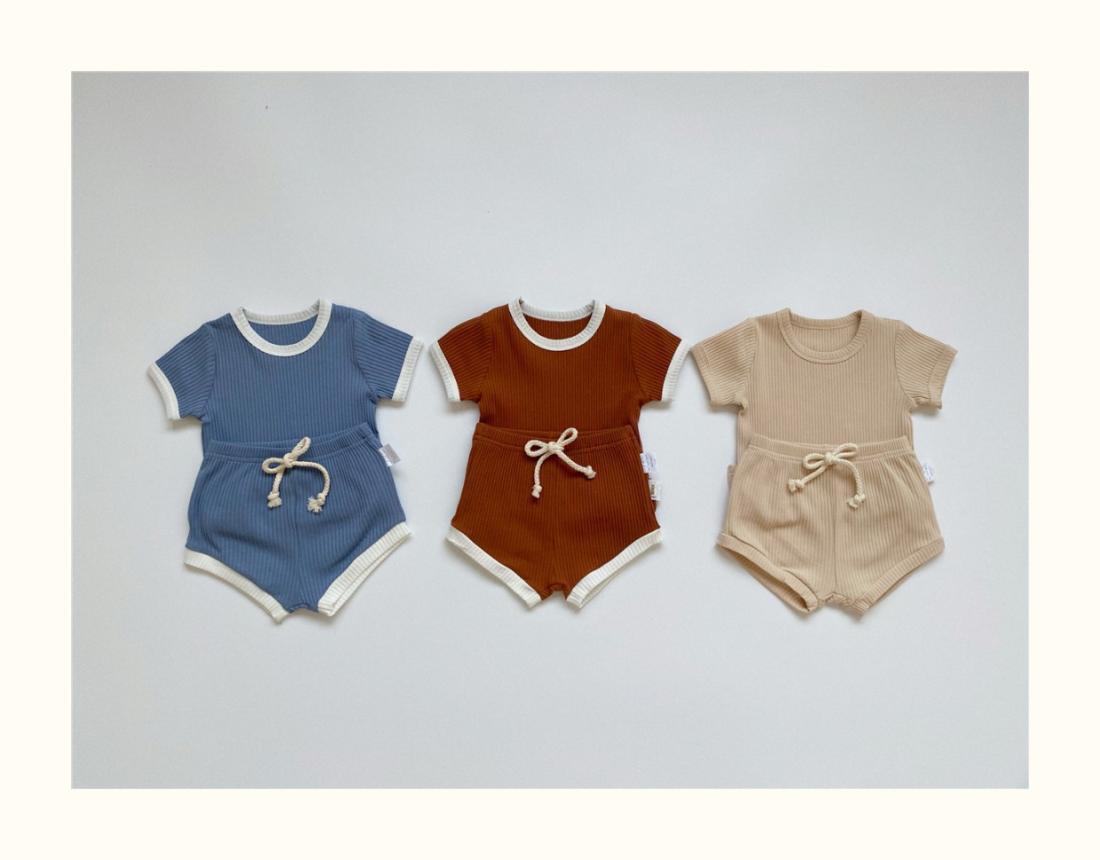 Black striped short-sleeved set, Blue crew neck short sleeve set, Khaki round neck short sleeve set, Khaki rou...