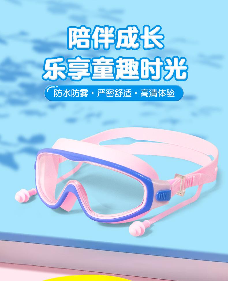 Gafas de Natación para Niños con Montura Grande de Una Pieza y Tapones para los Oídos Mejorados 2023 Nuevas HD Impermeables Antivaho Venta al por Mayor de Fábrica