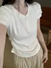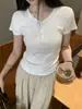 Playera de Verano Ajustada con Pliegues para Mujer con Botones de Cuello en V Pequeño, Mangas Cortas, Hombros Regulares y Top Ajustado para Verano