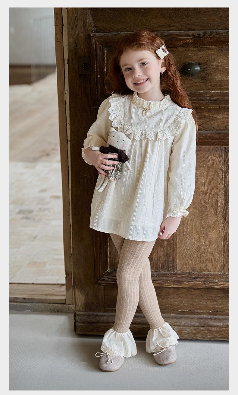 Pantalones cropped para niña otoño nuevo estilo bebé niña leggings de encaje a la moda leggings para niños pantimedias de algodón peinado