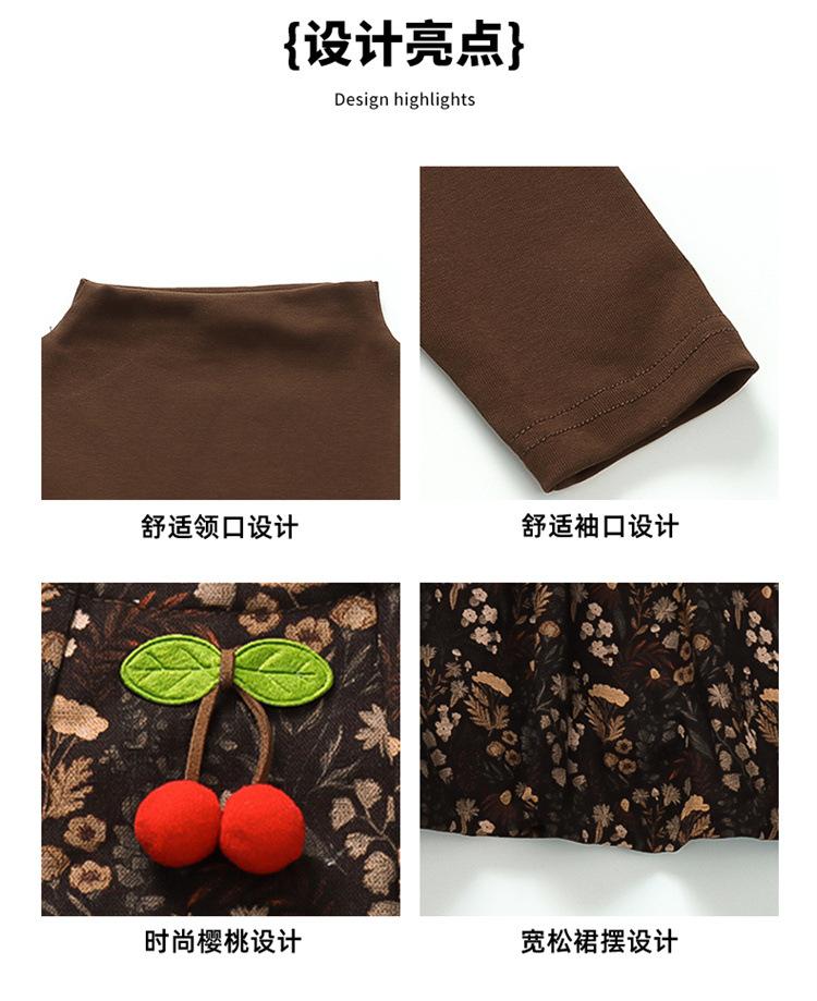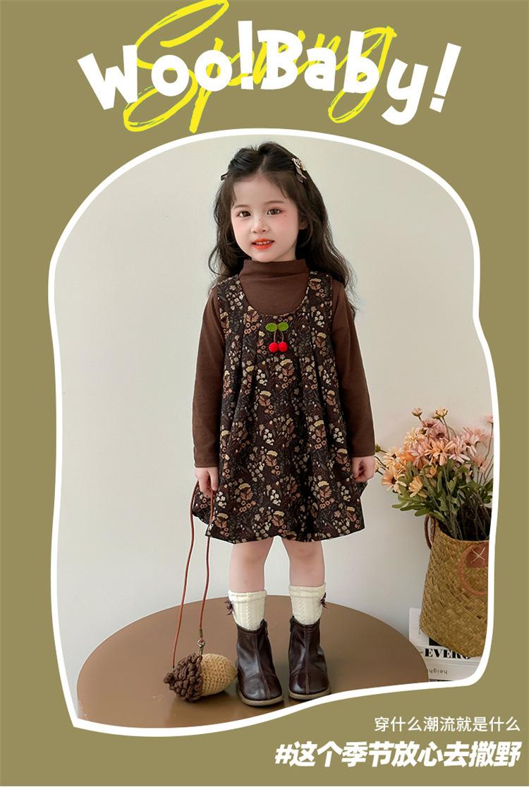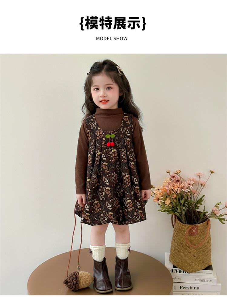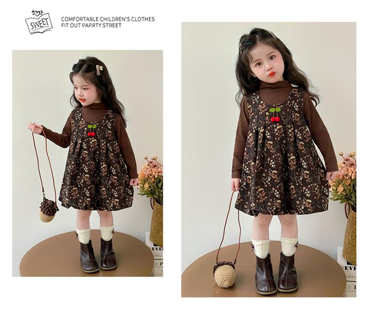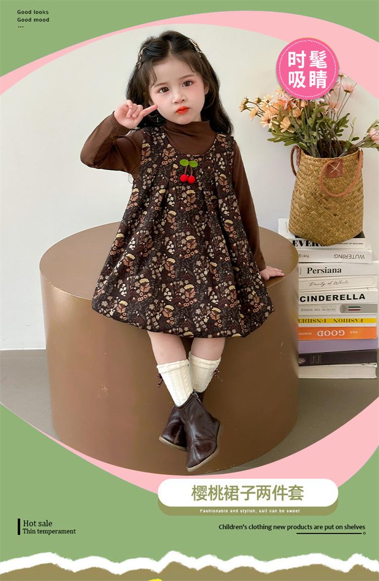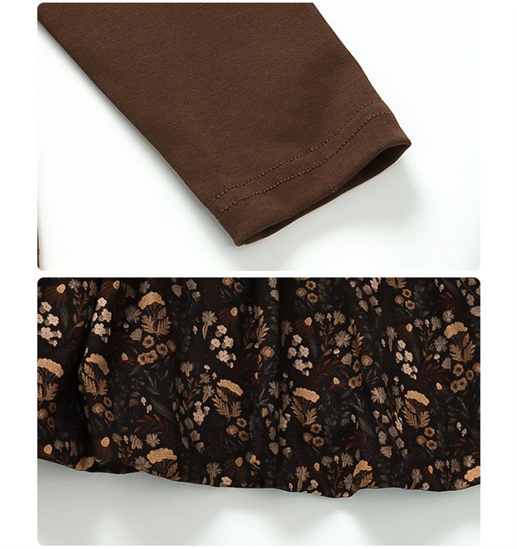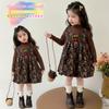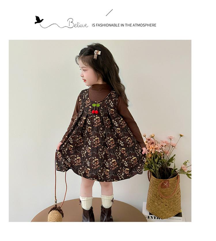 Conjunto de Vestido Floral Dulce Casual de Moda de Estilo Coreano Nuevo de Primavera y Otoño para Niñas Falda de Capullo de Manga Larga para Bebé Otoño
