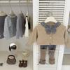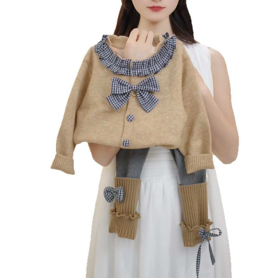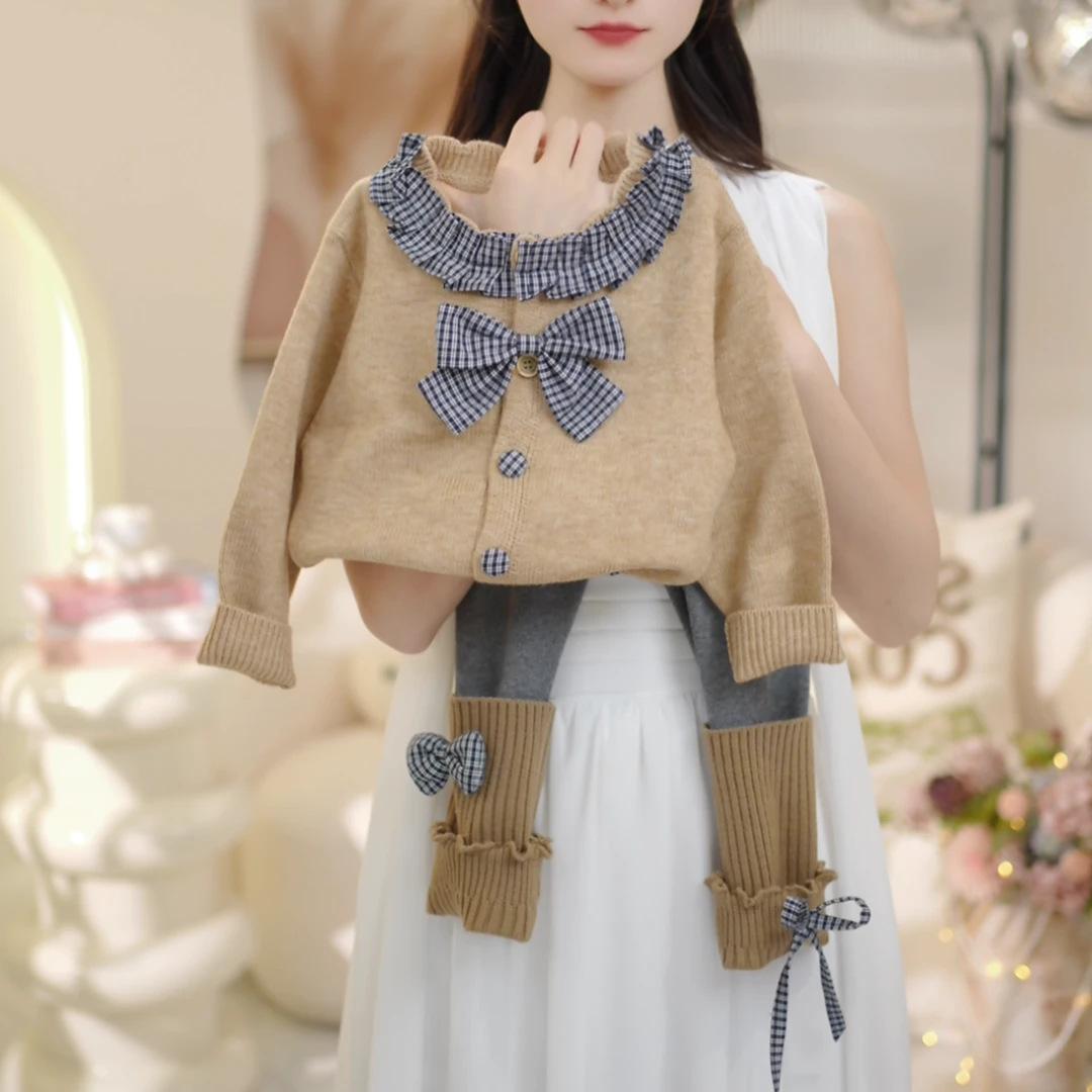 Conjunto de punto dulce y encantador para niñas 2025 otoño nuevo suéter de patchwork a cuadros moderno leggings conjunto de dos piezas