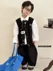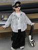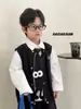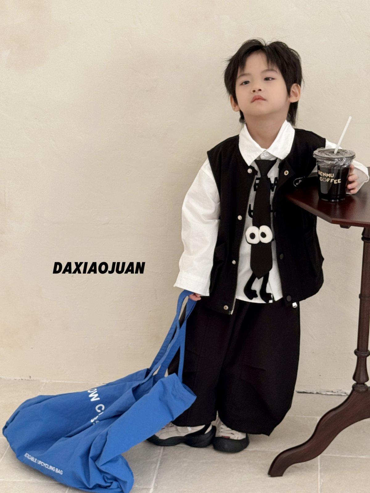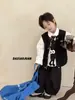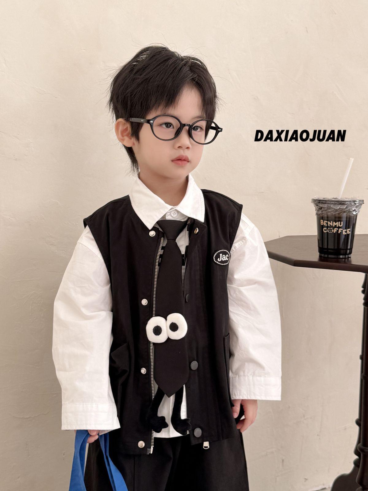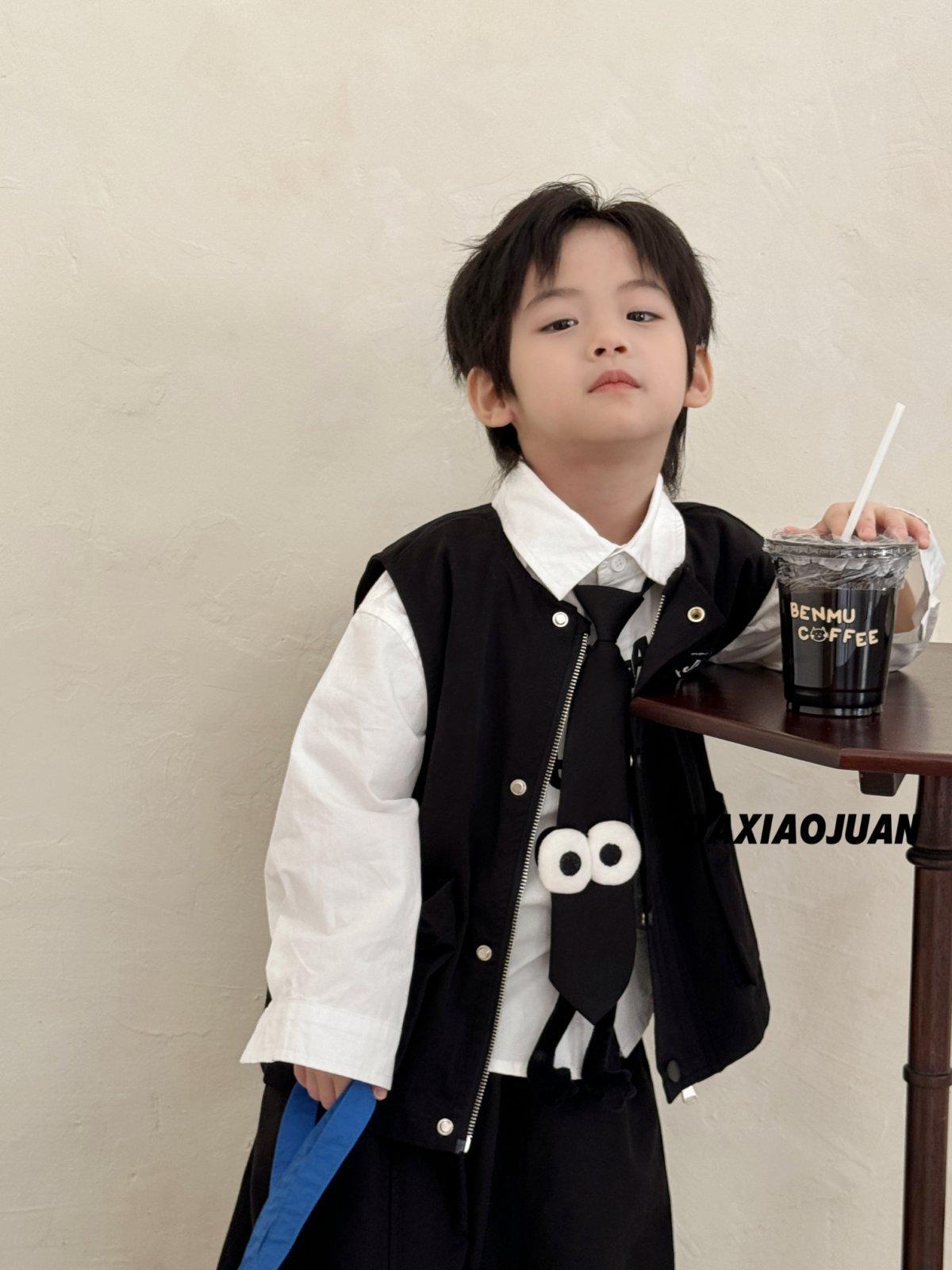 Ropa Infantil de Rollo Grande y Pequeño Camisa de Niño 25 Otoño Bebé Niño Estilo Coreano Solapa con Letras Blancas Camisa Guapa con Corbata Moderna