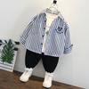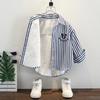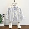 Camisa Bordada de Rayas Verticales para Niños Primavera y Otoño 2025 Otoño Camisa Casual Guapa para Niños Ropa Versátil para Bebés
