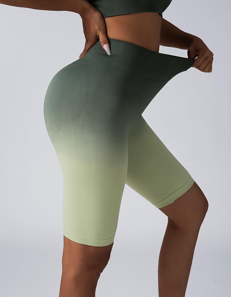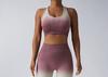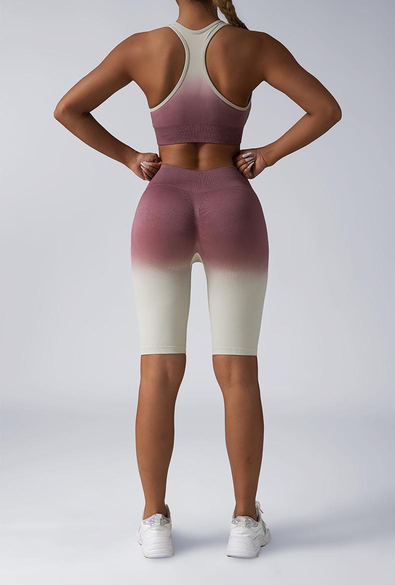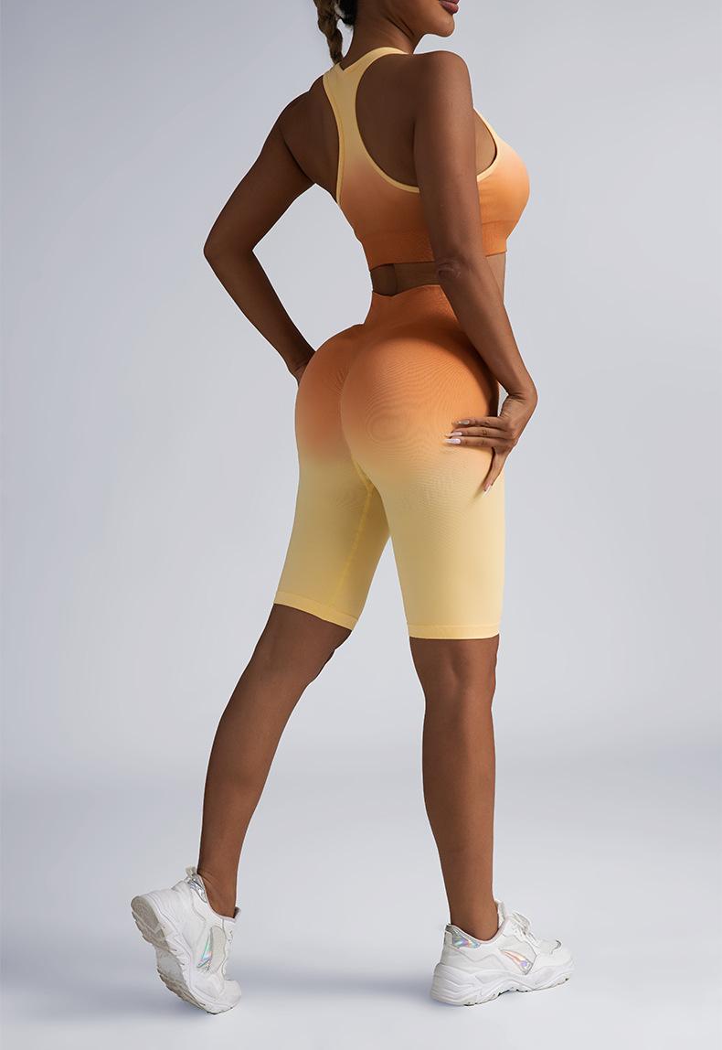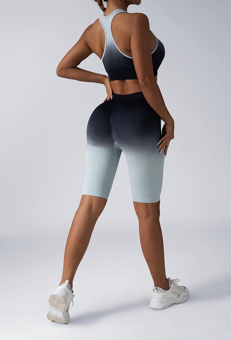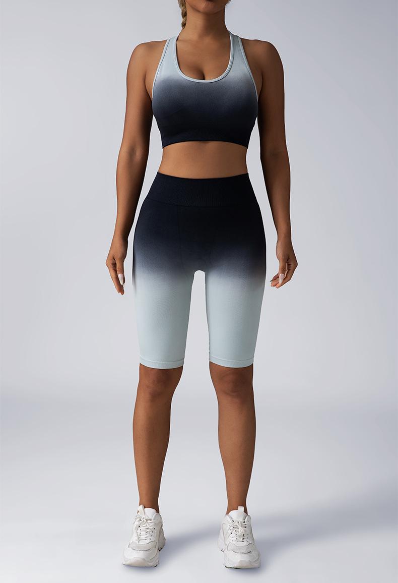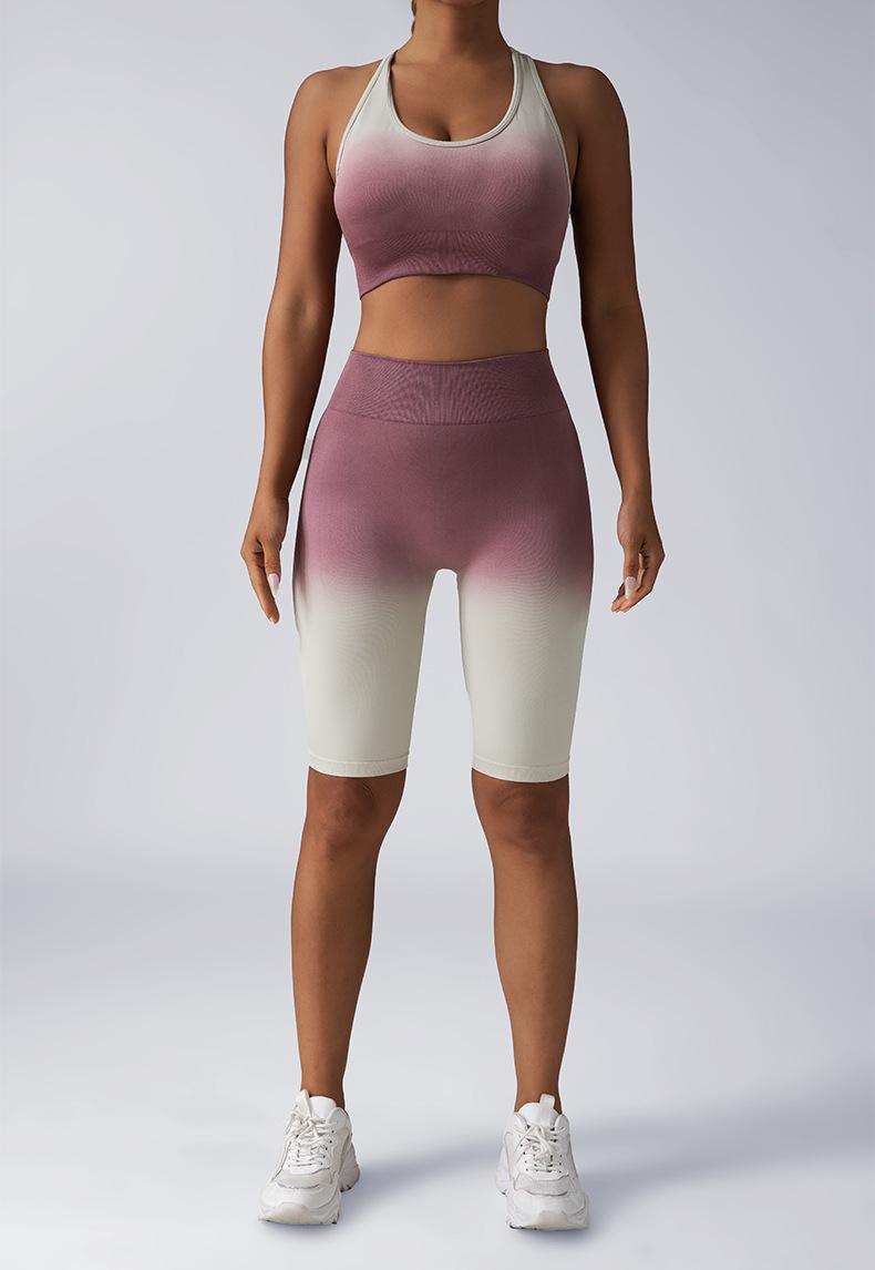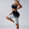 Conjunto de Traje de Yoga Personalizado Shorts Chaleco Conjunto de Dos Piezas para Mujer Verano Color Degradado Fitness Pantalones Cinco Puntos Sujetador Deportivo