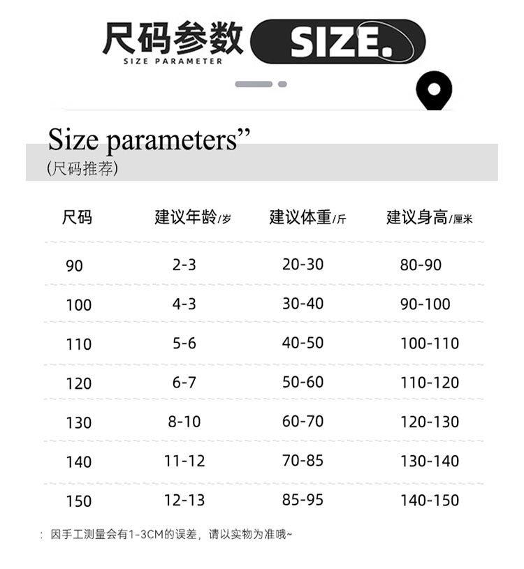 90cm, 100cm, 110cm, 120cm, 130cm, 140cm, 150cm