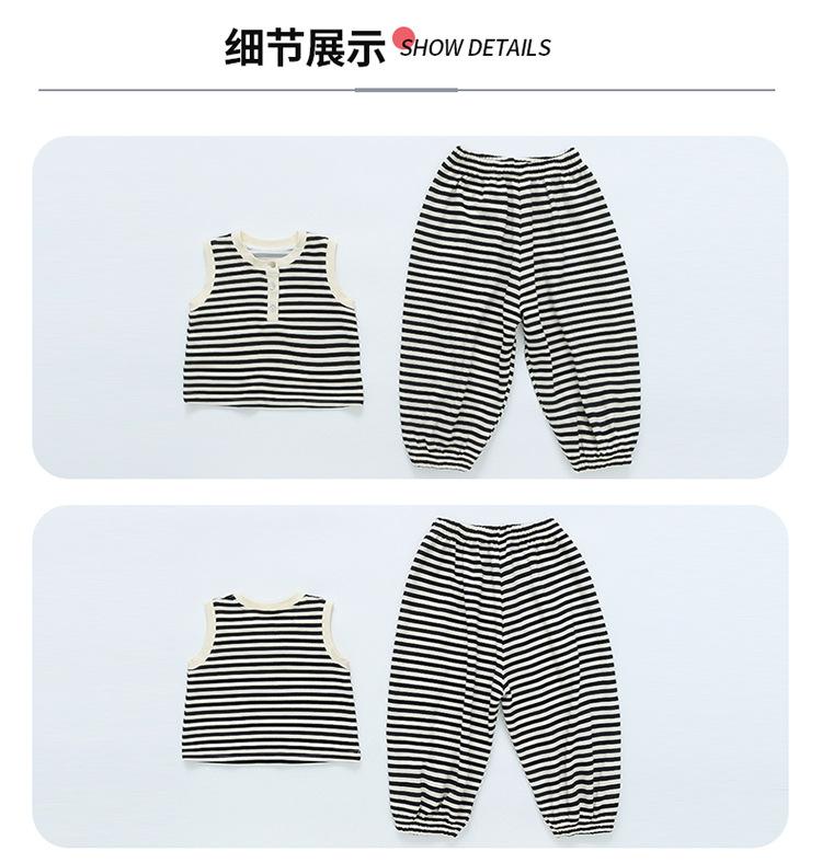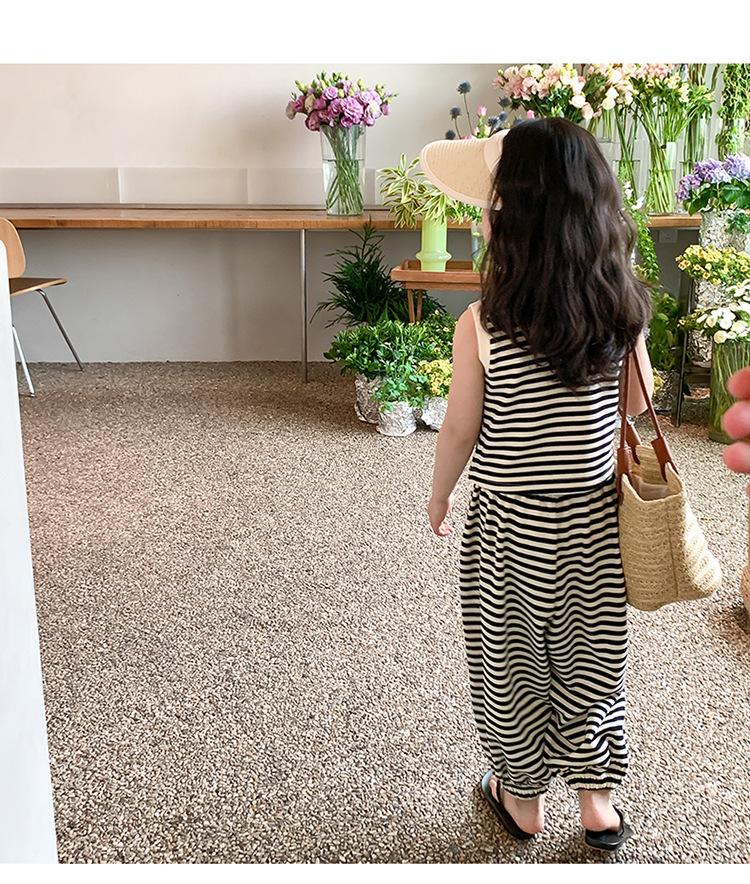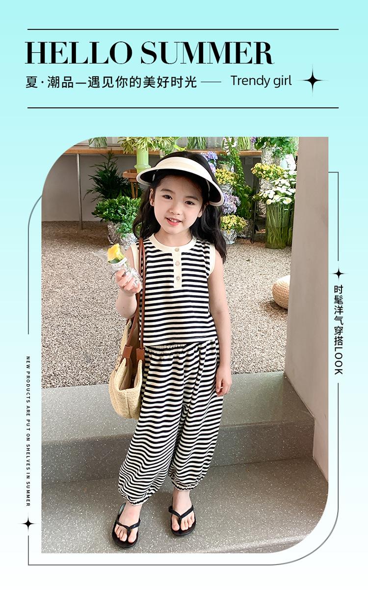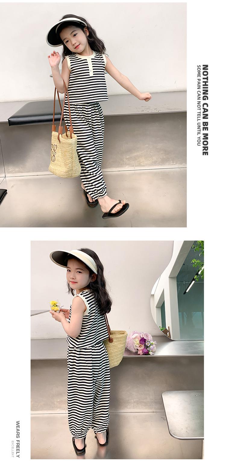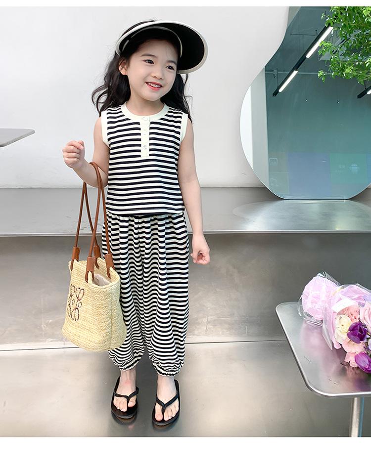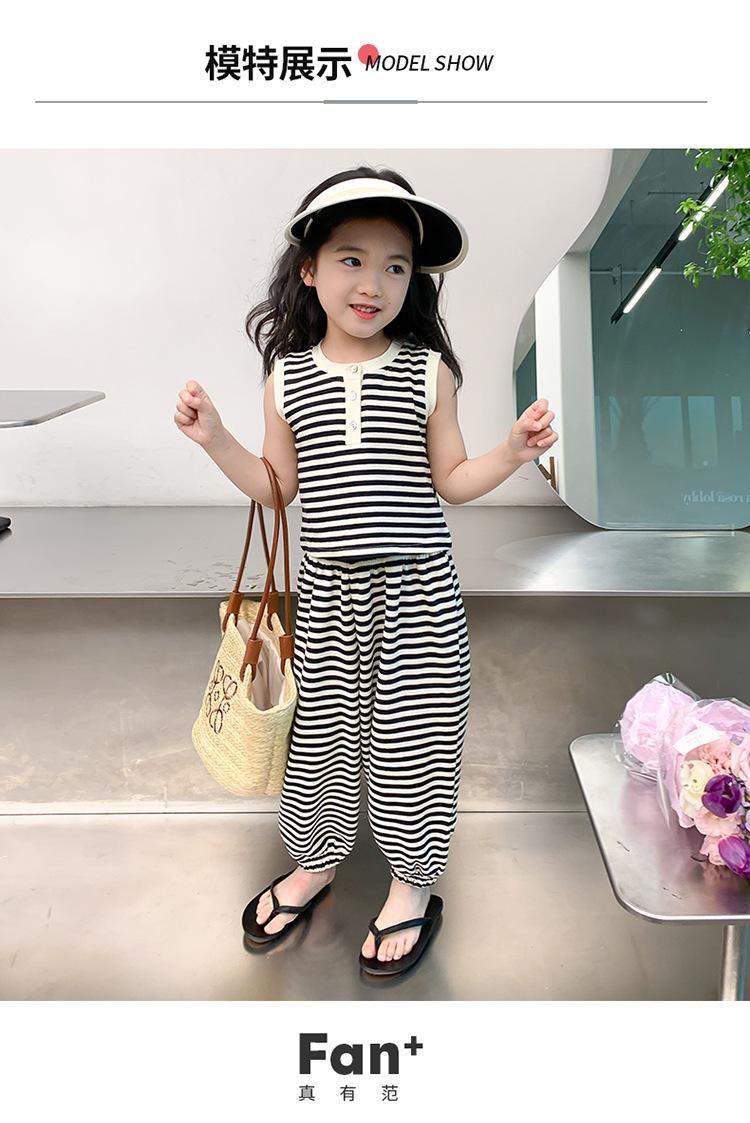 Traje para niña Verano 2025 Nuevo Estilo Occidental Moderno Verano Rayado Manga Corta Pantalones Antimosquitos Conjunto de Dos Piezas para Niña