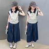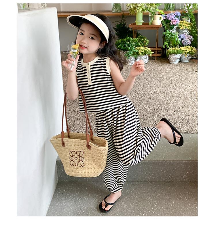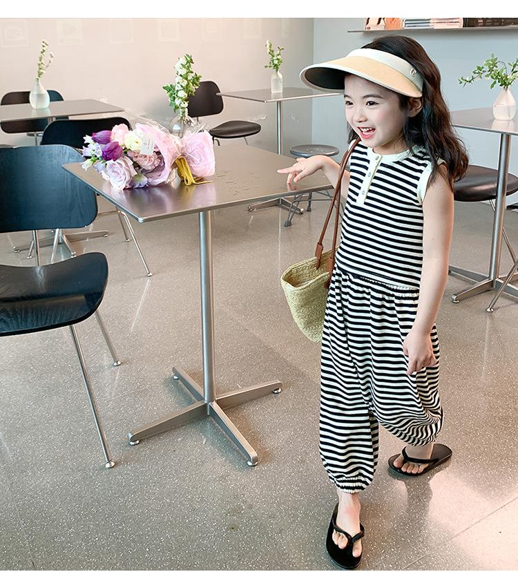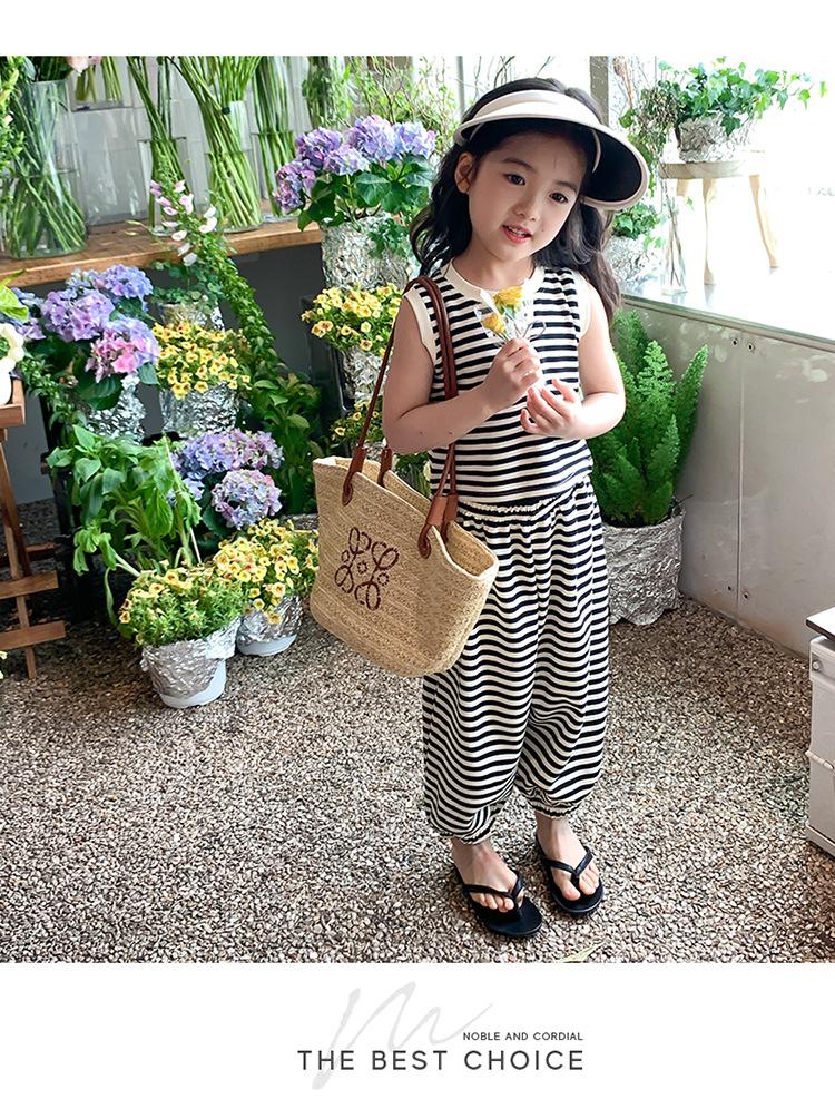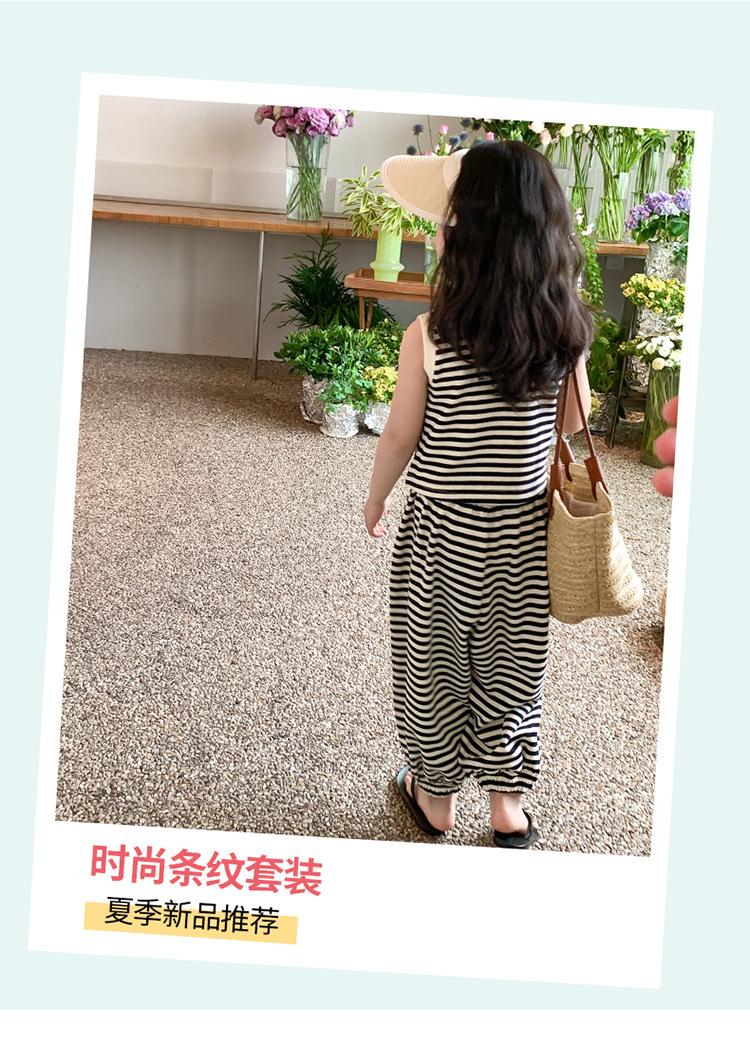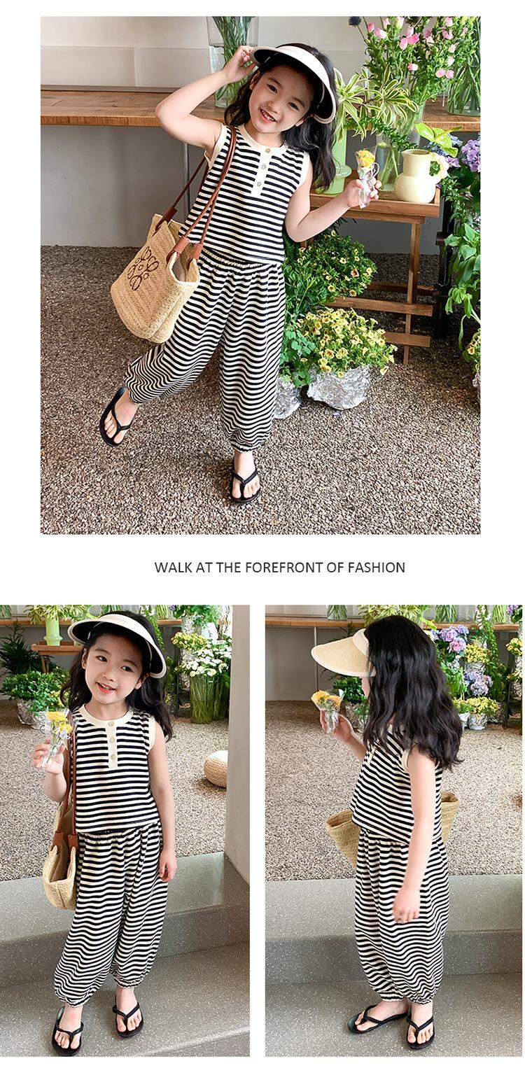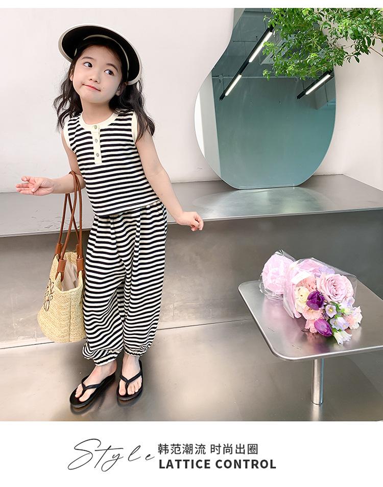 Traje para niña Verano 2025 Nuevo Estilo Occidental Moderno Verano Rayado Manga Corta Pantalones Antimosquitos Conjunto de Dos Piezas para Niña