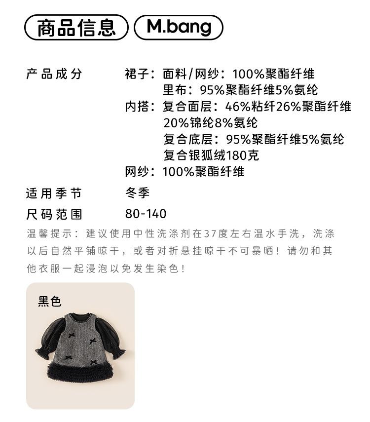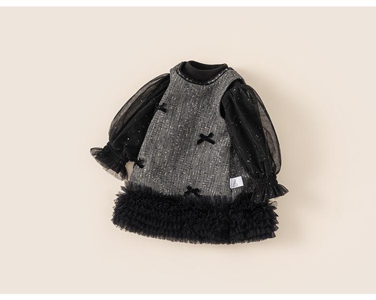 Ropa Infantil Bangxuan Conjunto de Falda de Invierno Vestido de Noche de Tul para Niños Falda de Dos Piezas Vestido para Niñas con Lazo