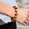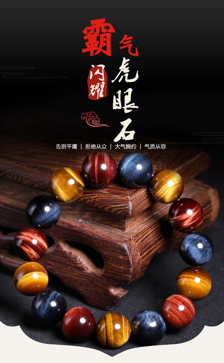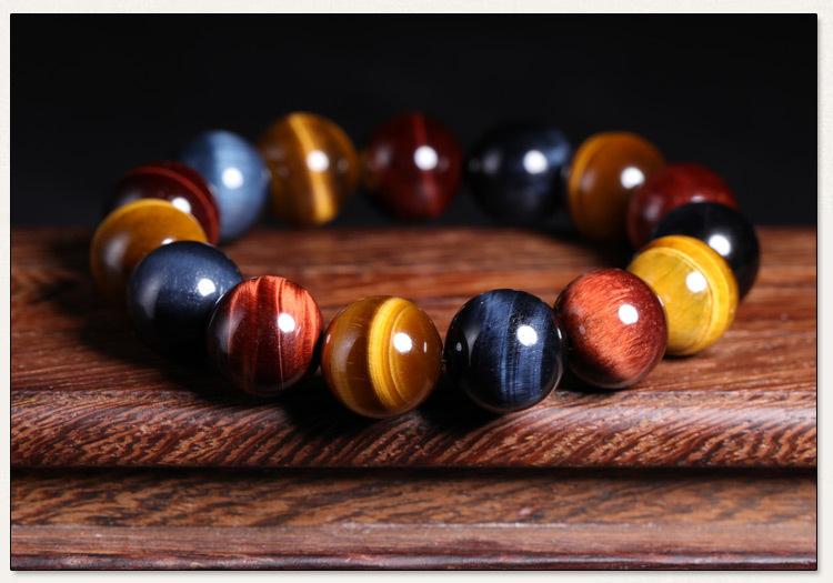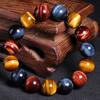 Pulsera de Piedra Ojo de Tigre Colorida Natural para Hombres y Mujeres, Pulsera de Piedra Ojo de Tigre Dorada Roja y Azul, Ojo de Relámpago Piedra Ojo de Tigre Tricolor