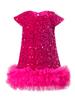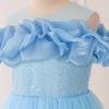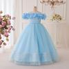Vestido de fiesta para niñas de gran venta transfronterizo, ropa para niños grandes y medianos, hombros descubiertos, falda de malla abullonada, vestido de princesa largo de moda con lentejuelas