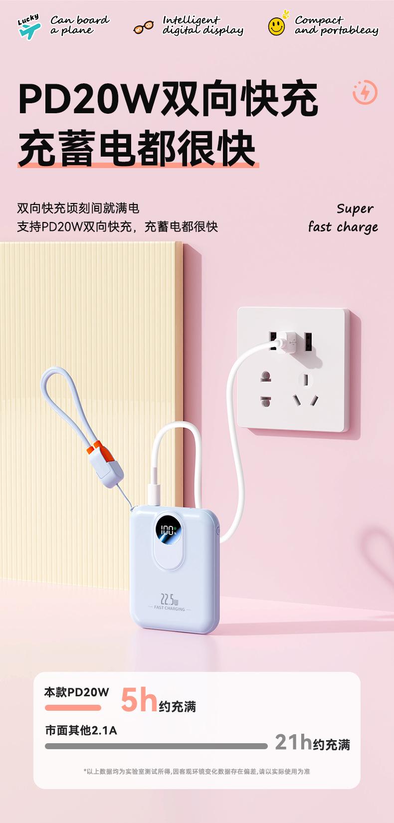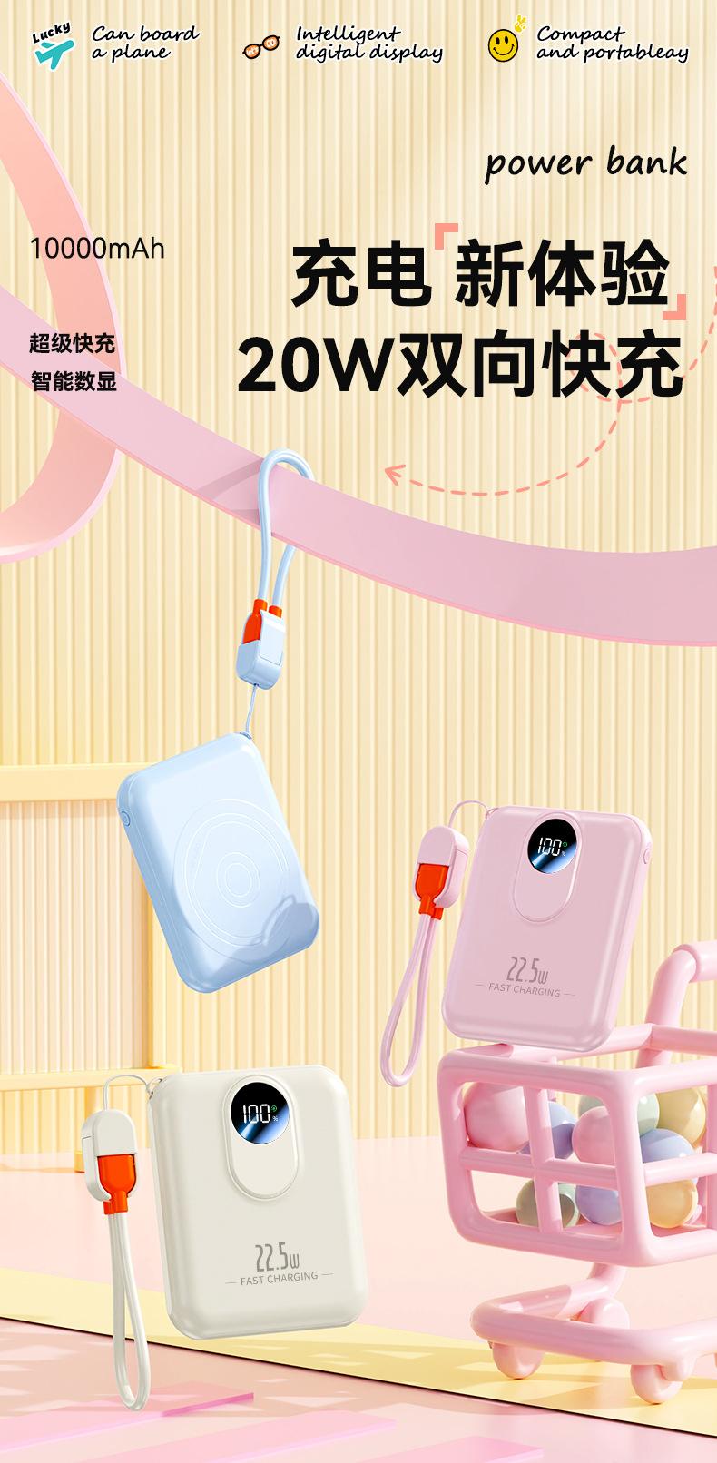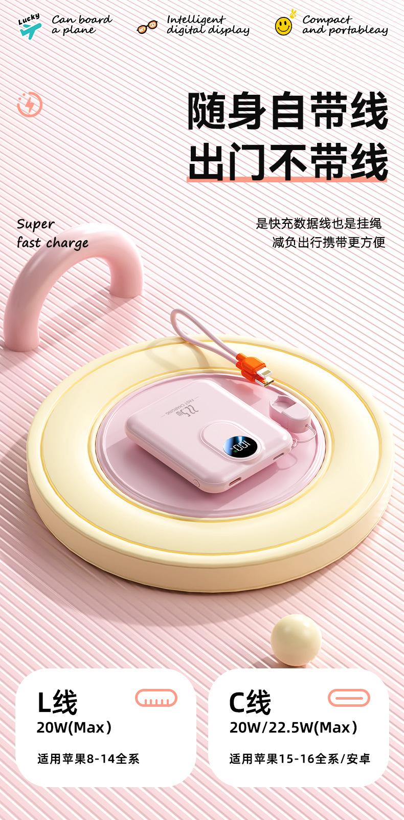 Nombre del producto: Apariencia compacta con cable de carga rápida de doble cabezal Tipo C/Lightning incorporado