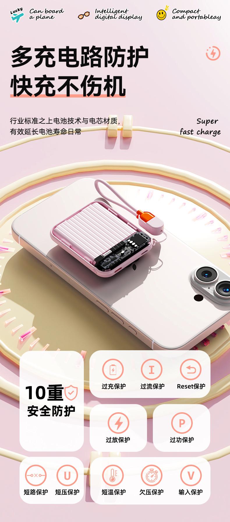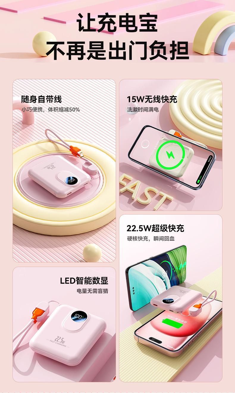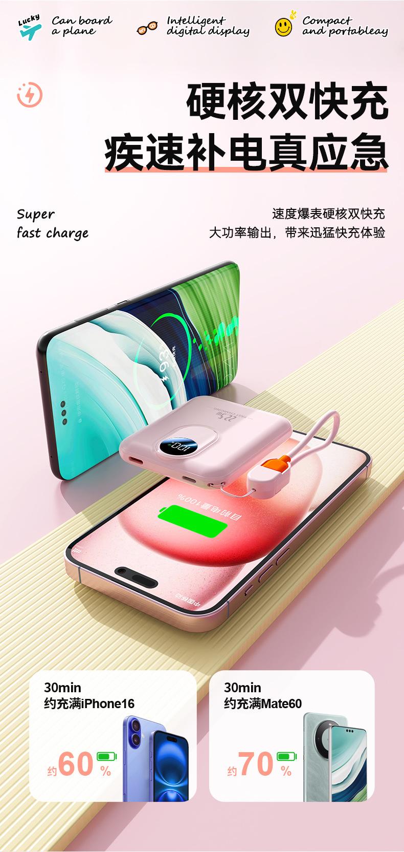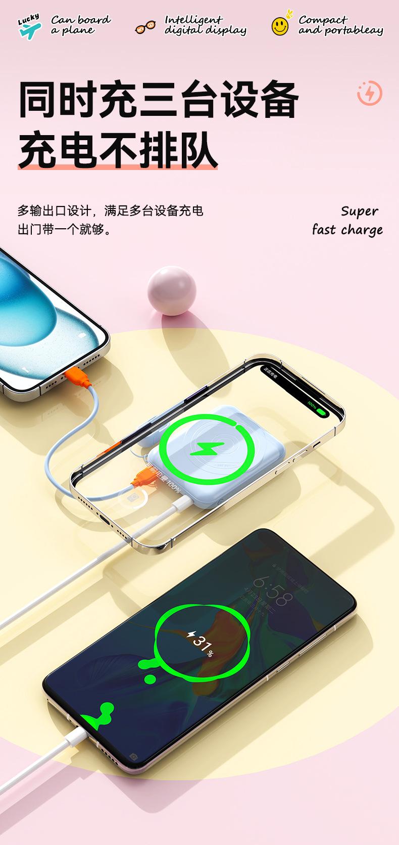 Nombre del producto: Apariencia compacta con cable de carga rápida de doble cabezal Tipo C/Lightning incorporado