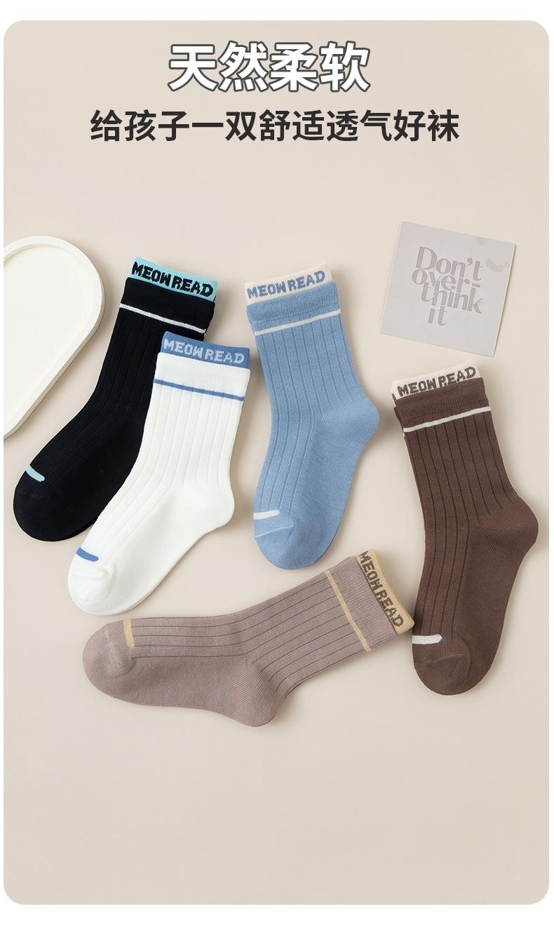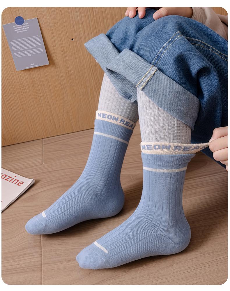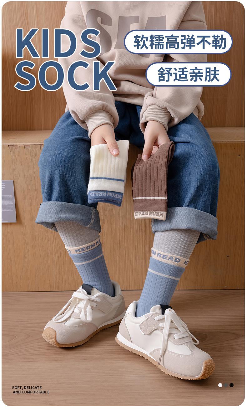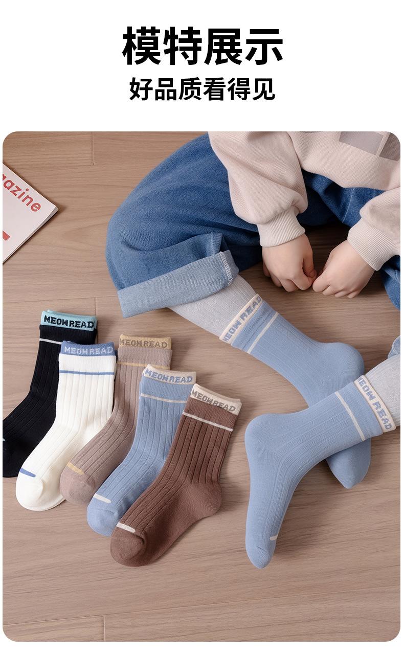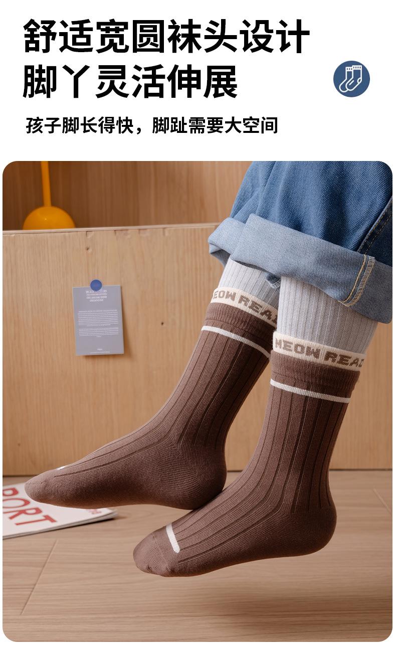 Calcetines infantiles de media pantorrilla clase A de otoño e invierno acanalados dobles color liso calcetines para niños y niñas deportivos absorbentes de sudor algodón peinado calcetines para estudiantes