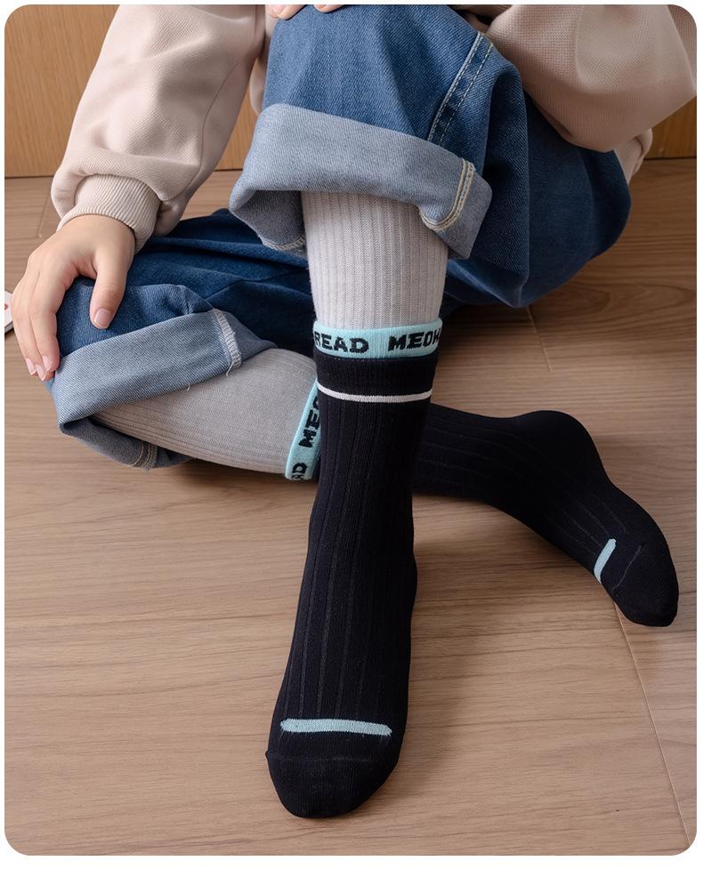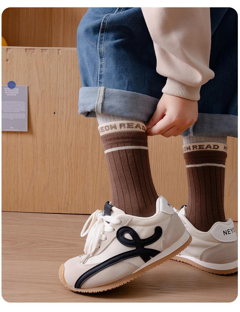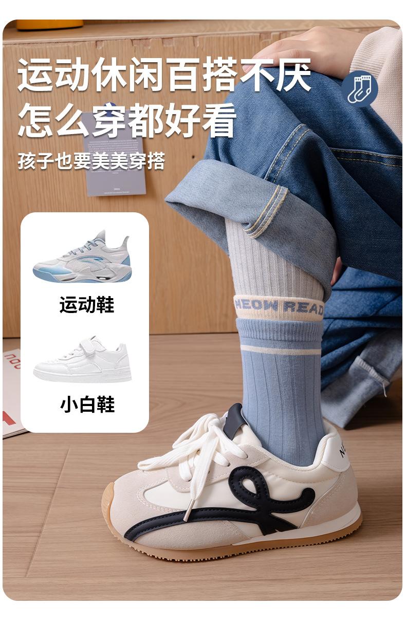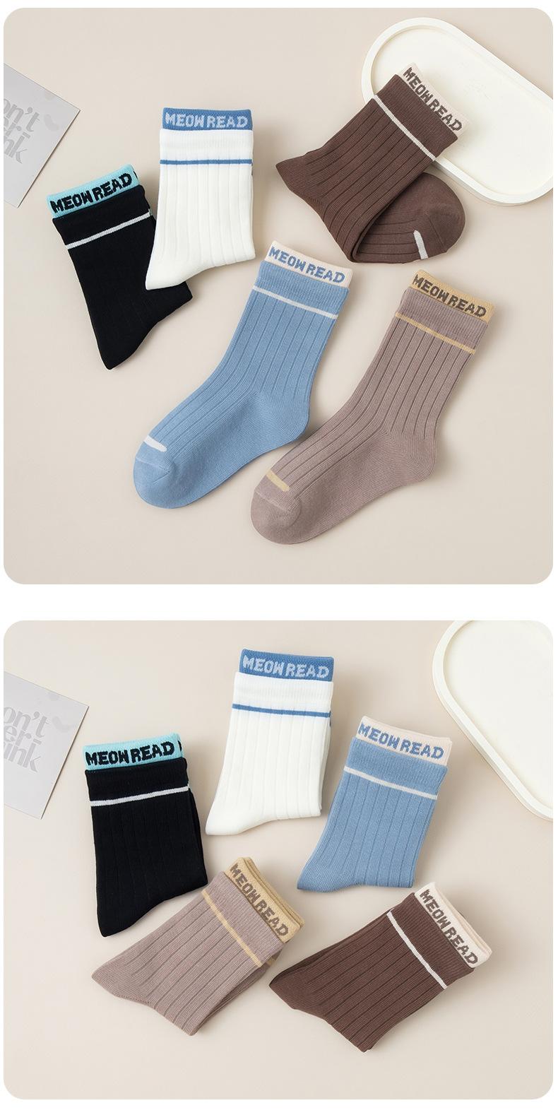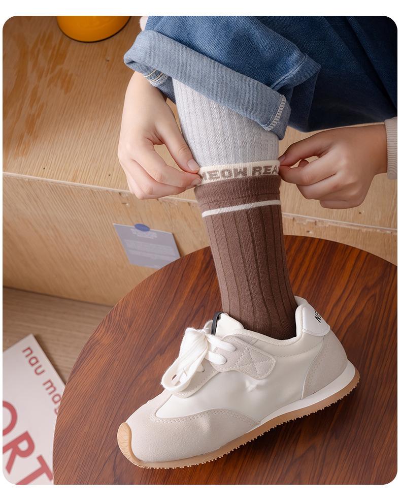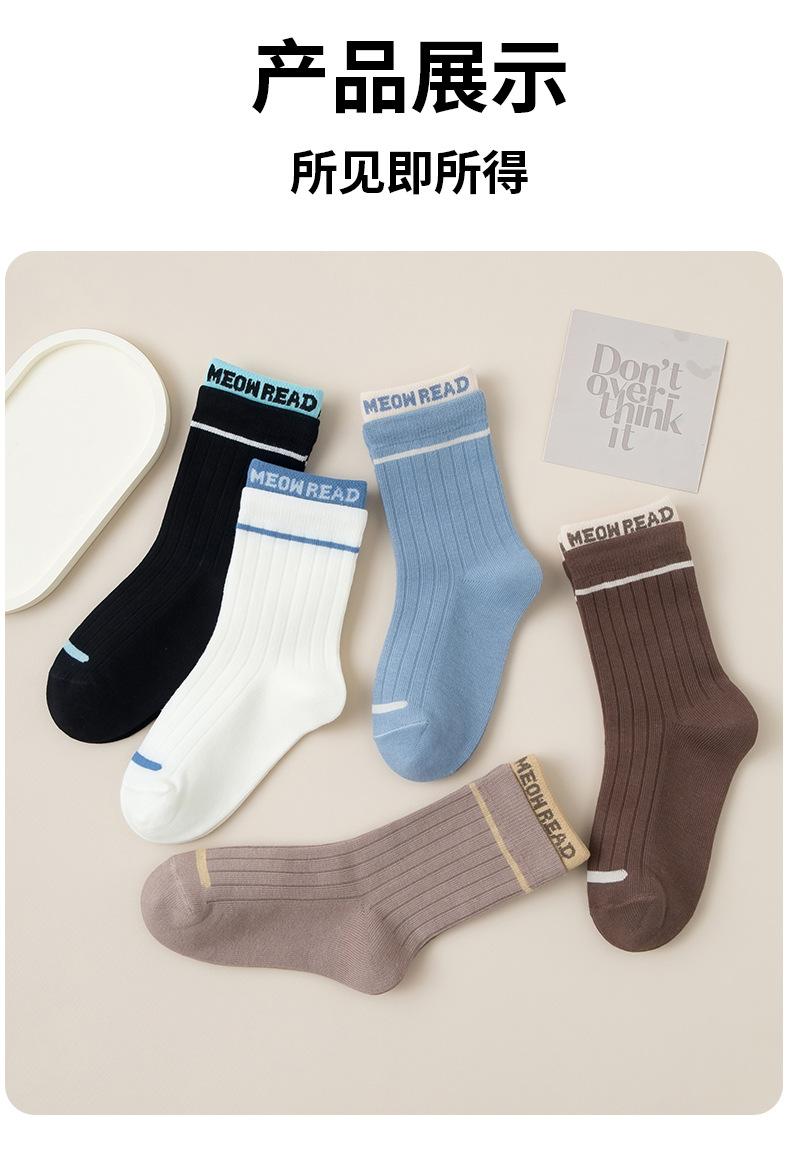 Calcetines infantiles de media pantorrilla clase A de otoño e invierno acanalados dobles color liso calcetines para niños y niñas deportivos absorbentes de sudor algodón peinado calcetines para estudiantes