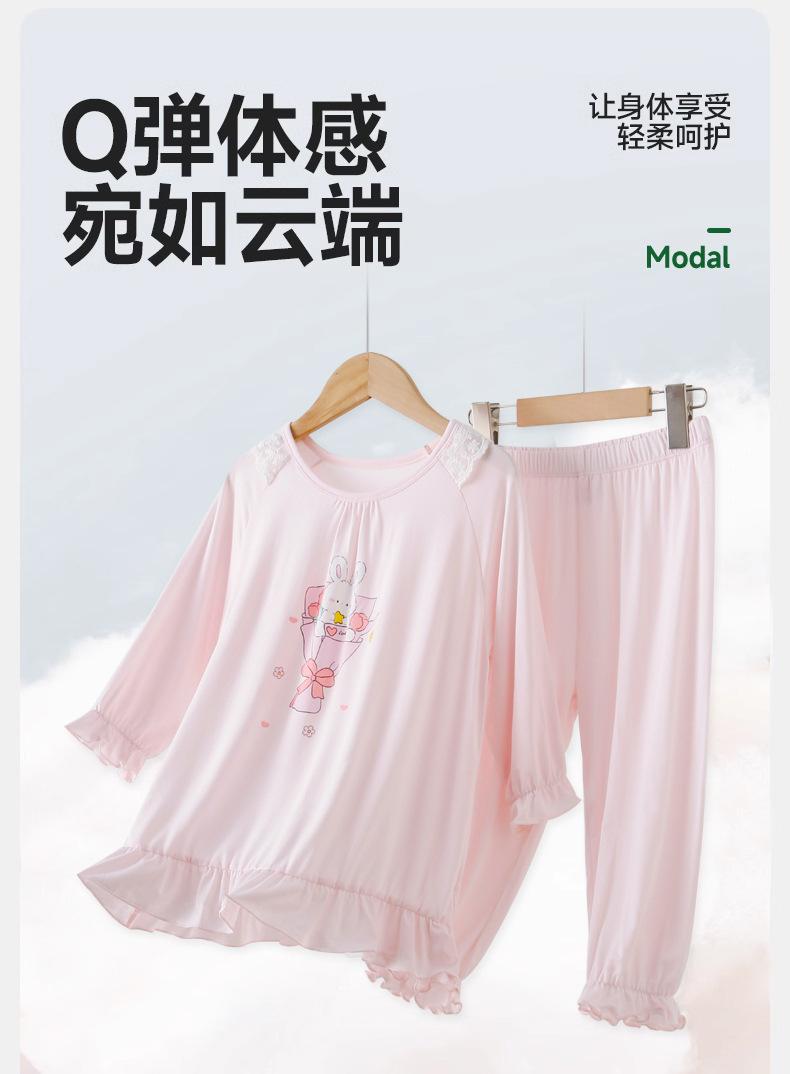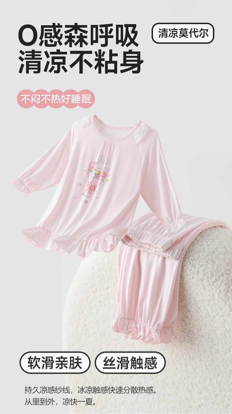 Pijamas para Niñas 2025 Nuevo Verano Ropa para el Hogar para Niños Modal Fino Manga Tres Cuartos Ropa para Aire Acondicionado Ropa para Niños