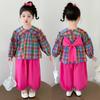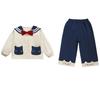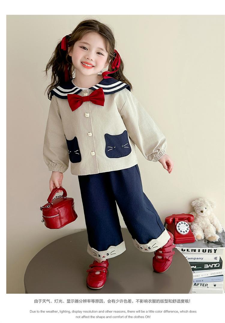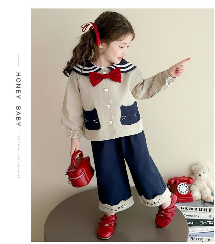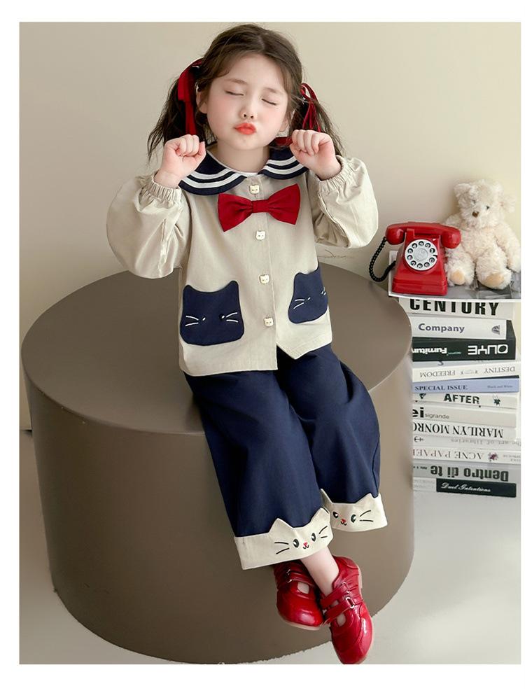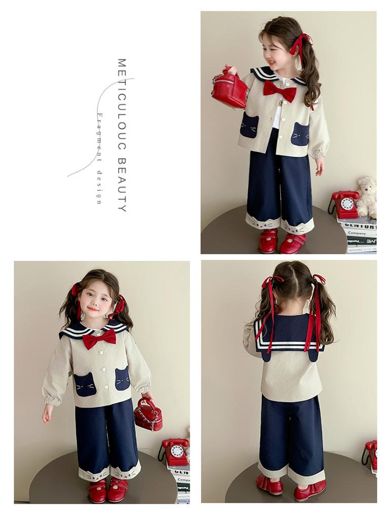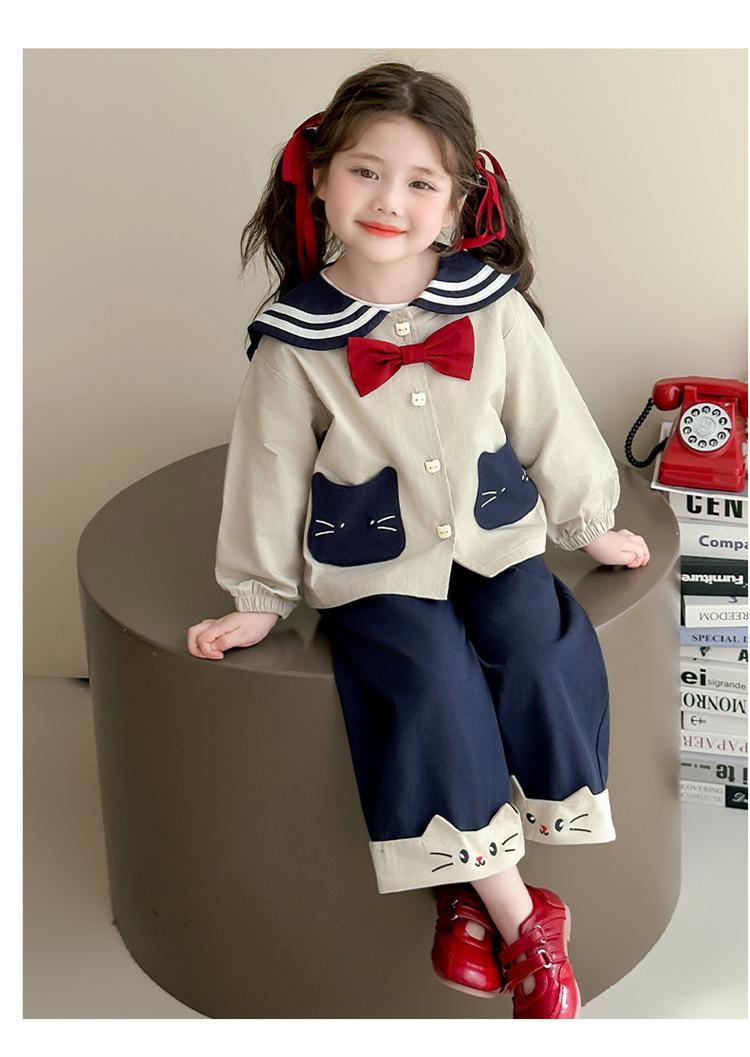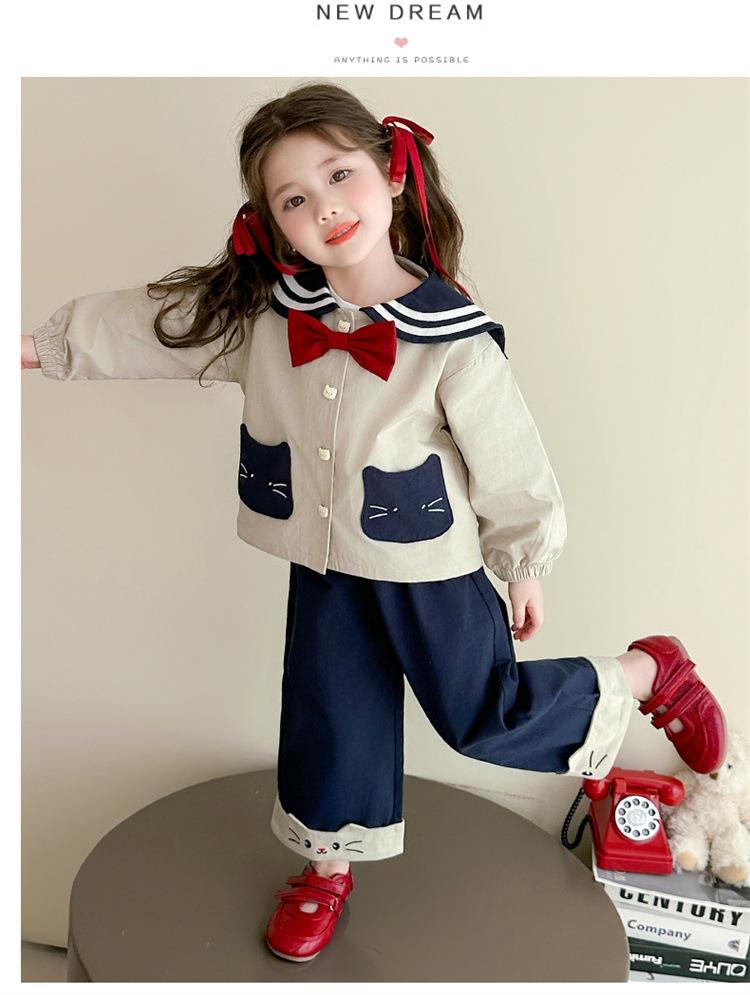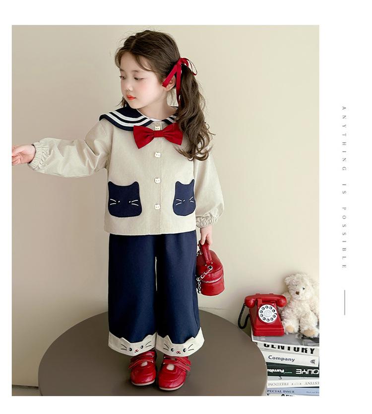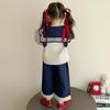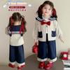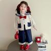 Conjunto para Niñas 2025 Nuevo Cuello Marino Estilo Preppy Infantil Lazo Conjunto de Dos Piezas Niñita Bebé Ropa de Primavera y Otoño