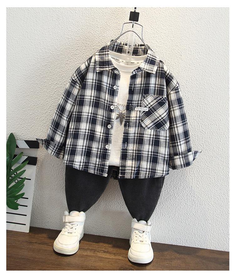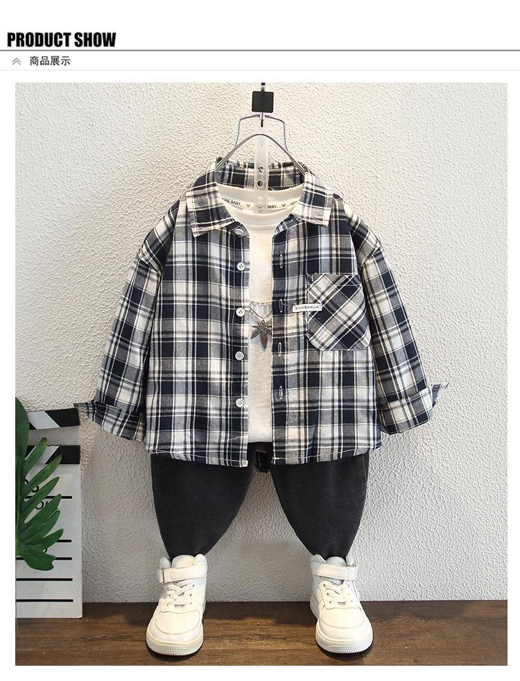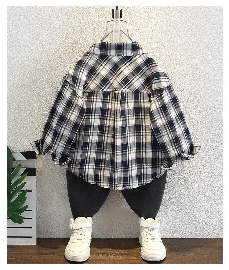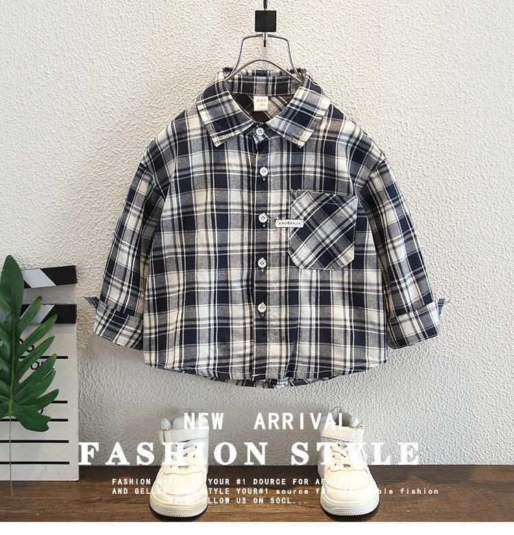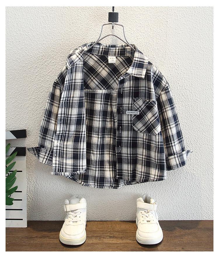 Camisa de Otoño para Niño a Cuadros Pequeños 2025 Otoño Nuevo Estilo Coreano Camisa Casual para Niños Ropa para Niños Pequeños y Medianos