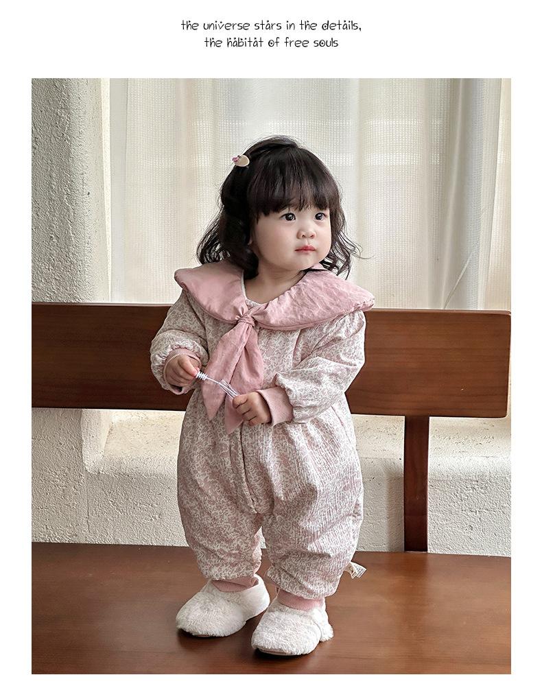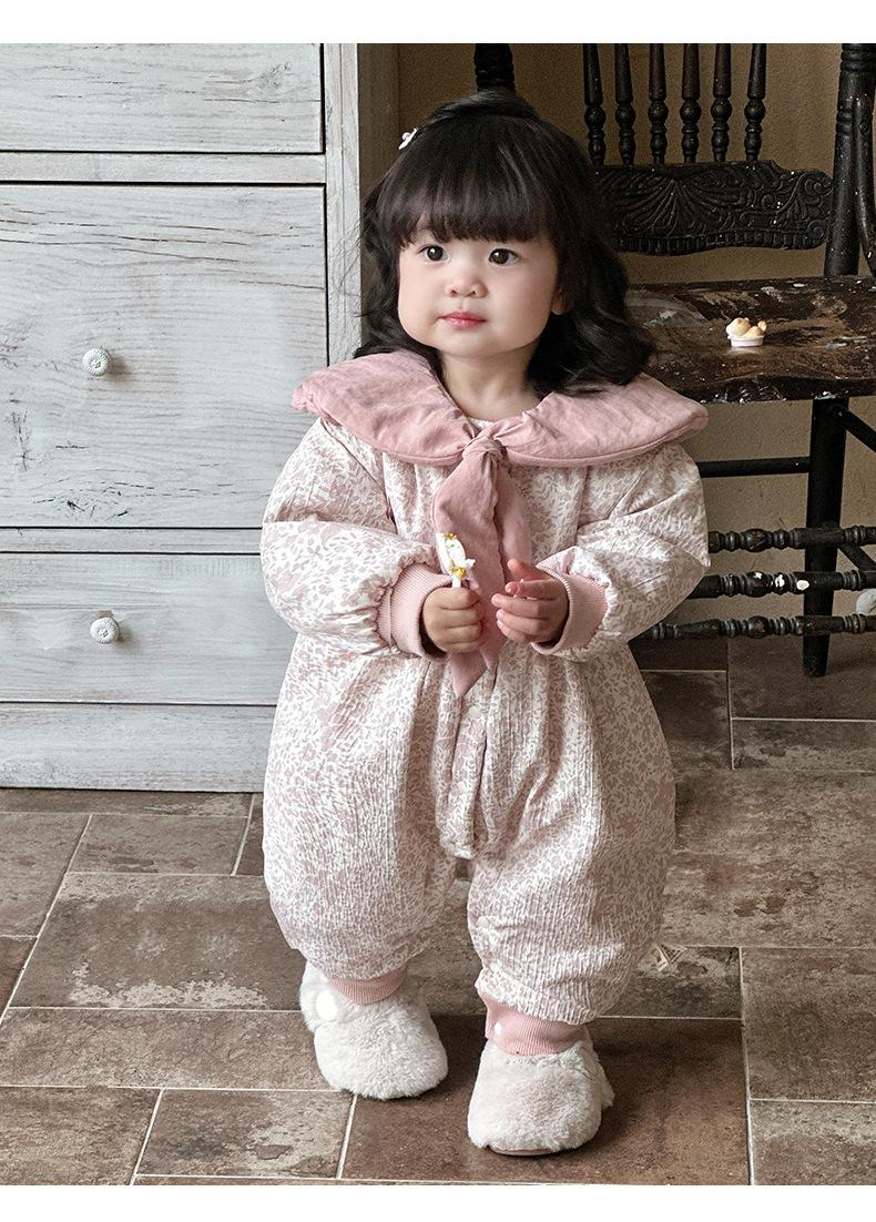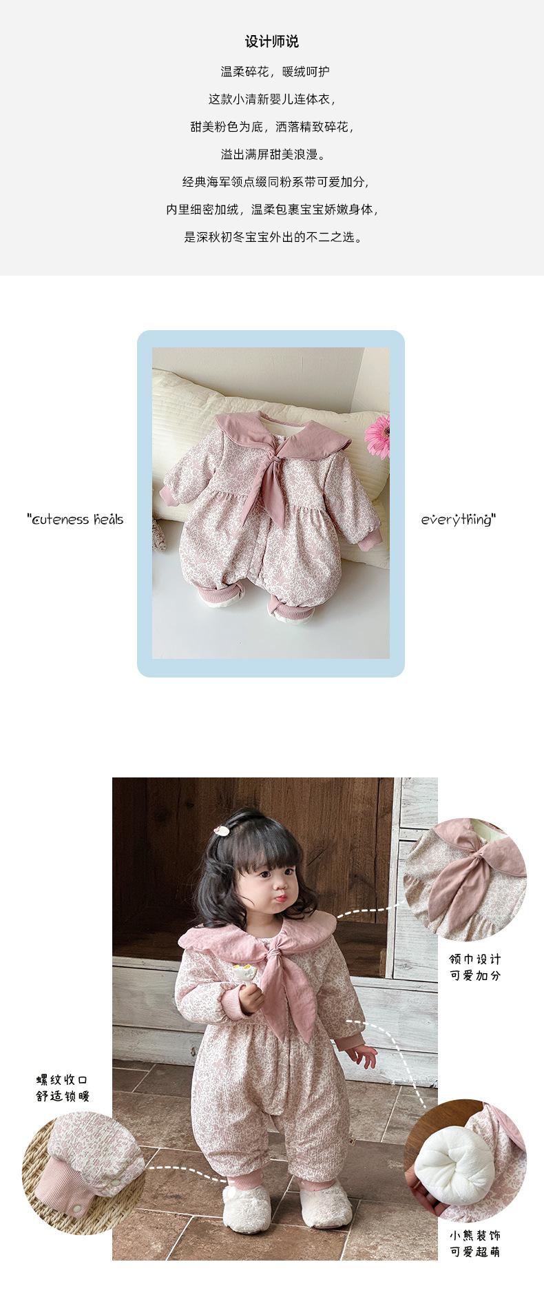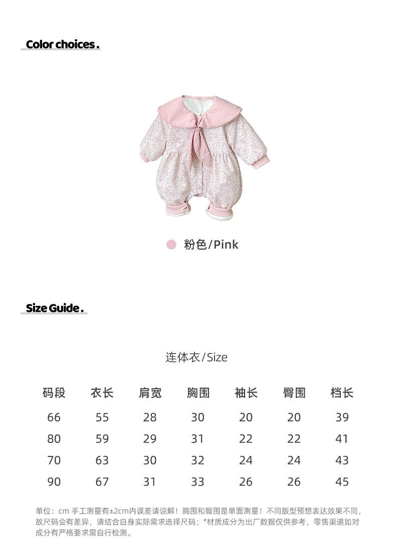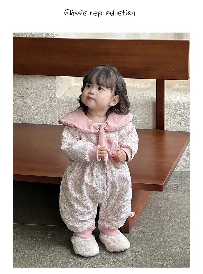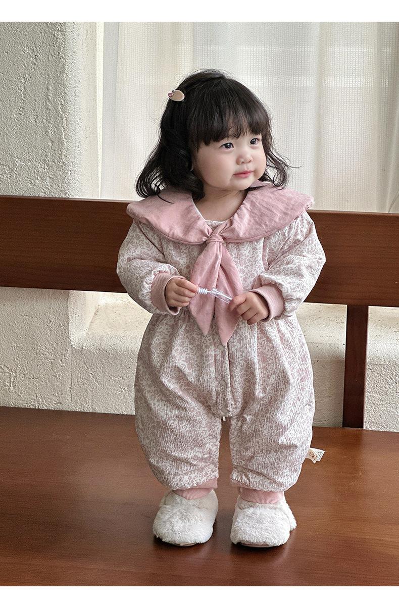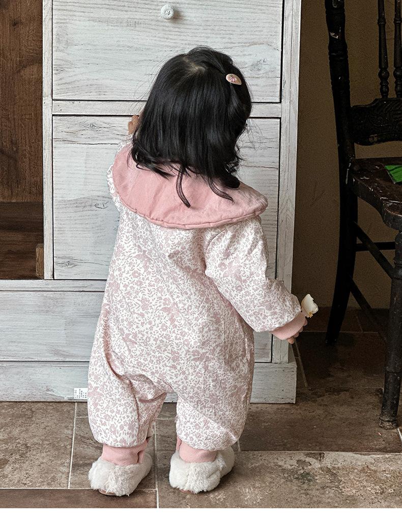 Mameluco para niña estilo otoño e invierno, mameluco floral de manga larga, mameluco de invierno con forro polar grueso para bebé, ropa exterior de dibujos animados