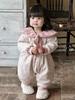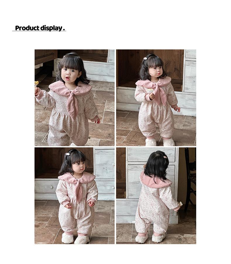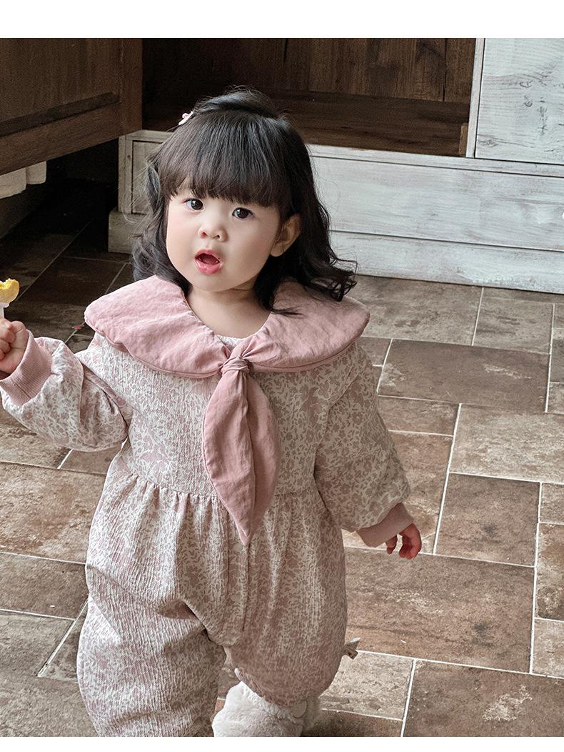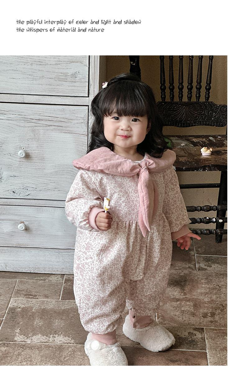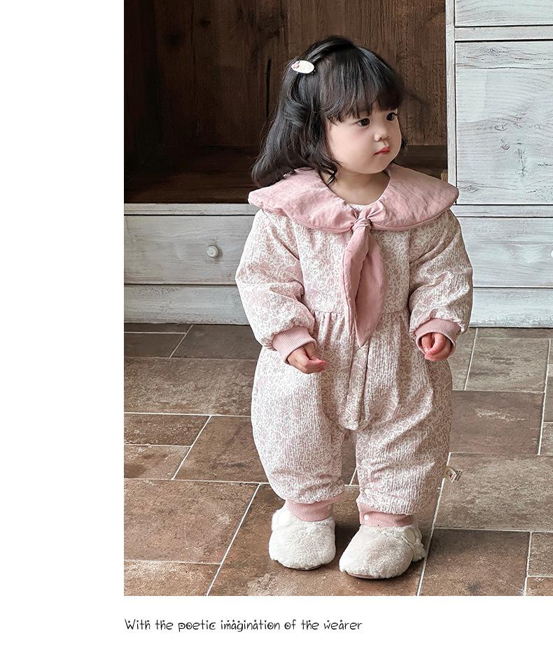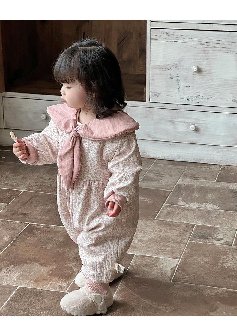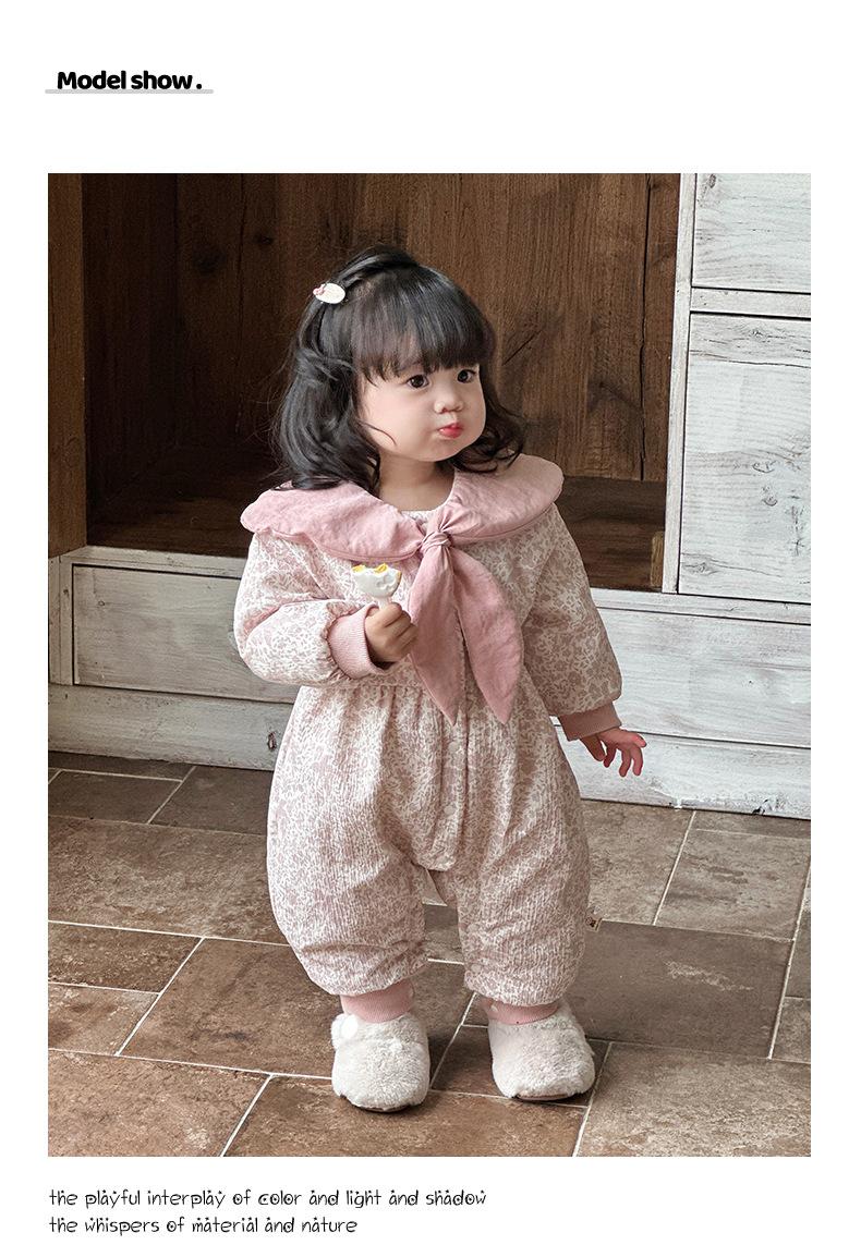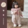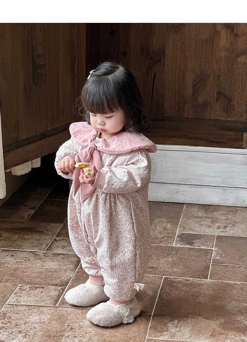 Mameluco para niña estilo otoño e invierno, mameluco floral de manga larga, mameluco de invierno con forro polar grueso para bebé, ropa exterior de dibujos animados