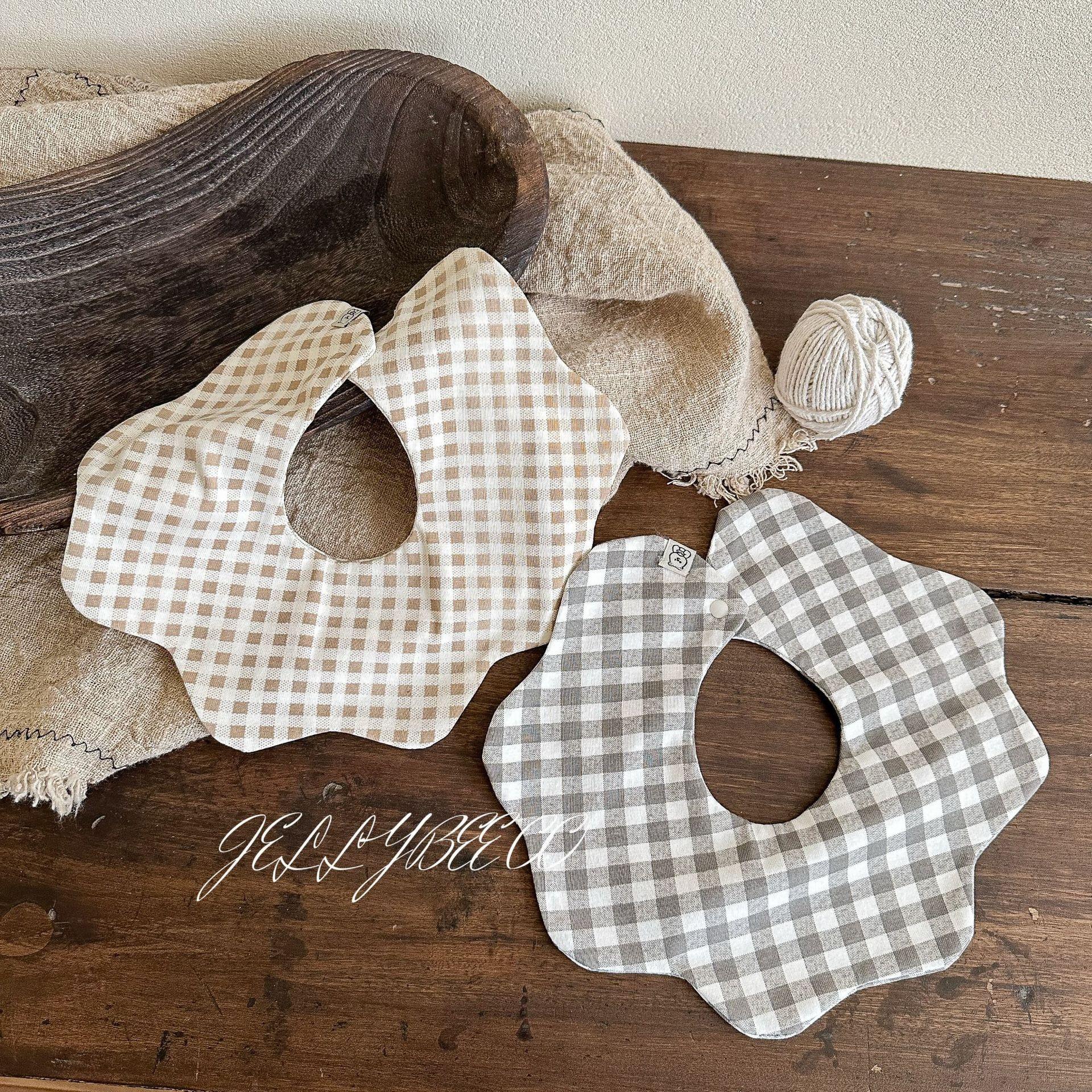 Gray-white plaid - medium flower, Apricot base polka dot - medium flower, Gingham Small Flower-Medium Flower, ...