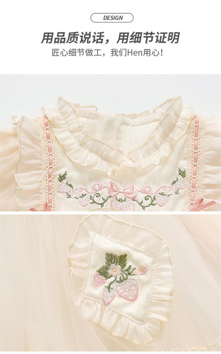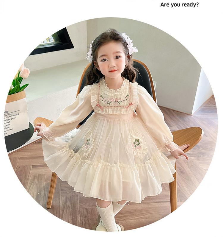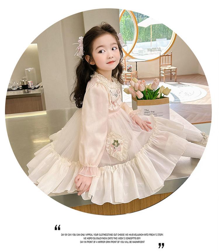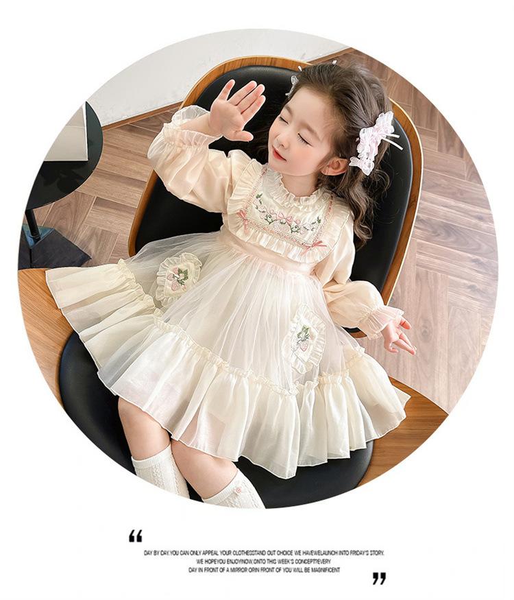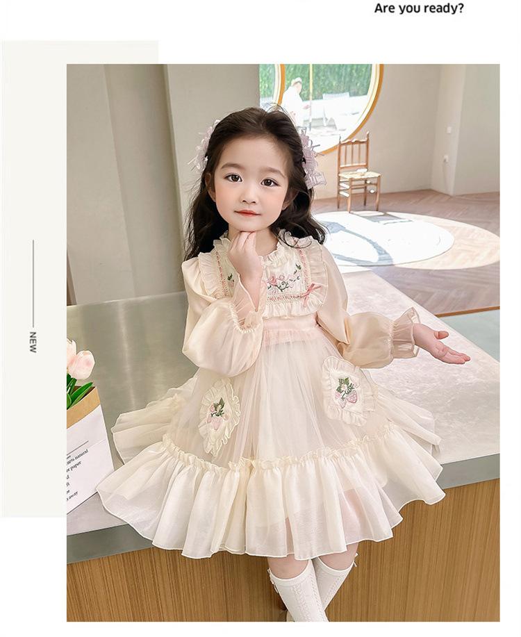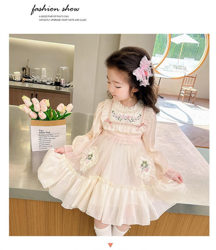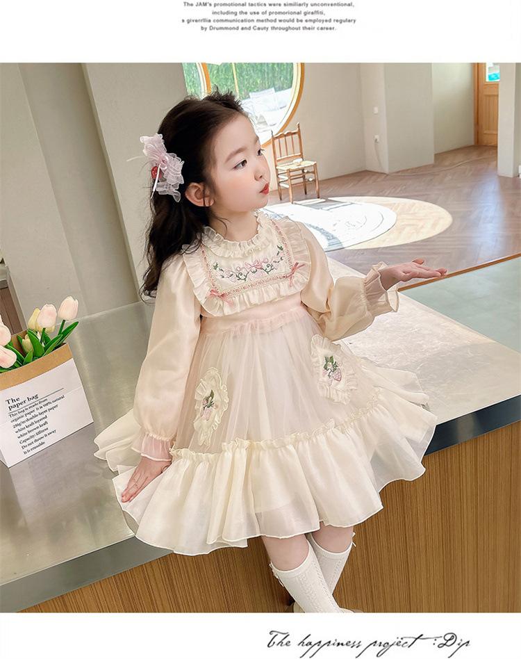Vestido Lolita de Tul con Bordado de Fresas para Niñas Estilo Primavera y Otoño 2025 Nuevo Moda Coreana Infantil Vestido de Princesa para Niñita