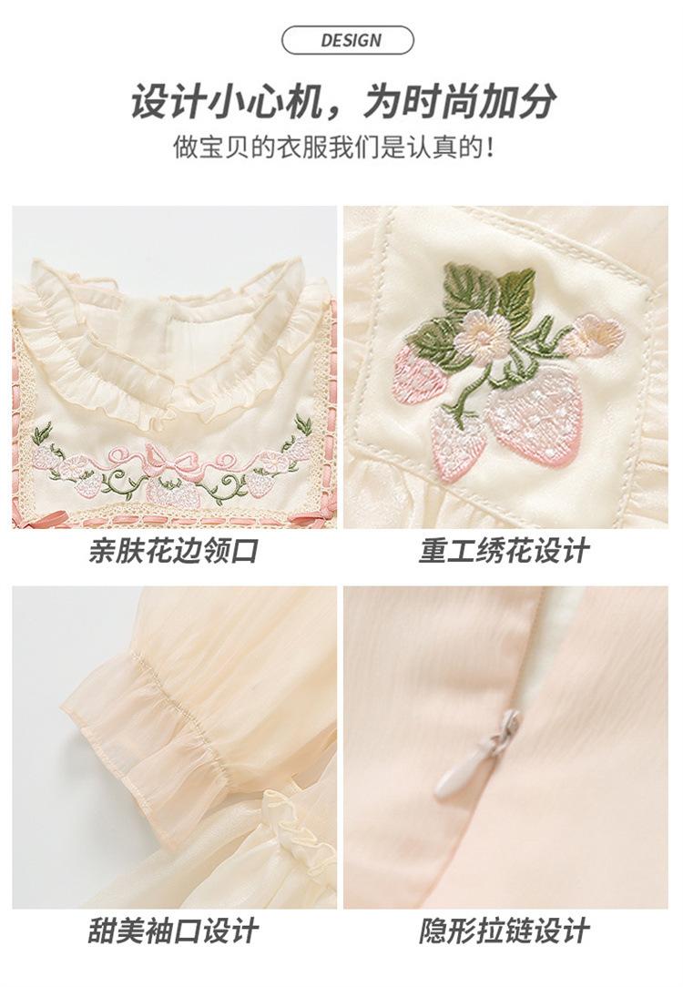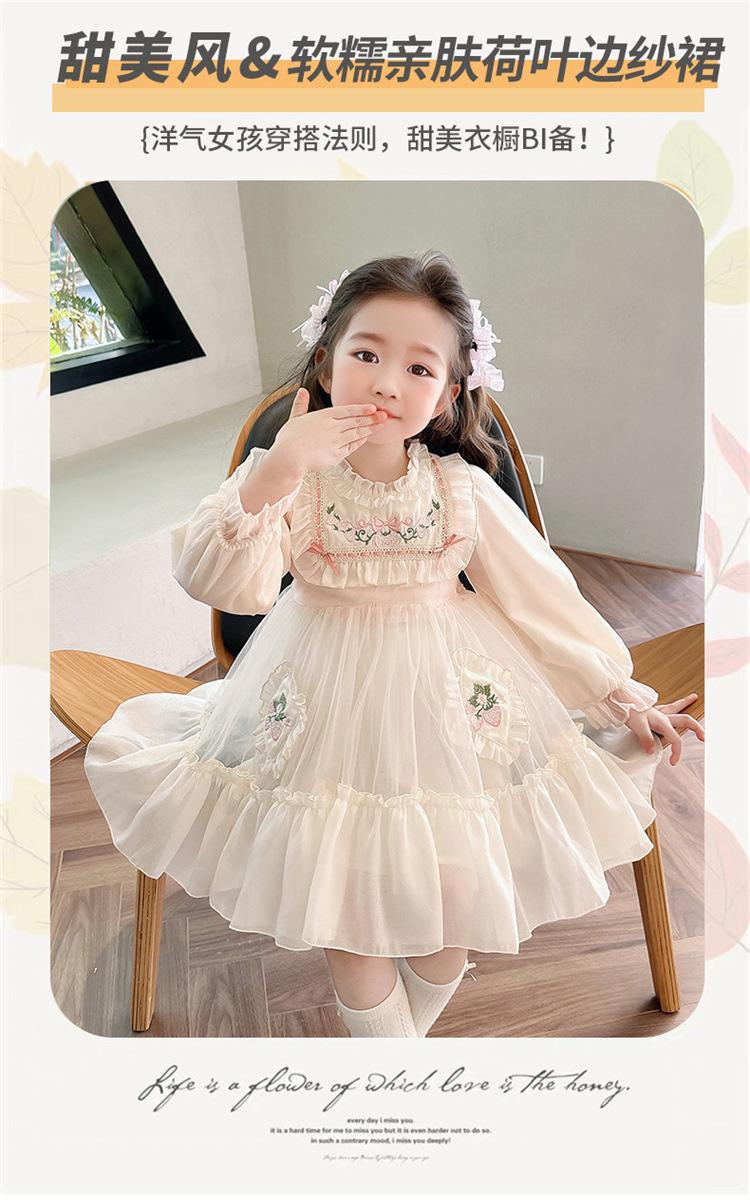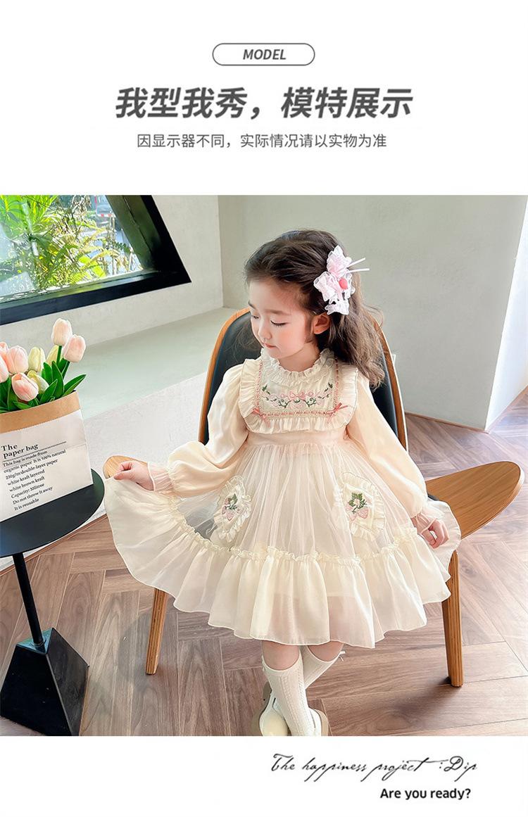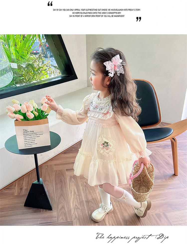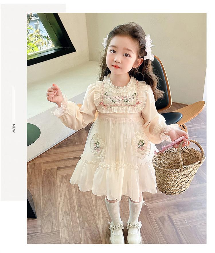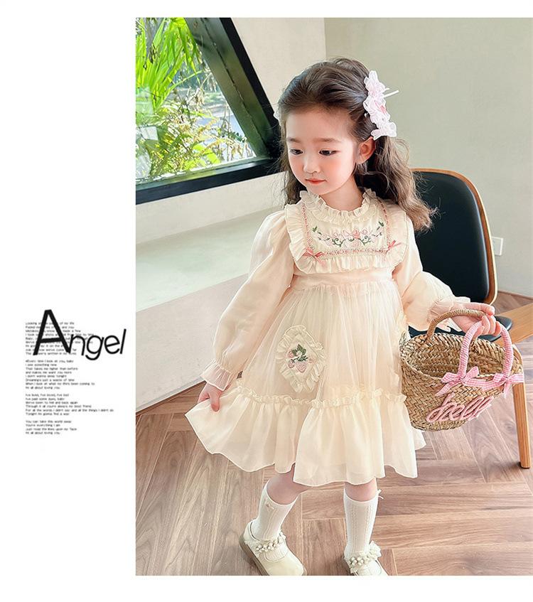 Vestido Lolita de Tul con Bordado de Fresas para Niñas Estilo Primavera y Otoño 2025 Nuevo Moda Coreana Infantil Vestido de Princesa para Niñita