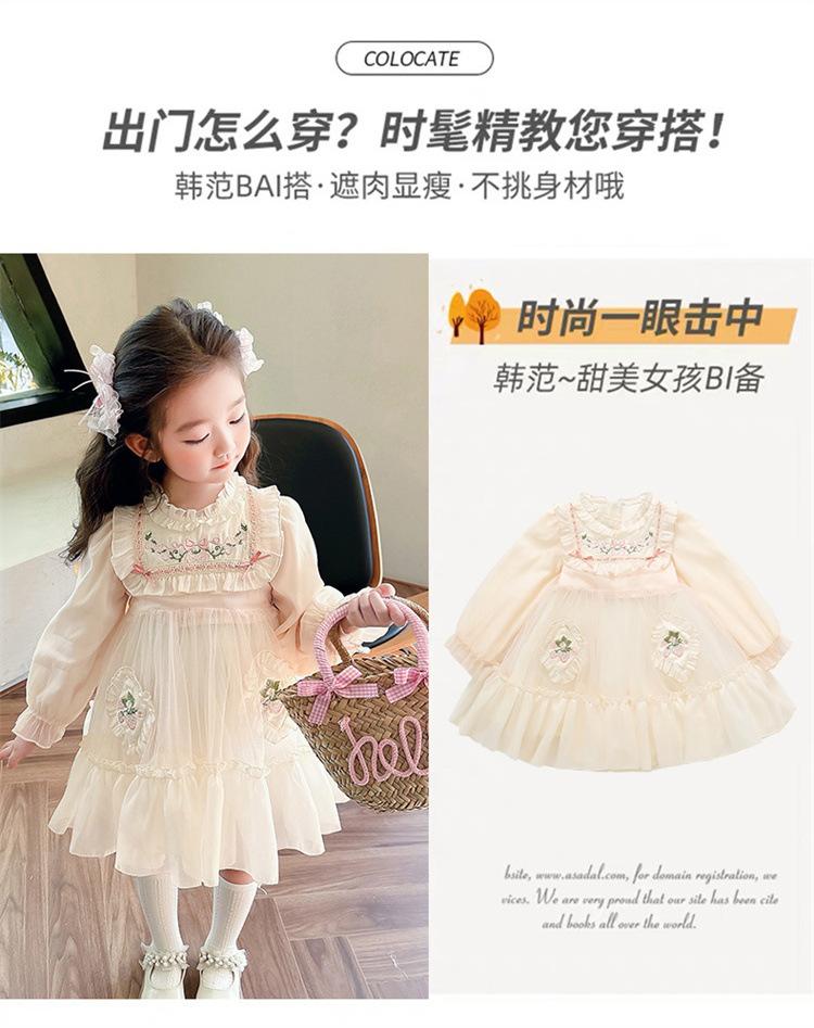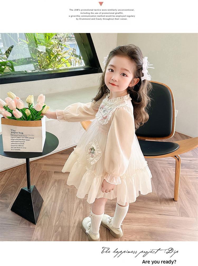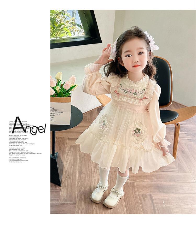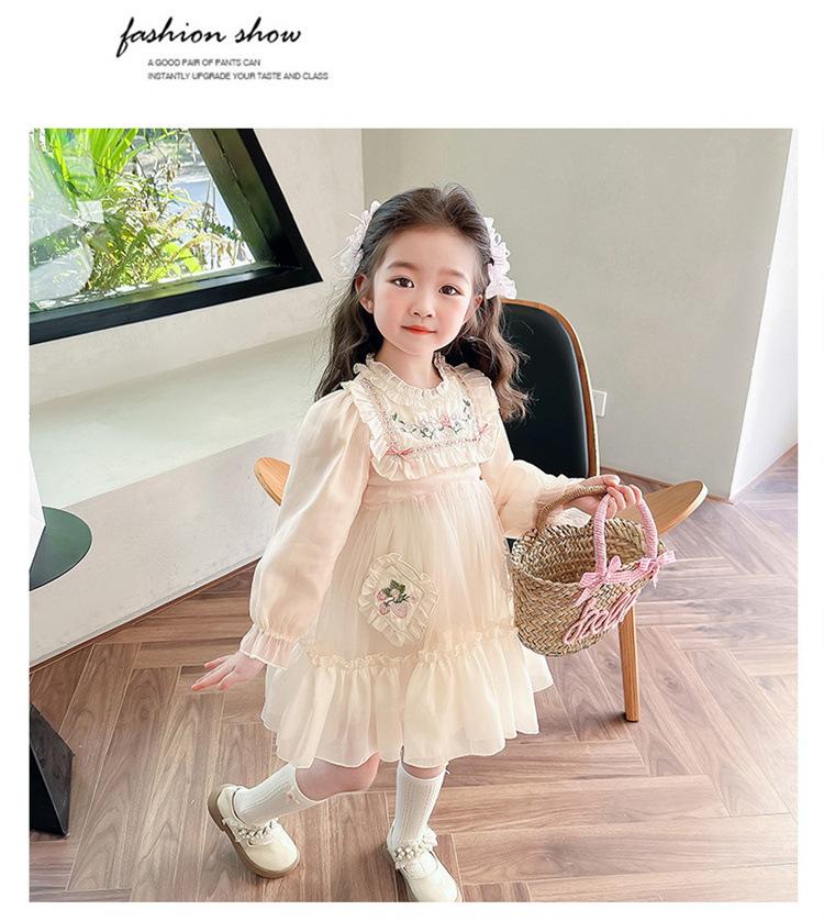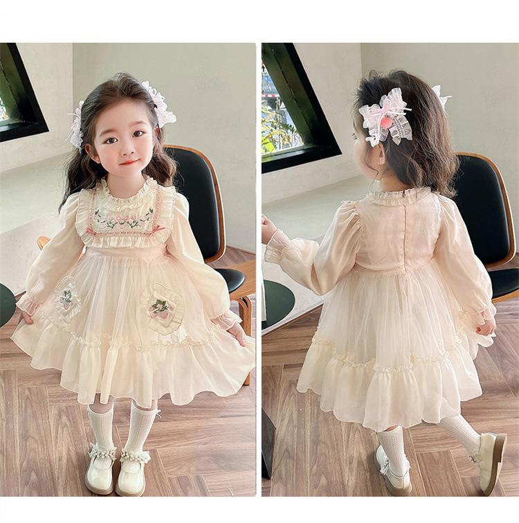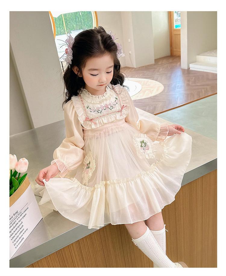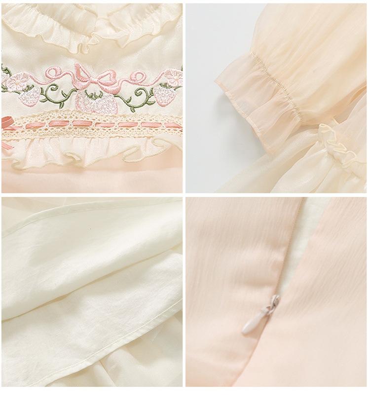 Vestido Lolita de Tul con Bordado de Fresas para Niñas Estilo Primavera y Otoño 2025 Nuevo Moda Coreana Infantil Vestido de Princesa para Niñita