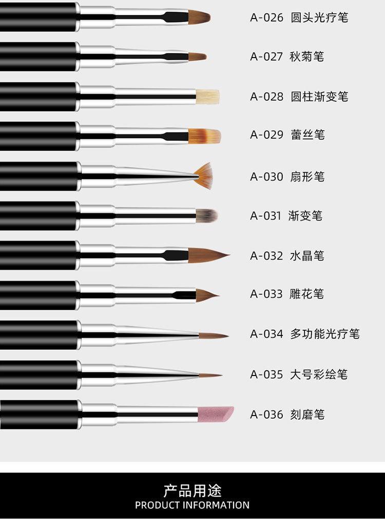 Juego de pinceles para nail art con herramienta de pluma pintada al por mayor, juego completo de pincel degradado para terapia de luz de cabeza redonda, bolígrafo de trazo muy fino