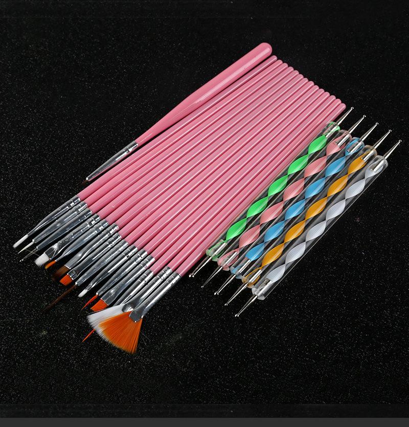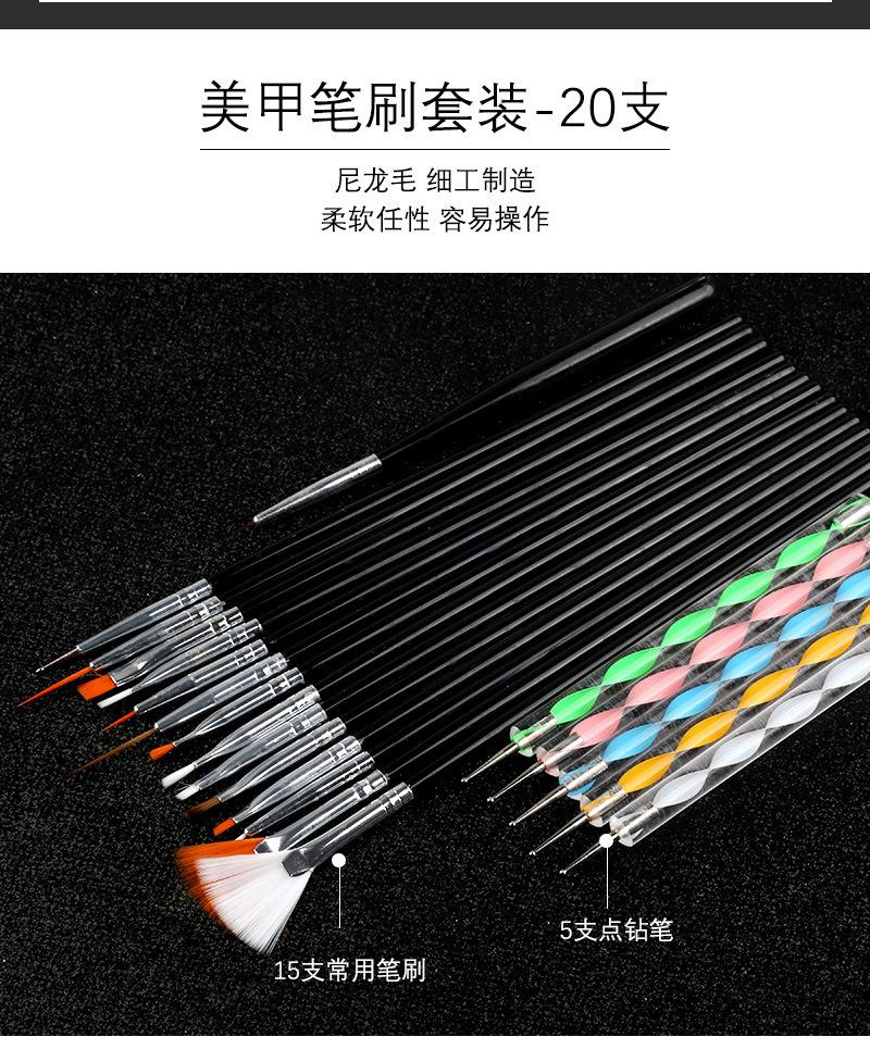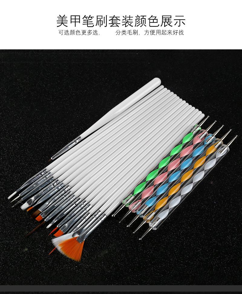 Suministros al por mayor para nail art en stock 20 juegos de bolígrafo para pintar a color, aguja de gancho, bolígrafo para taladrar, pincel de maquillaje, bolígrafo para difuminar líneas
