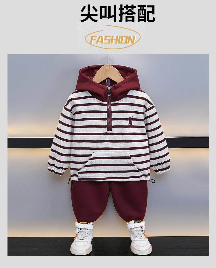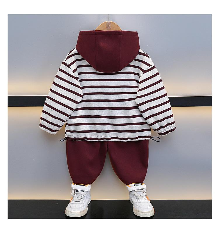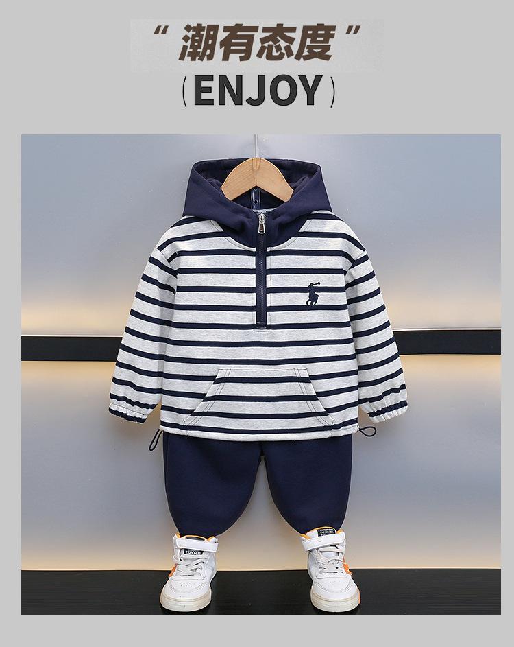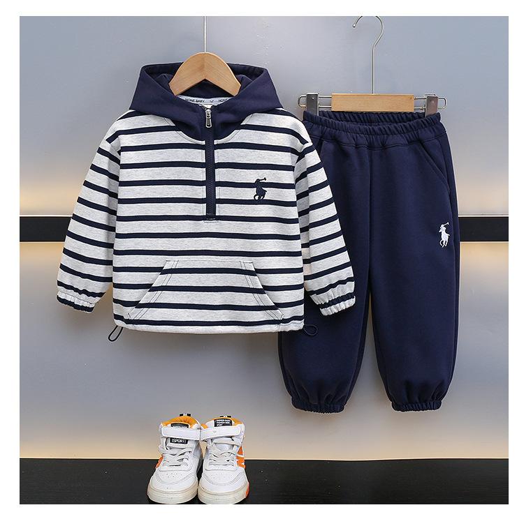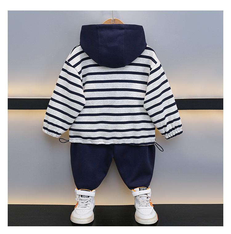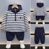 Conjunto de Sudadera para Niño 2025 Nuevo Rayado con Capucha Primavera Casual Estilo Coreano Niño Guapo Conjunto de Dos Piezas Tendencia