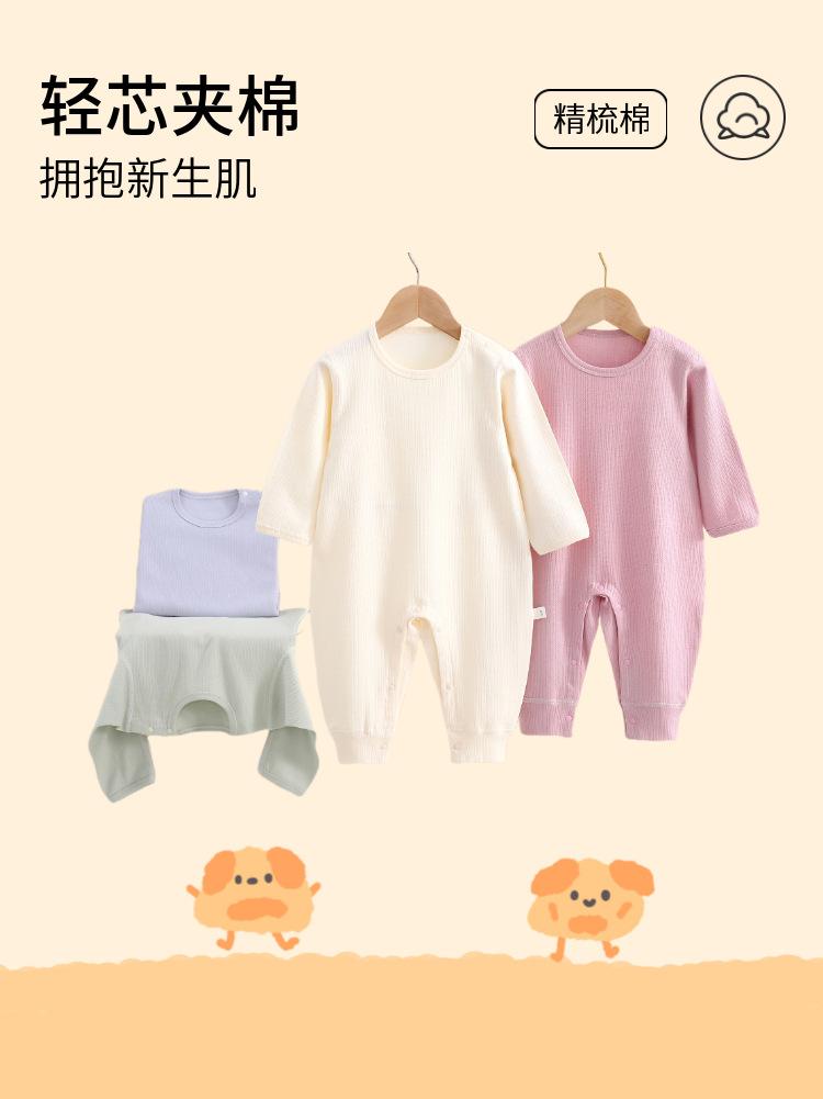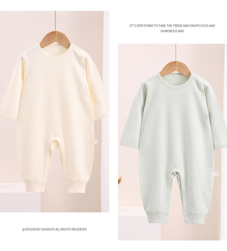 Nuevo estilo hombro jacquard algodón lana mameluco niño y niña bebé ropa algodón puro mameluco ropa para gatear ropa para niños cuatro estaciones