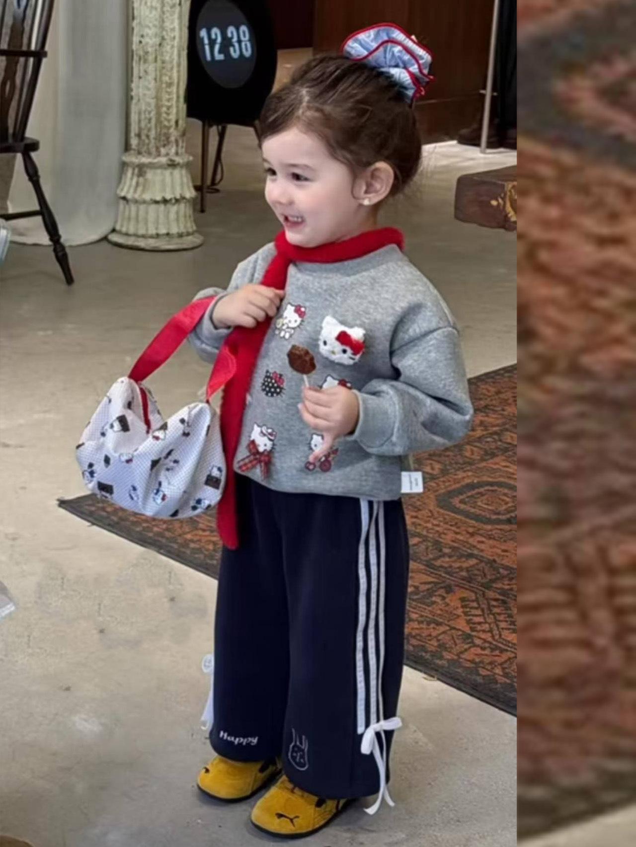 Conjunto de Otoño e Invierno para Niñas 2025 Nuevo para Niños Niños Bebé Estilo Coreano Sudadera de Dibujos Animados Pantalón Deportivo Conjunto de Dos Piezas