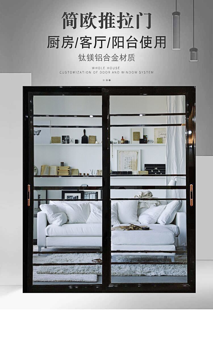 Puerta Corrediza Balcón Cocina Puerta Corrediza Sala de Estar Baño Puerta Hueca de Vidrio Templado de Doble Capa Partición de Aleación de Aluminio Magnesio Titanio