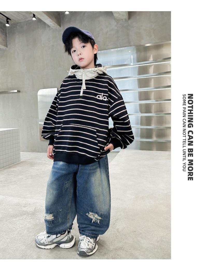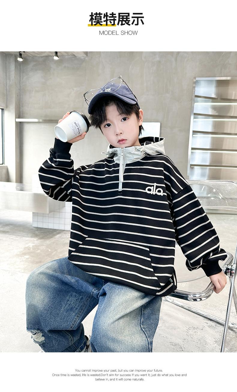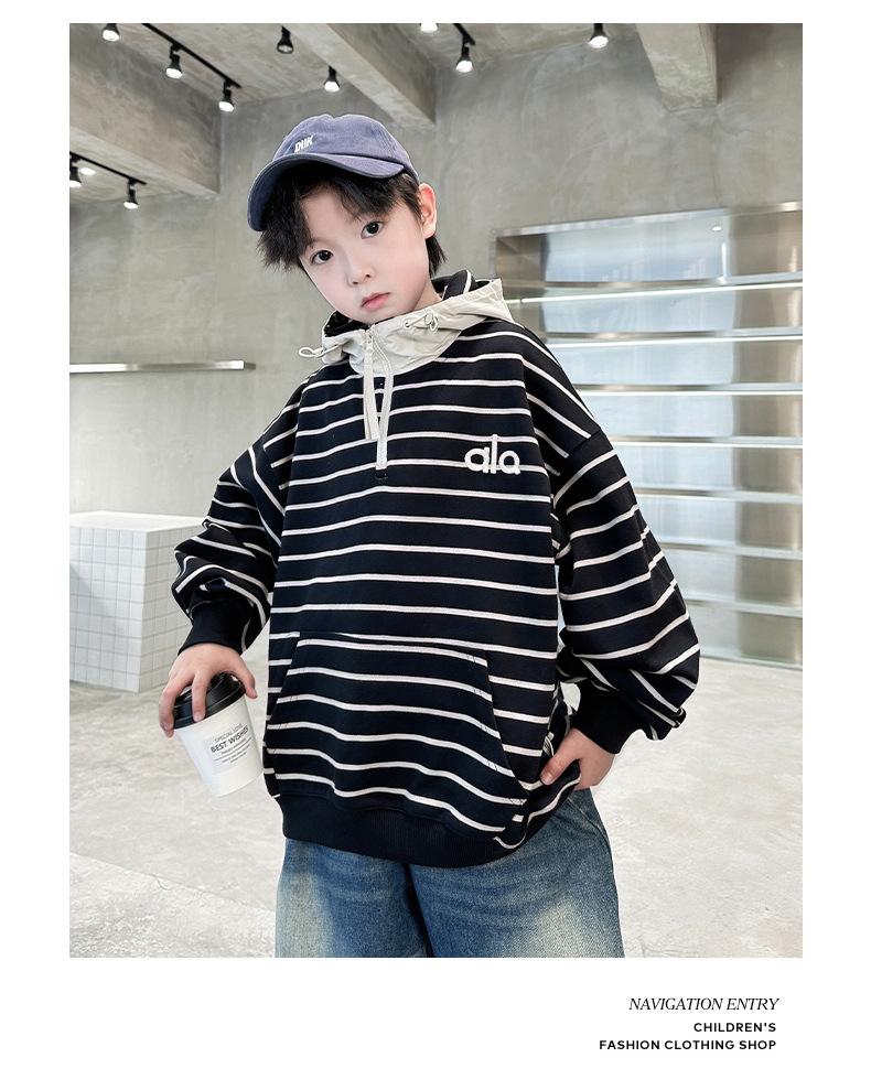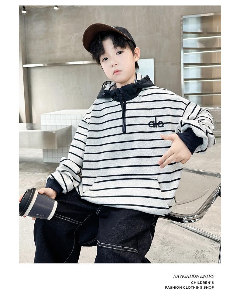 Compra Sudadera Deportiva Rayada con Capucha para Niño Estilo Otoño Coreano 2025 Nuevo Top Holgado de Otoño para Niños Jóvenes al por mayor en Joom.pro