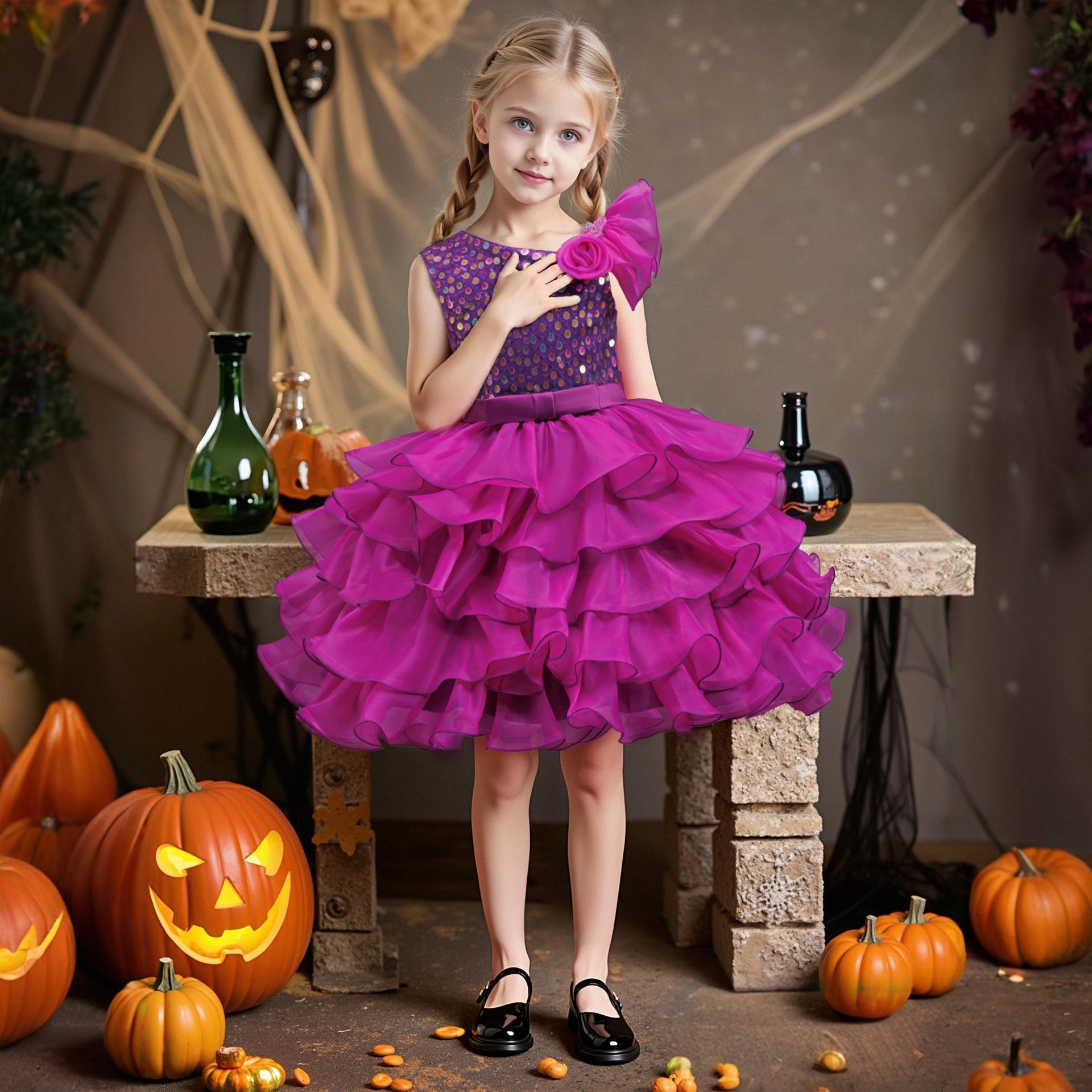Comercio Exterior Halloween Nuevo Ropa para Niños Vestido Pomposo para Niñas Florista Lentejuelas Vestido de Princesa Tirantes Espagueti Disfraz para Actuación de Anfitrión