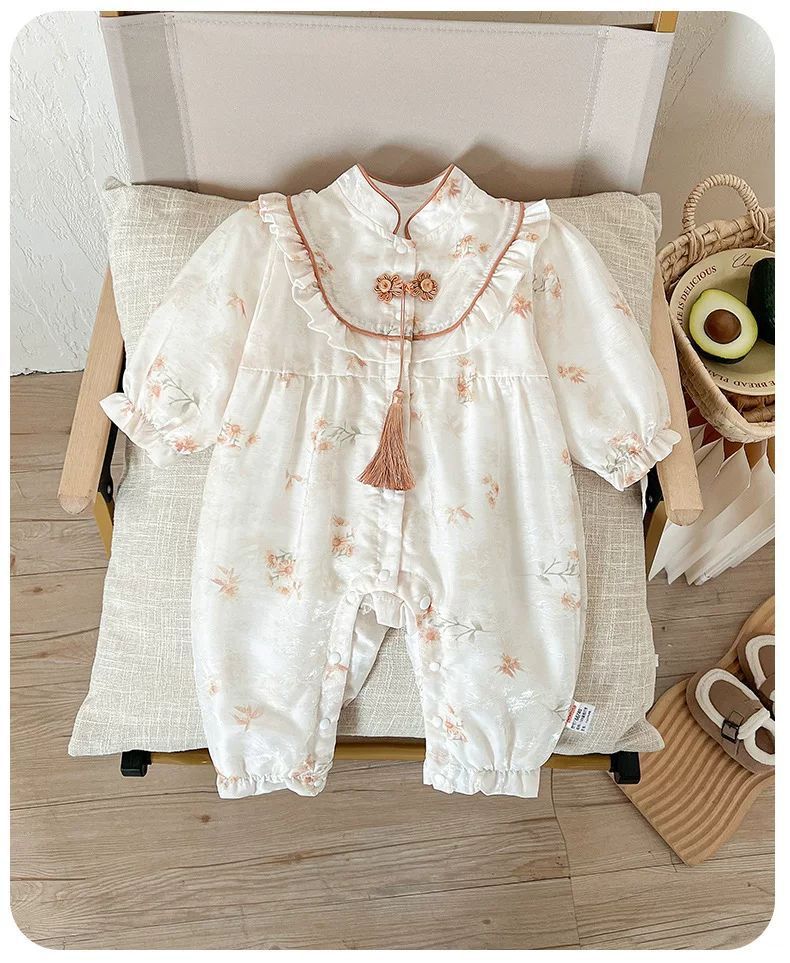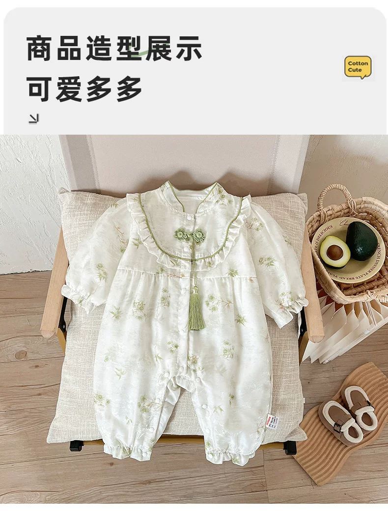 Primavera Ropa Nueva para Bebé Primavera Mameluco de Doble Capa Súper Lindo Estilo Nacional Bebé Niña Primavera Otoño Salida Ying Shang